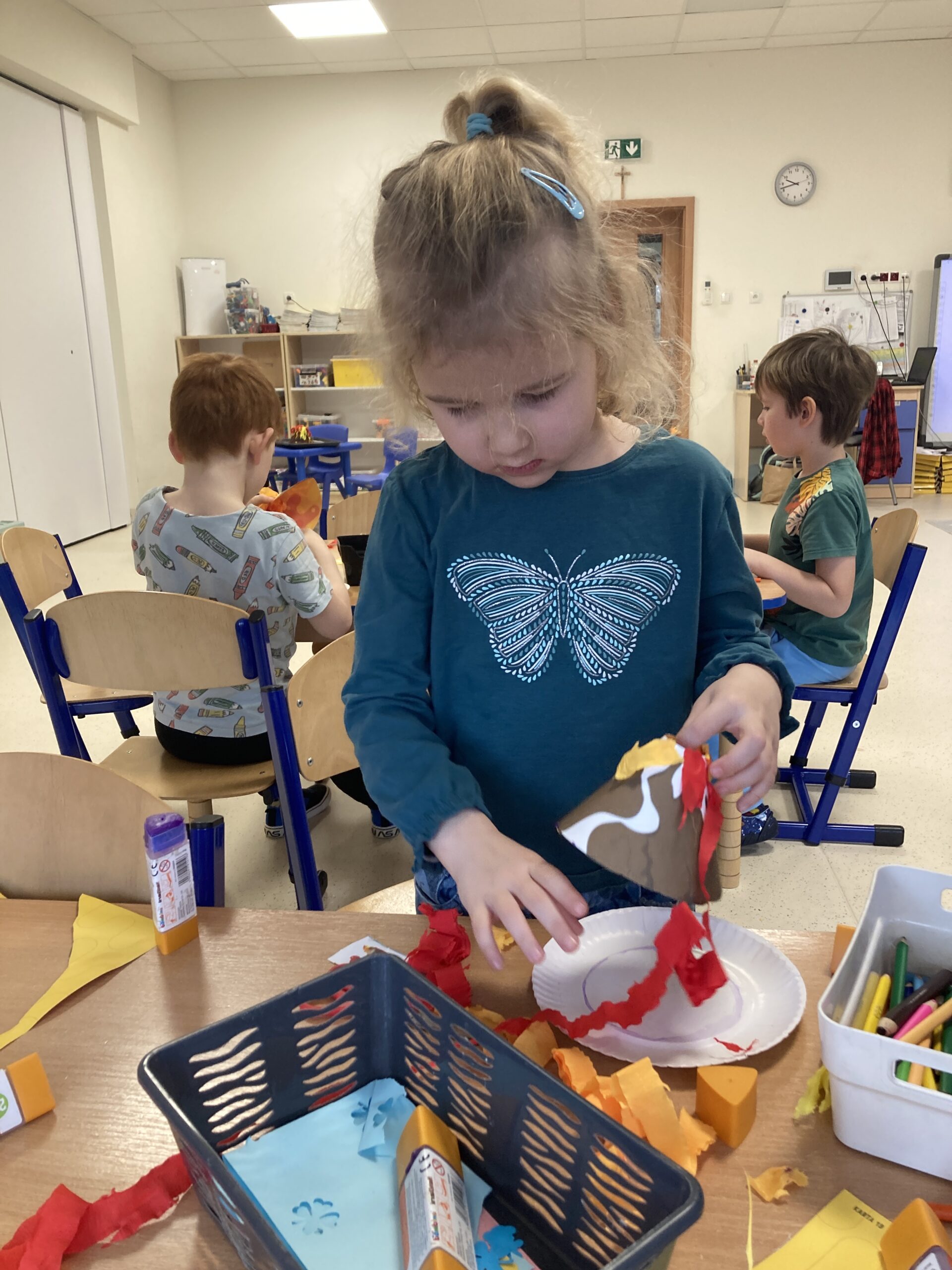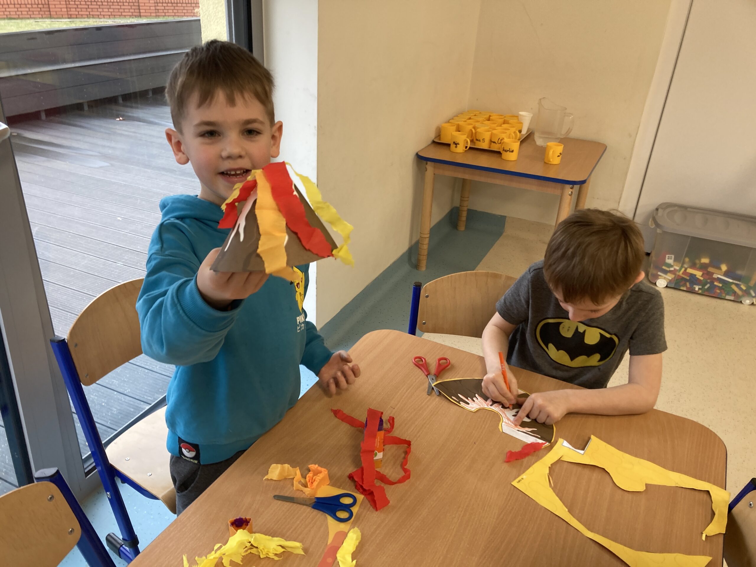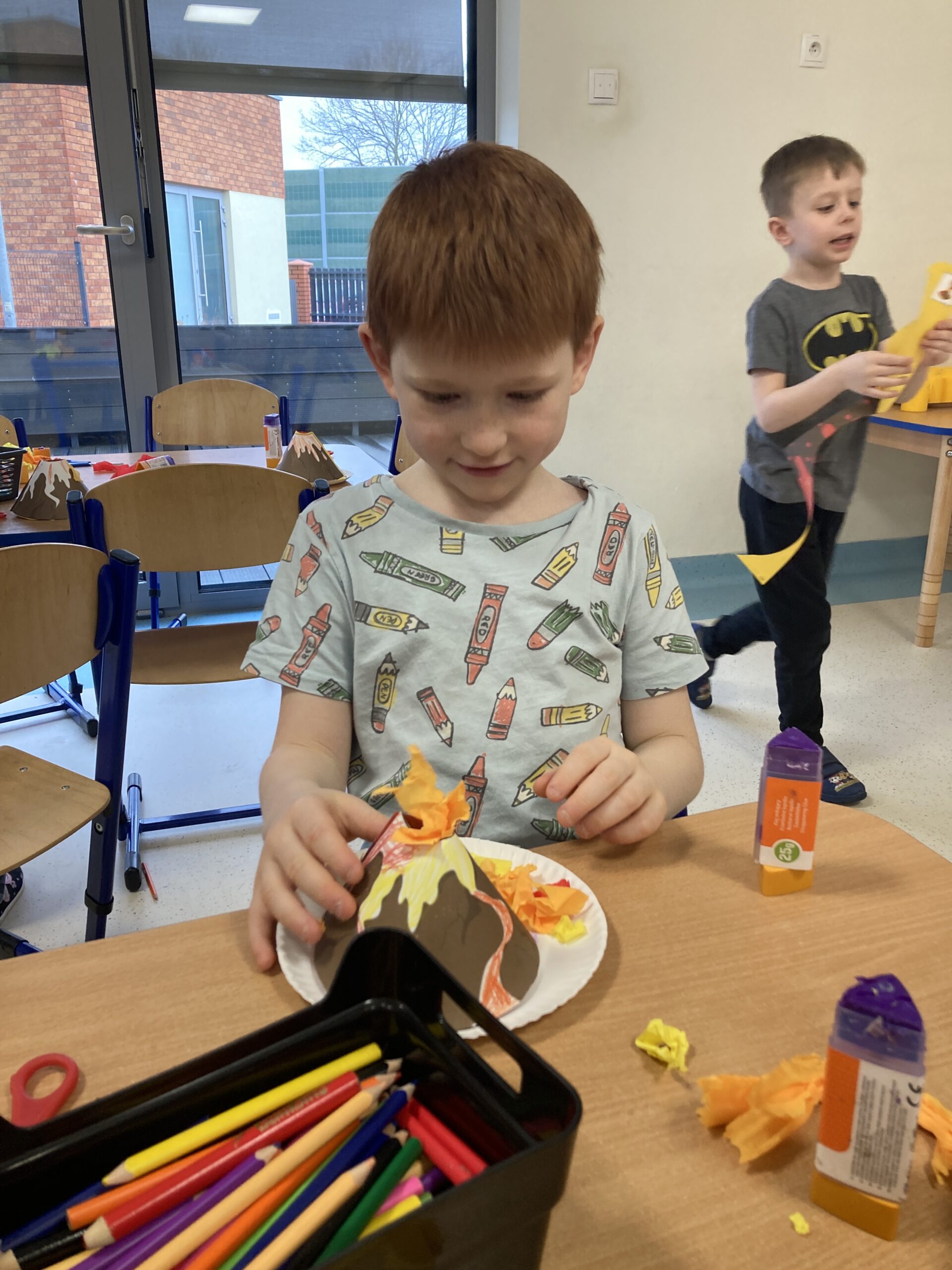 W tym tygodniu Motylki dowiedziały się ciekawych informacji na temat wulkanów. Poznały ich rodzaje, dowiedziały się kiedy i dlaczego wybuchają i co się z nich wydobywa. Zainspirowani zajęciami, postanowiliśmy zrobić nasz własny „wulkan”. Zbudowaliśmy makietę wulkanu i wykonaliśmy doświadczenie, w którym za pomocą sody, octu i barwnika uzyskaliśmy „wybuch wulkanu”. Tego typu zabawa jest najlepszym sposobem rozwijania aktywności własnej dziecka, zdobywania wiedzy i rozbudzenia ciekawości otaczającym światem. Uczy prowadzenia obserwacji i wyciągania wniosków z doświadczeń i eksperymentów. Następnie dzieci wykonały własne modele wulkanów.