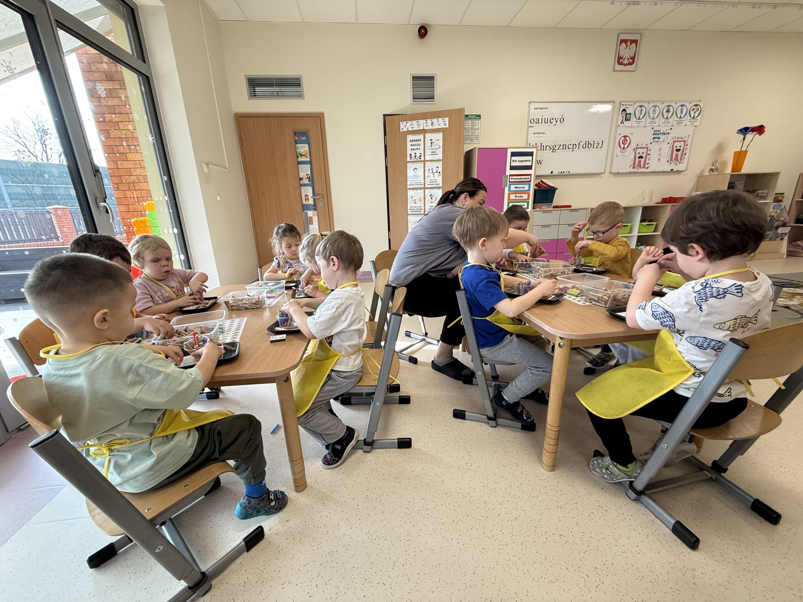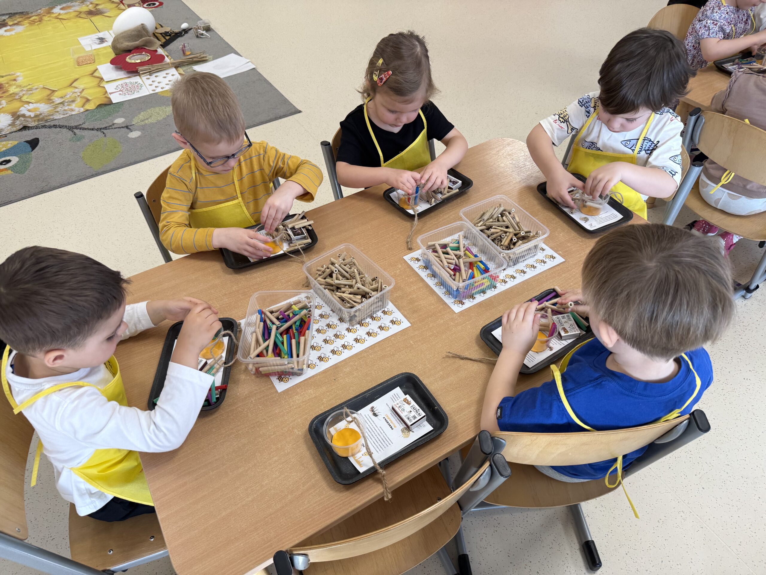 Dzieci z grupy pierwszej odkrywały ostatnio fascynujący świat pszczół murarek. Dzieci dowiedziały się, jak ważną rolę pełnią te małe zapylacze w przyrodzie, a następnie same zabrały się do pracy! Z ogromnym zaangażowaniem i radością stworzyły własny domek dla pszczół. To była nie tylko świetna zabawa, ale też cenna lekcja troski o naturę. Jesteśmy dumni z naszych małych ekologów!