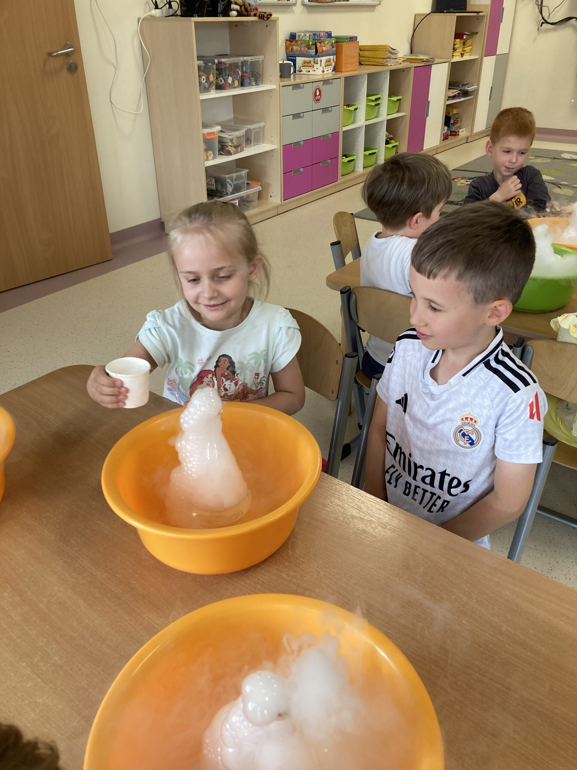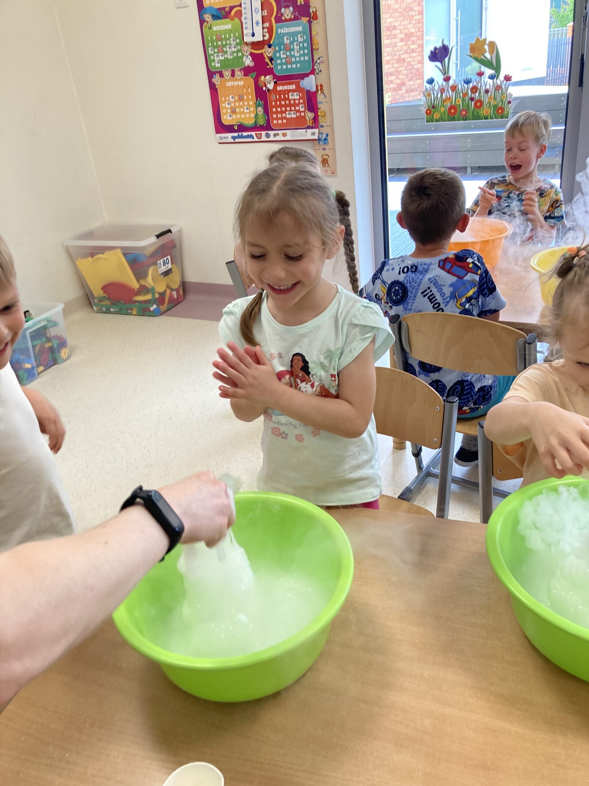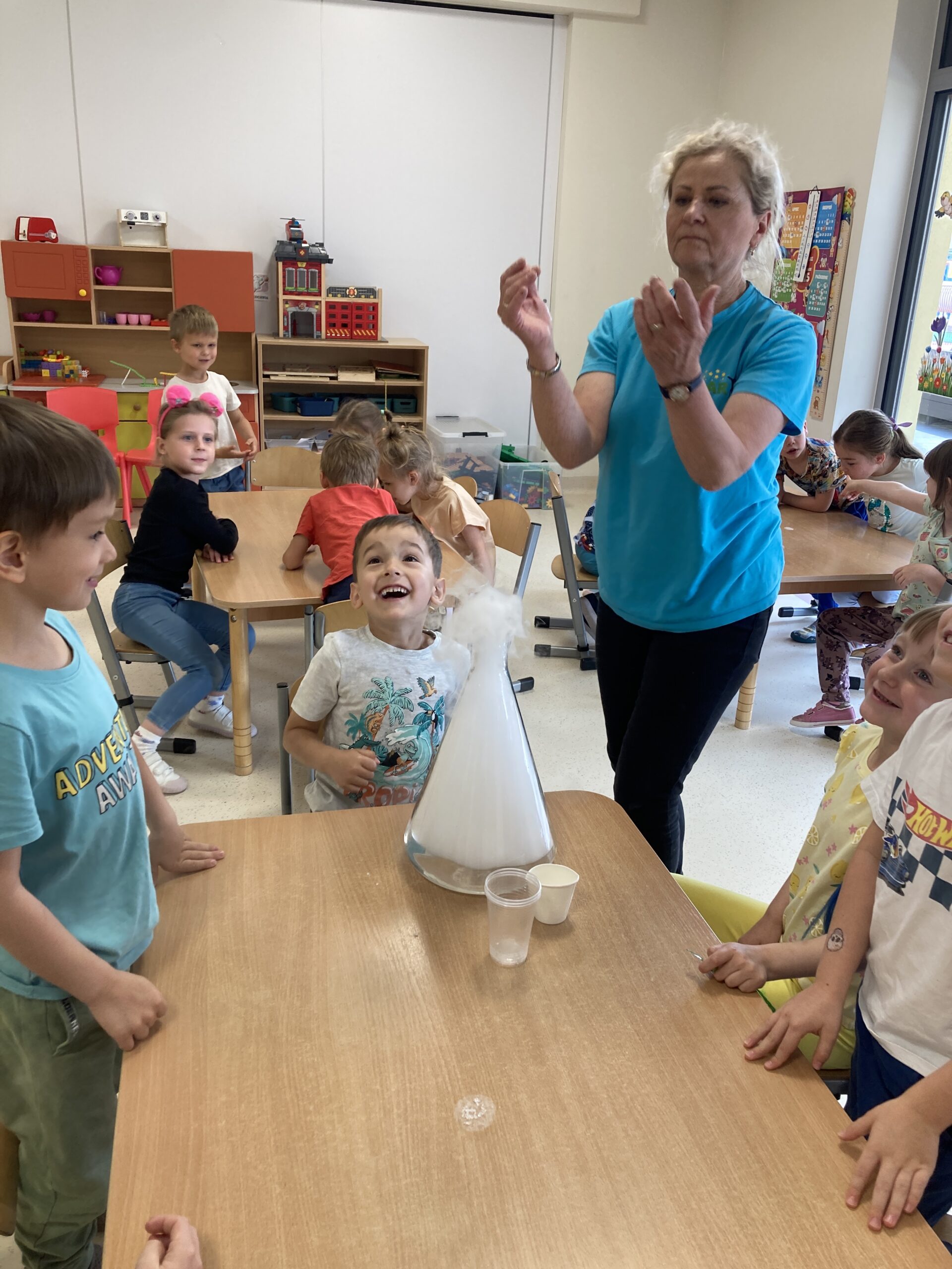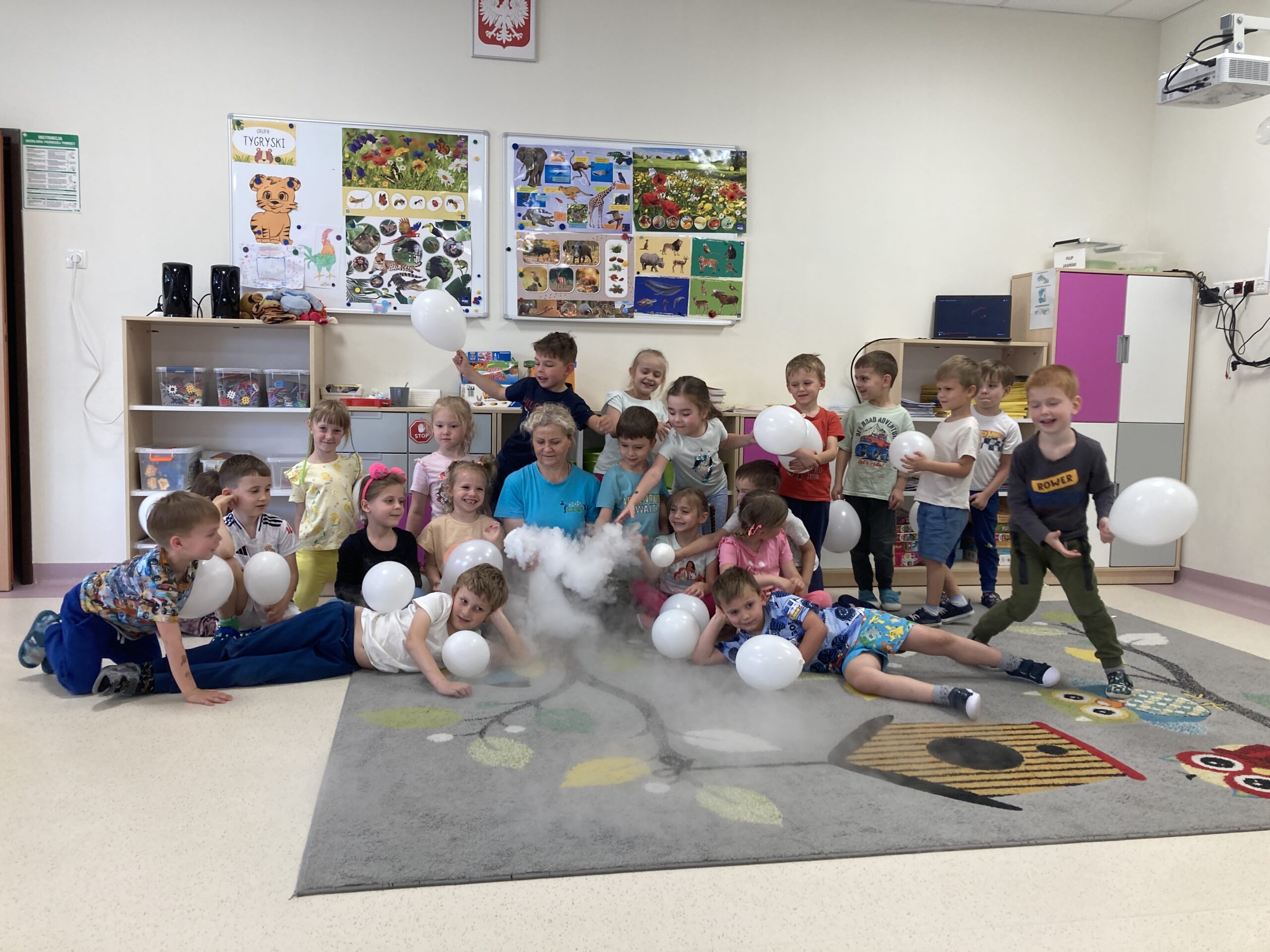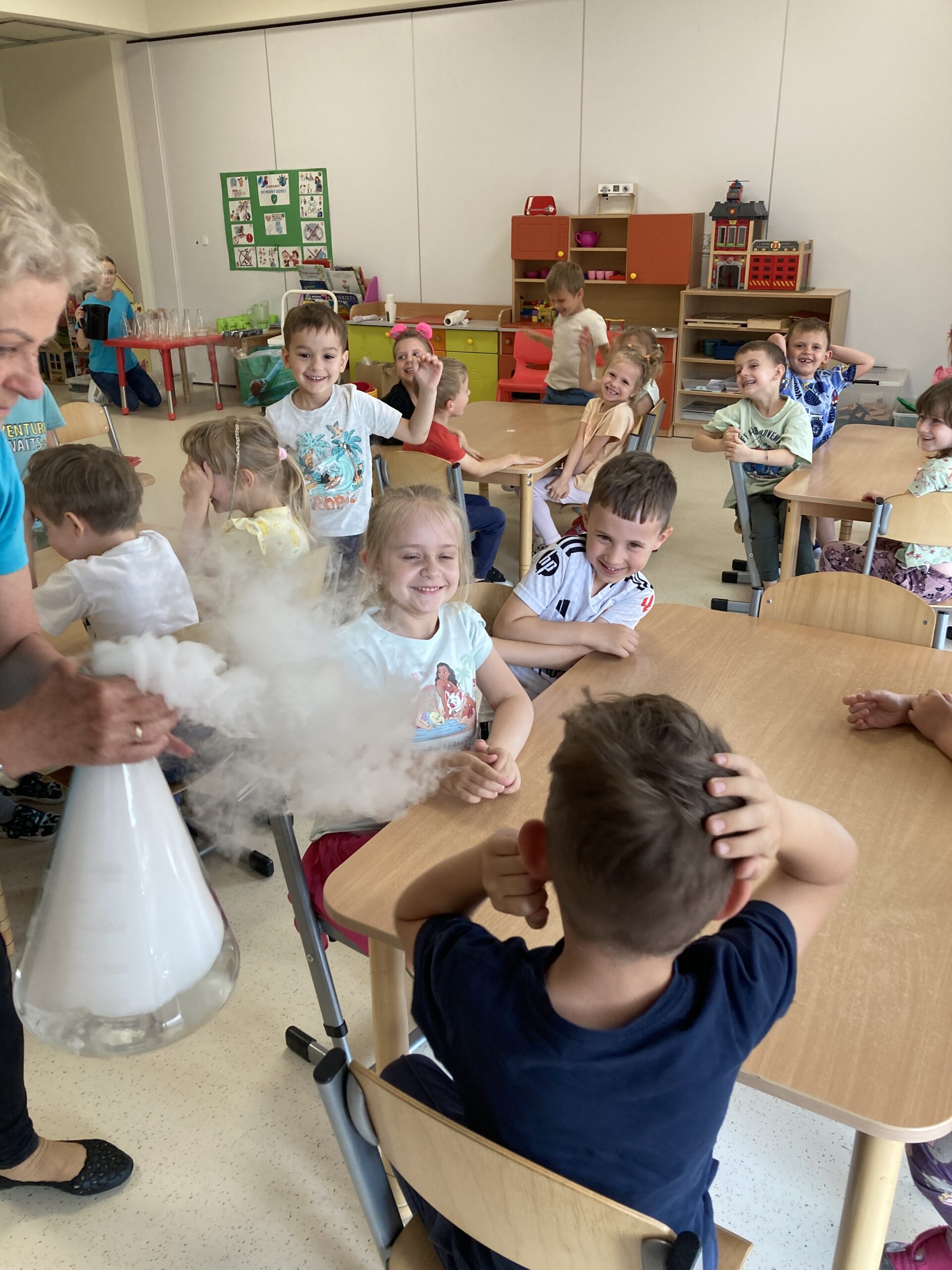 „Niezły dym” u Tygrysków Post published:12 czerwca, 2025 Post category:Pierwsza pomoc 10 czerwca w grupie Tygryski odbyły się warsztaty „Niezły dym”. Dzieci dowiedziały się ciekawych rzeczy o suchym lodzie i przeprowadziły samodzielnie kilka eksperymentów. Było przy tym mnóstwo zabawy.
