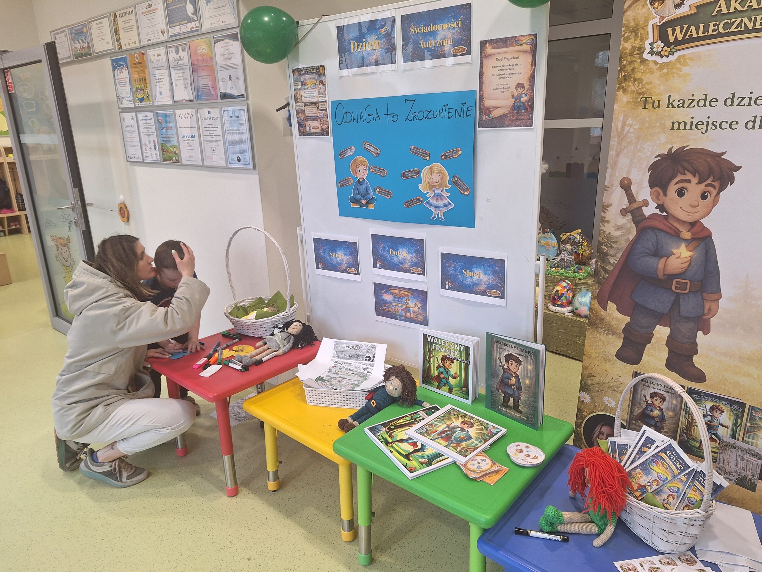 Z okazji Światowego Dnia Świadomości Autyzmu w naszym przedszkolu odbyły się wyjątkowe zajęcia pod hasłem „Odwaga to zrozumienie”. W tym szczególnym dniu wszystkie grupy przedszkolne miały okazję wziąć udział w przygotowanych aktywnościach, które wprowadziły dzieci w świat różnorodności, empatii i wzajemnego szacunku. Podczas zajęć dzieci uczestniczyły w aktywnościach sensorycznych, poznając świat poprzez słuch, smak i dotyk. Nie zabrakło także wyjątkowej podróży do Krainy Walecznego Franka, gdzie poprzez zabawę i opowieści dzieci uczyły się, jak ważne jest zrozumienie i akceptacja drugiego człowieka. Zajęcia były pełne radości, zaangażowania i wartościowych rozmów, które na długo pozostaną w pamięci naszych przedszkolaków 💙
