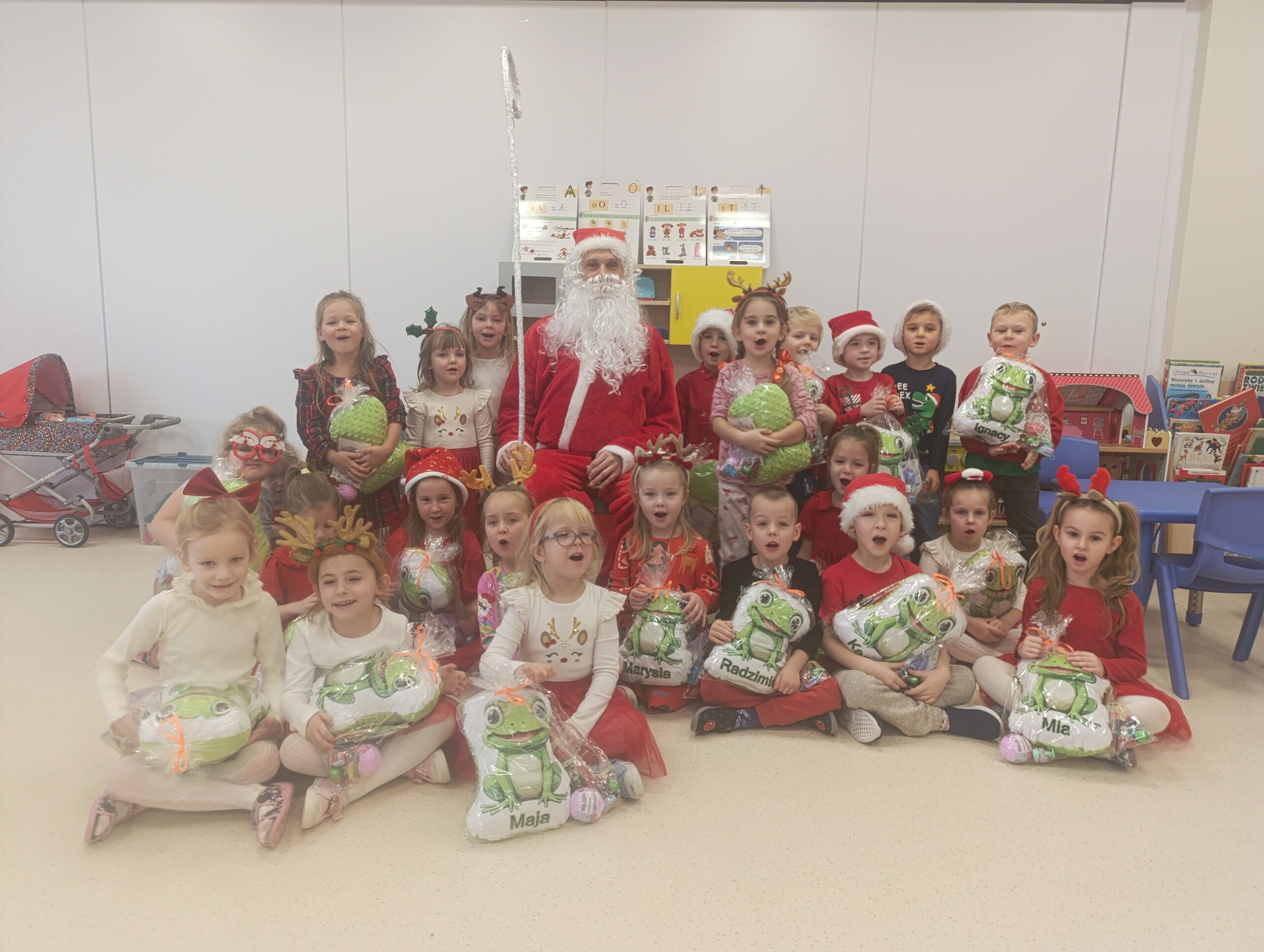Odwiedziny Mikołaja Post published:9 grudnia, 2025 Post category:Wydarzenia Grupa V - Żabki Odwiedziny Mikołaja „Nasz kochany Mikołaj Dziś prezenty rozda nam Pod choinkę włoży je Byśmy mogli cieszyć się”