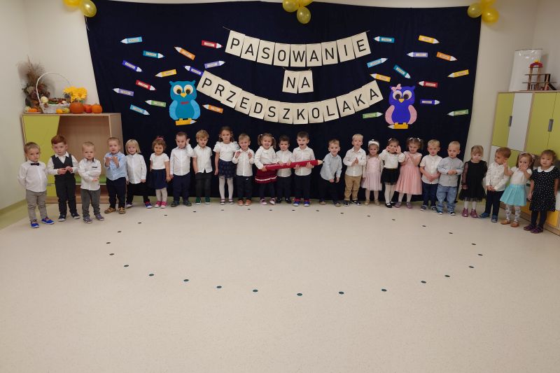 30 października w naszym przedszkolu odbyła się uroczystość Pasowania na Przedszkolaka dzieci z grupy I ,,Pszczółki”. Dzieci w części artystycznej zaprezentowały swoje umiejętności recytatorskie oraz wokalne. Złożyły uroczyste ślubowanie, a po wygłoszeniu przez nie przysięgi, Pani Dyrektor dokonała pasowania. Każde dziecko otrzymało pamiątkowy dyplom i książeczkę. Wszystkim pasowanym przedszkolakom życzymy uśmiechu i wiele radości na każdy dzień pobytu w przedszkolu.