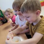 Pieczenie ciasta to dla dzieci wielka frajda. Doświadczyły tego dzieci z grupy Kropek, które przygotowały samodzielnie ciasto. Każdy z uczestników warsztatów miał okazję dodać odpowiedni składnik.