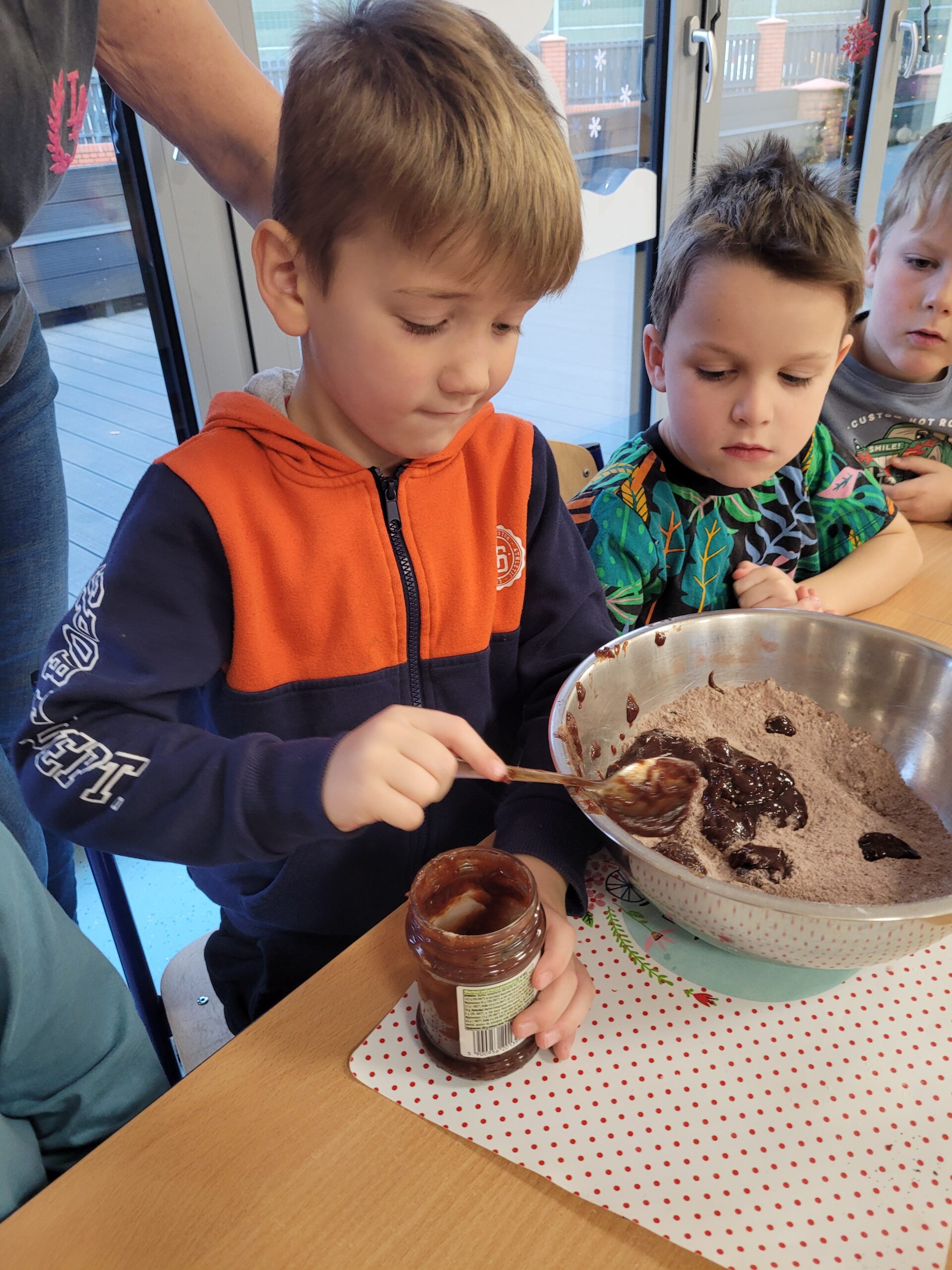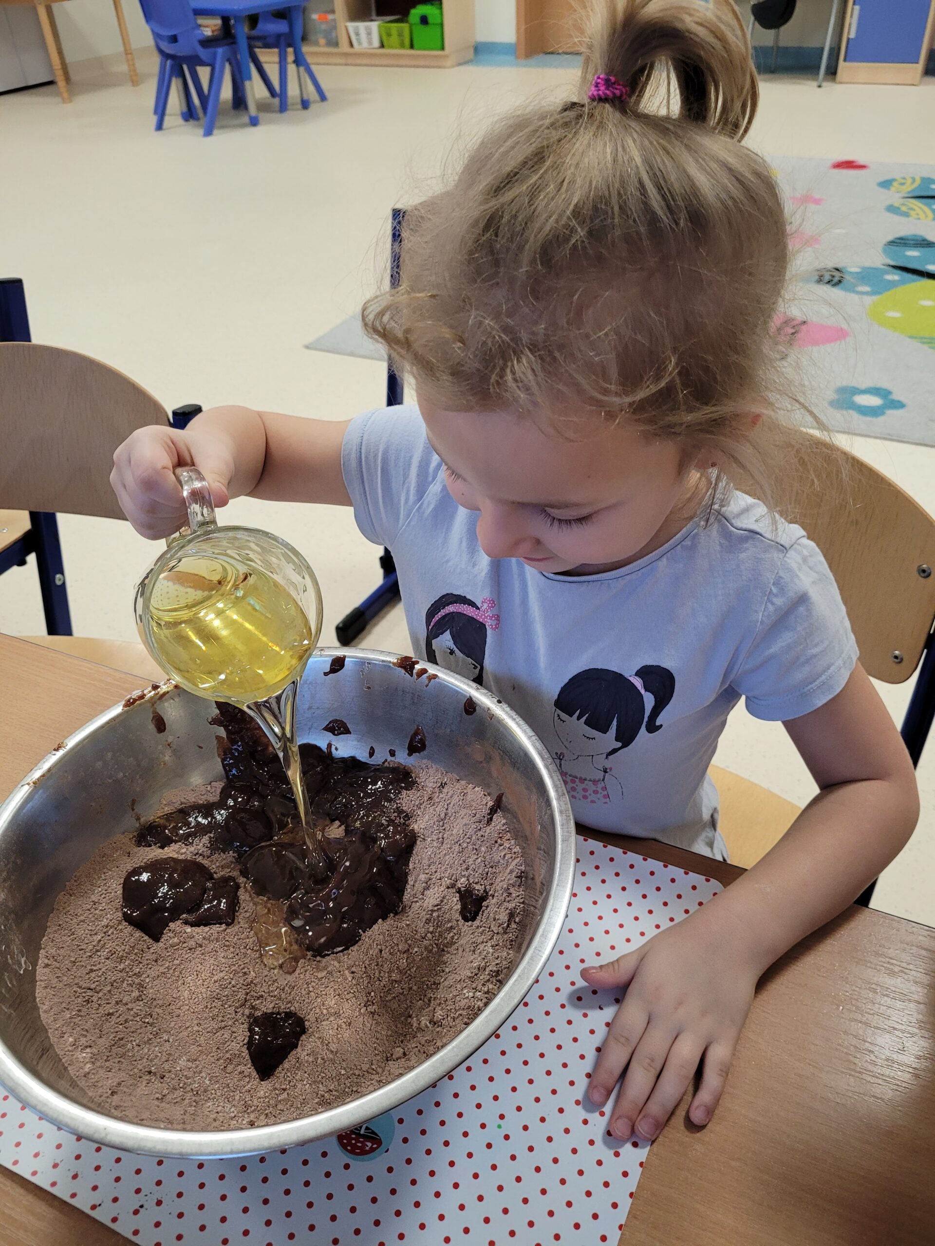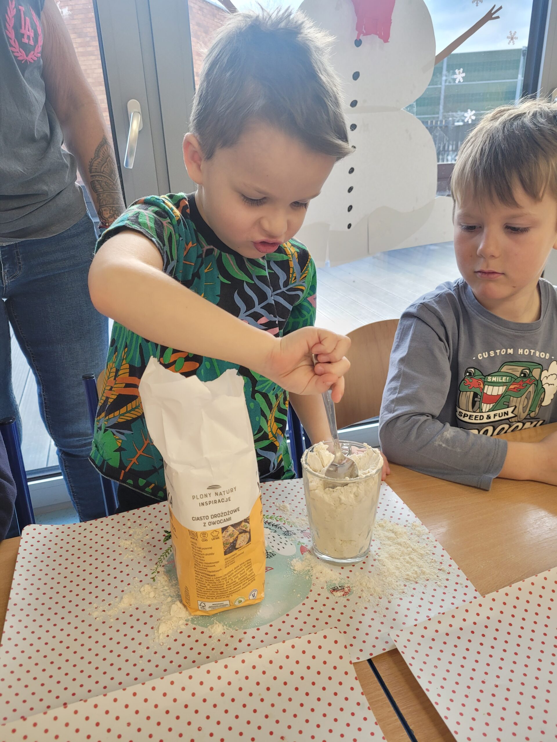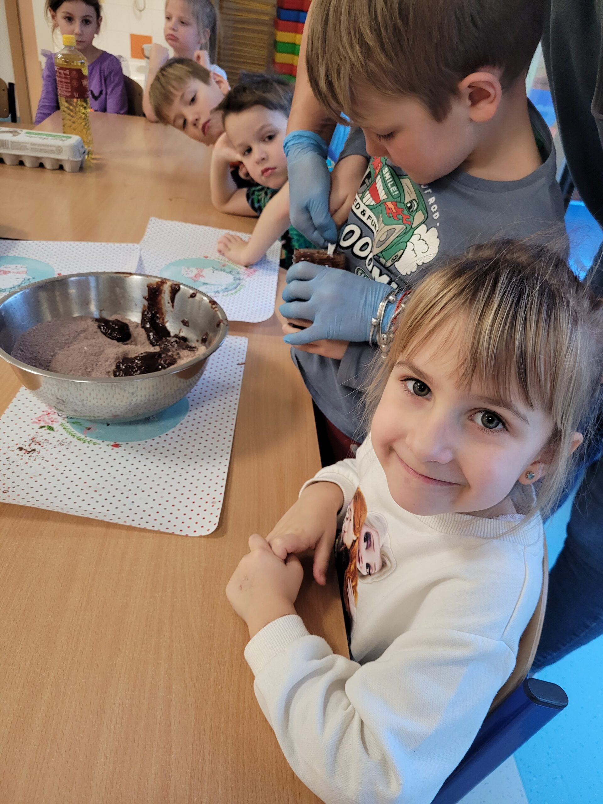 Pieczenie ciasta to dla dzieci wielka frajda. Doświadczyły tego dzieci z grupy Kropek, które przygotowały samodzielnie ciasto. Każdy z uczestników warsztatów miał okazję dodać odpowiedni składnik.