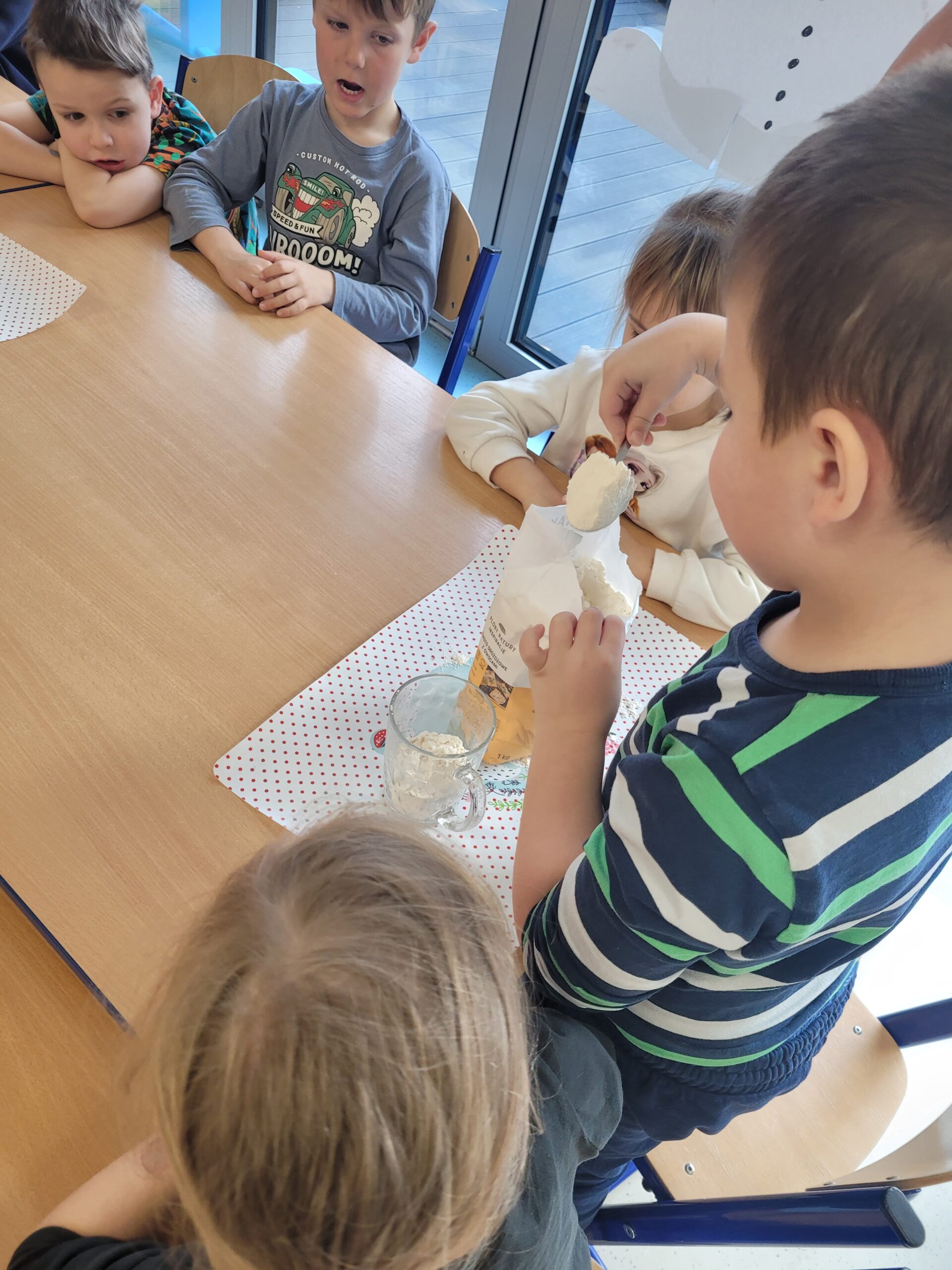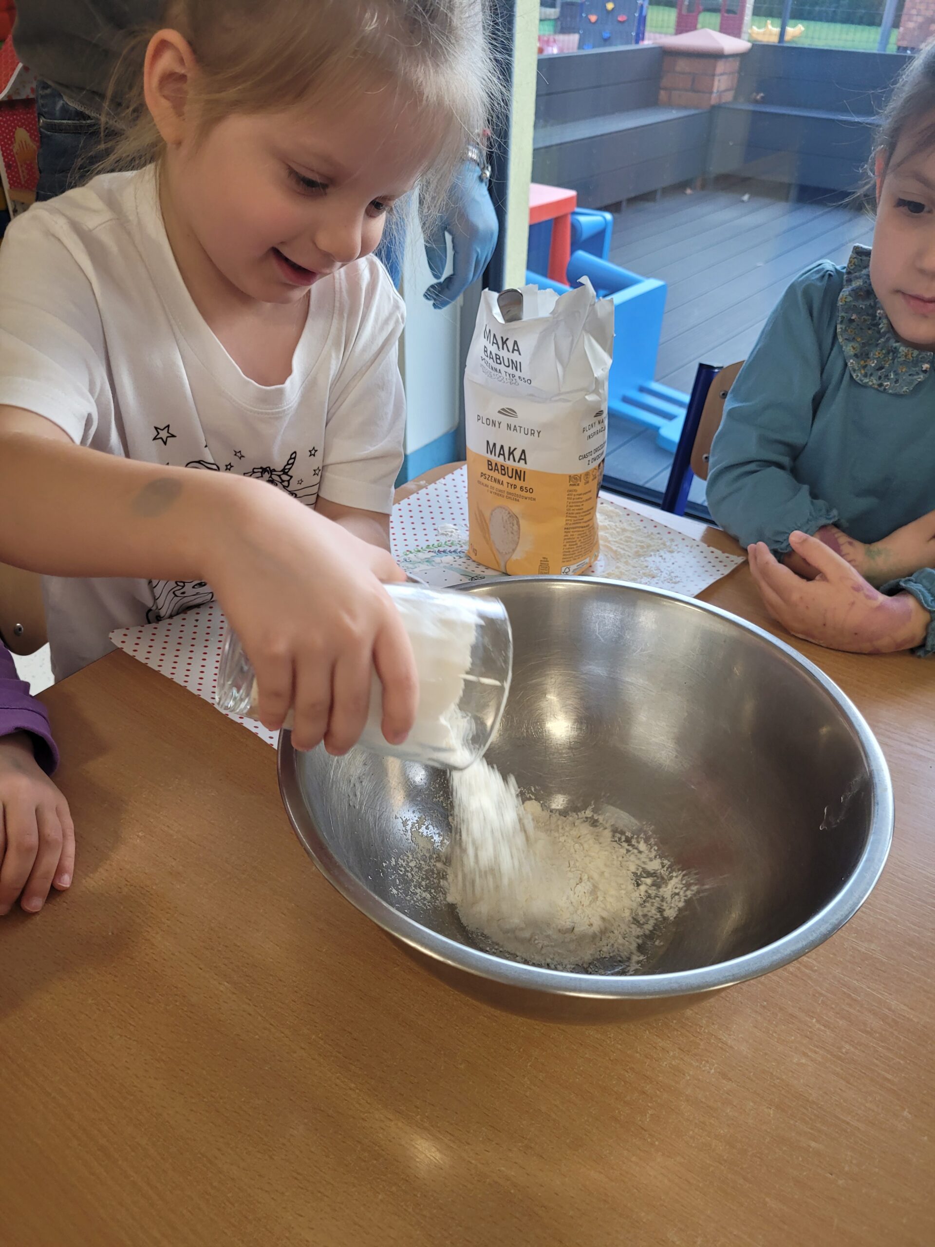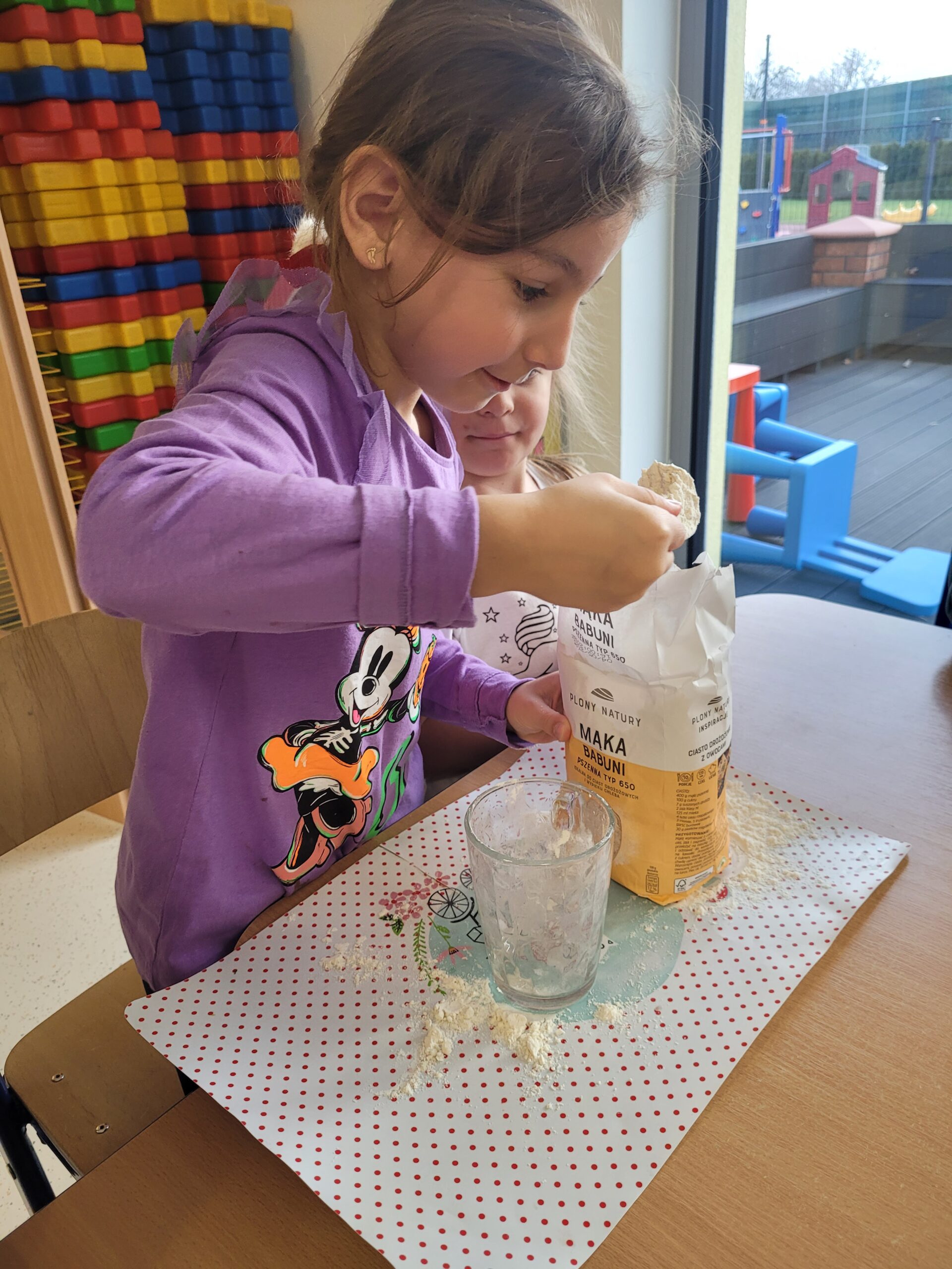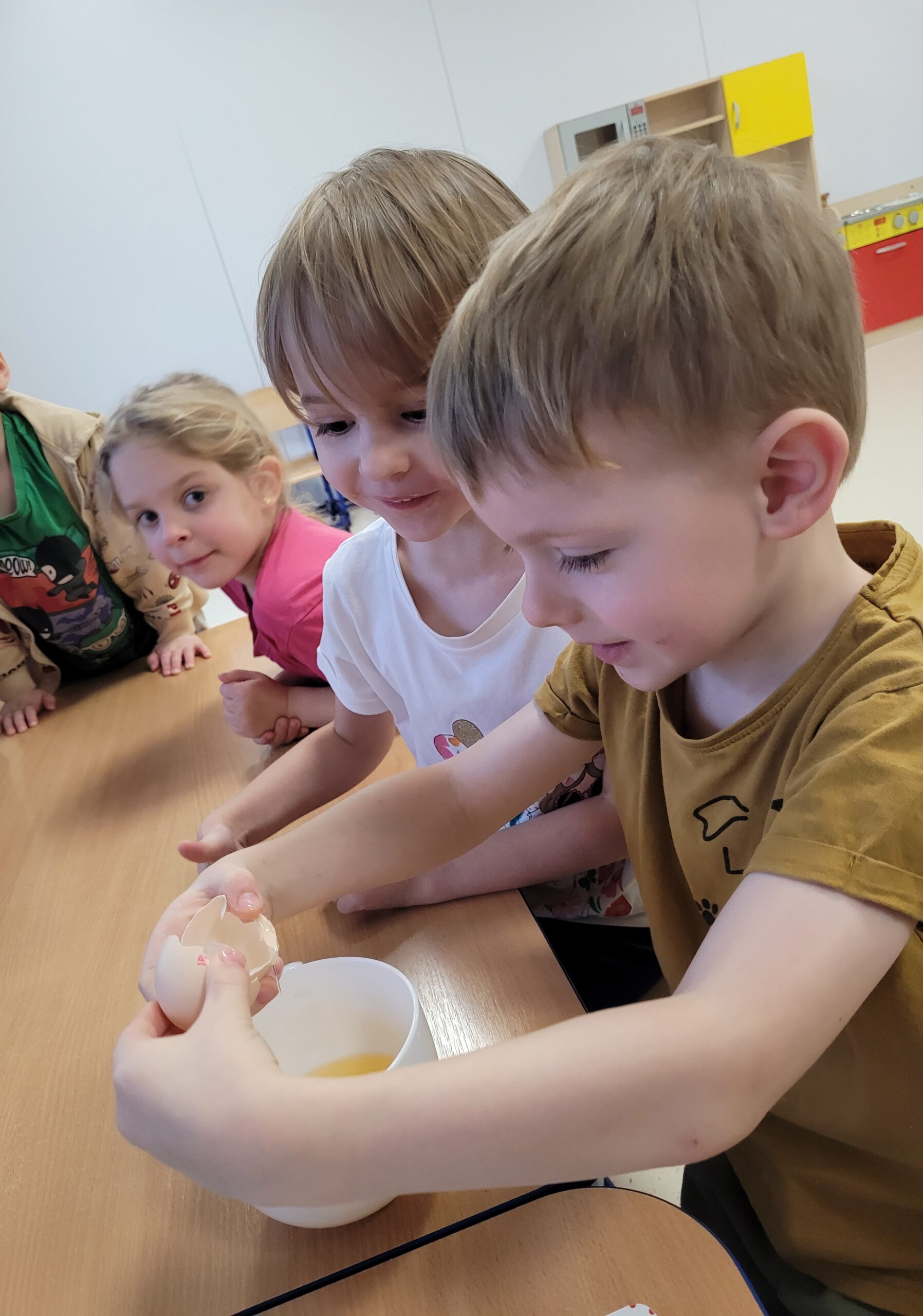 Pieczenie ciasta to dla dzieci wielka frajda. Doświadczyły tego dzieci z grupy Kropek, które przygotowały samodzielnie ciasto. Każdy z uczestników warsztatów miał okazję dodać odpowiedni składnik.