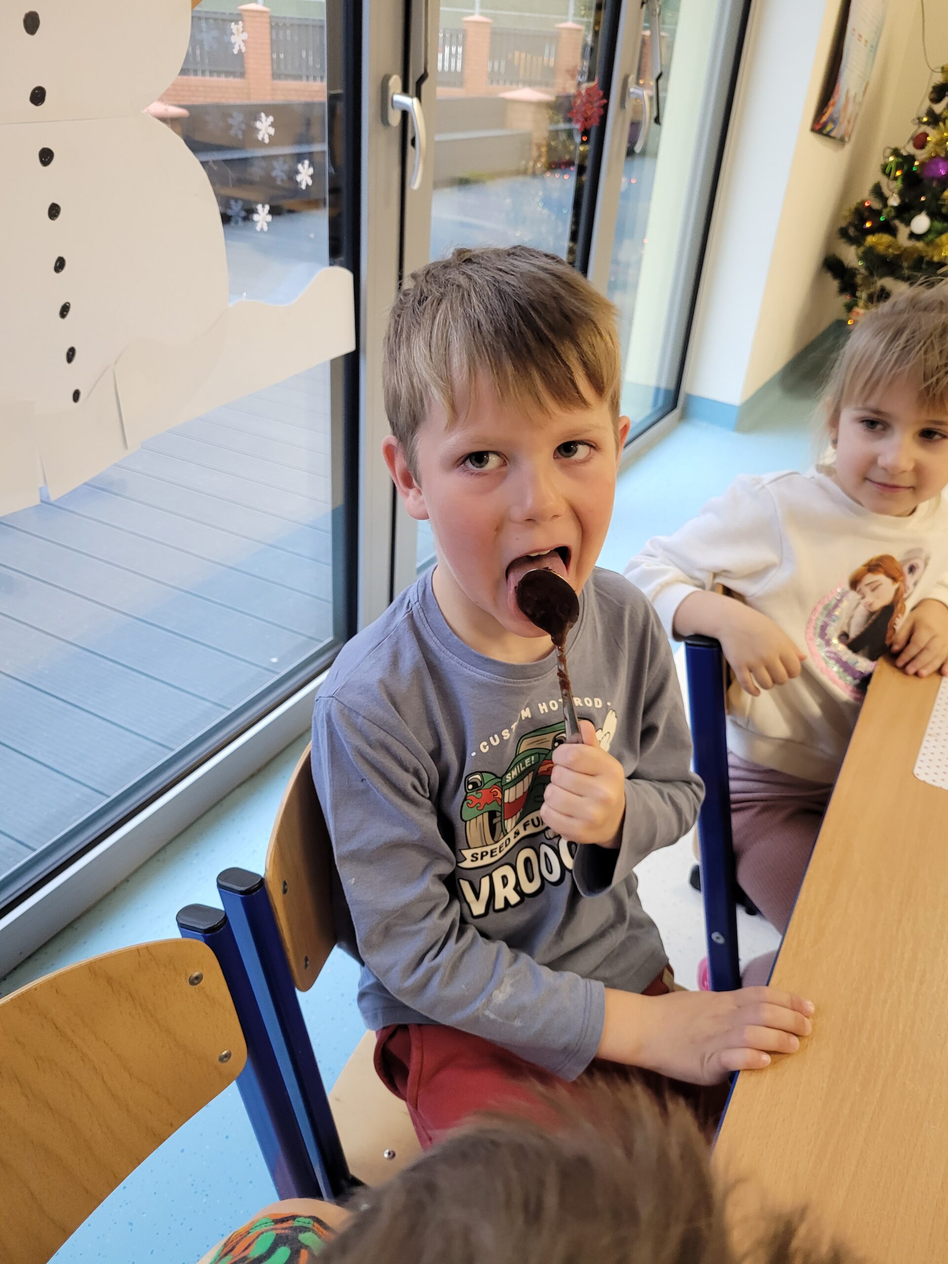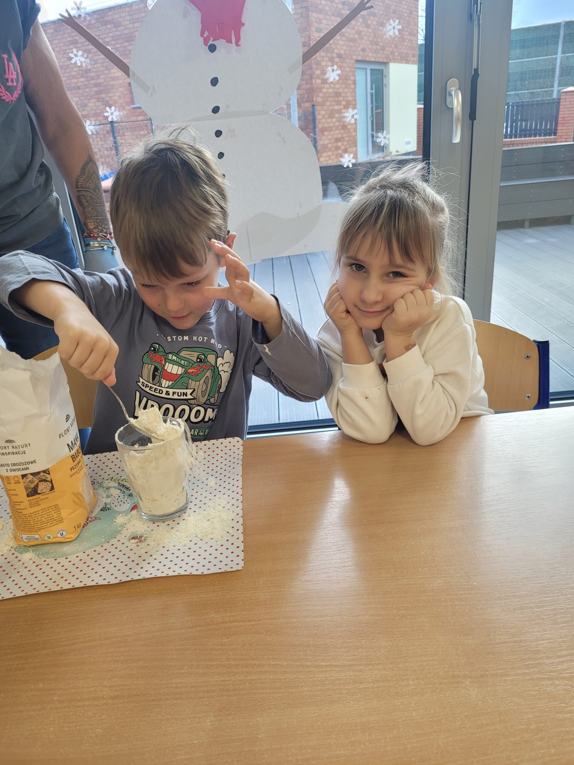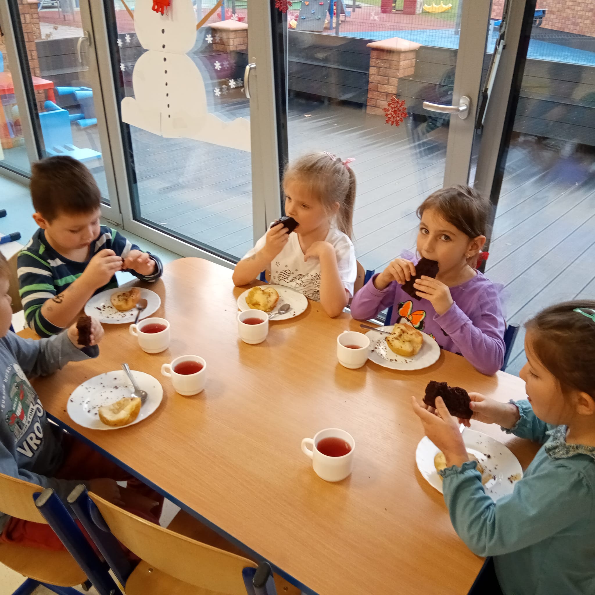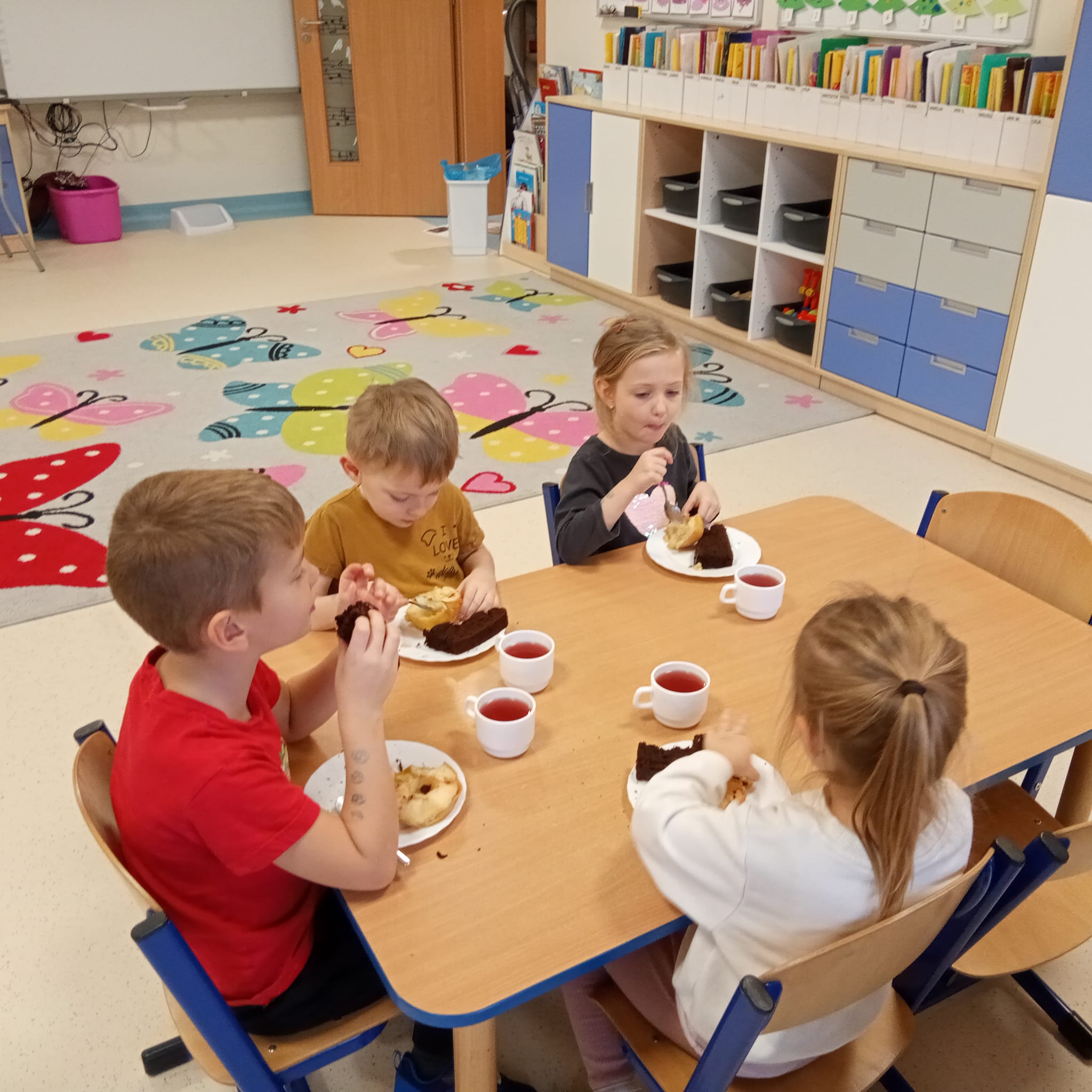 Efektem tej wspaniałej współpracy było upieczenie ciasta i zjedzenie go podczas wspólnego podwieczorku.