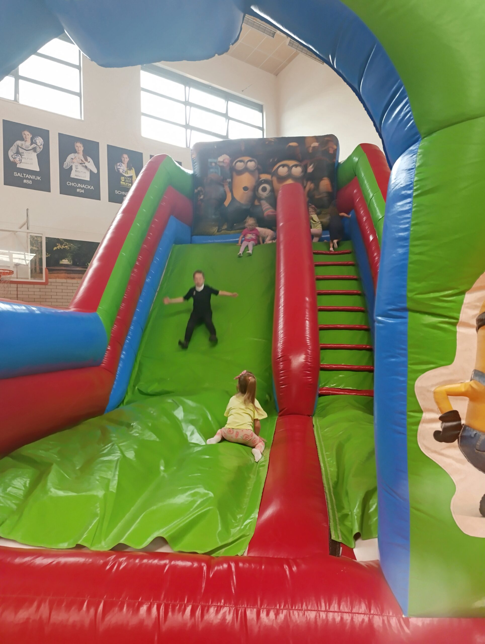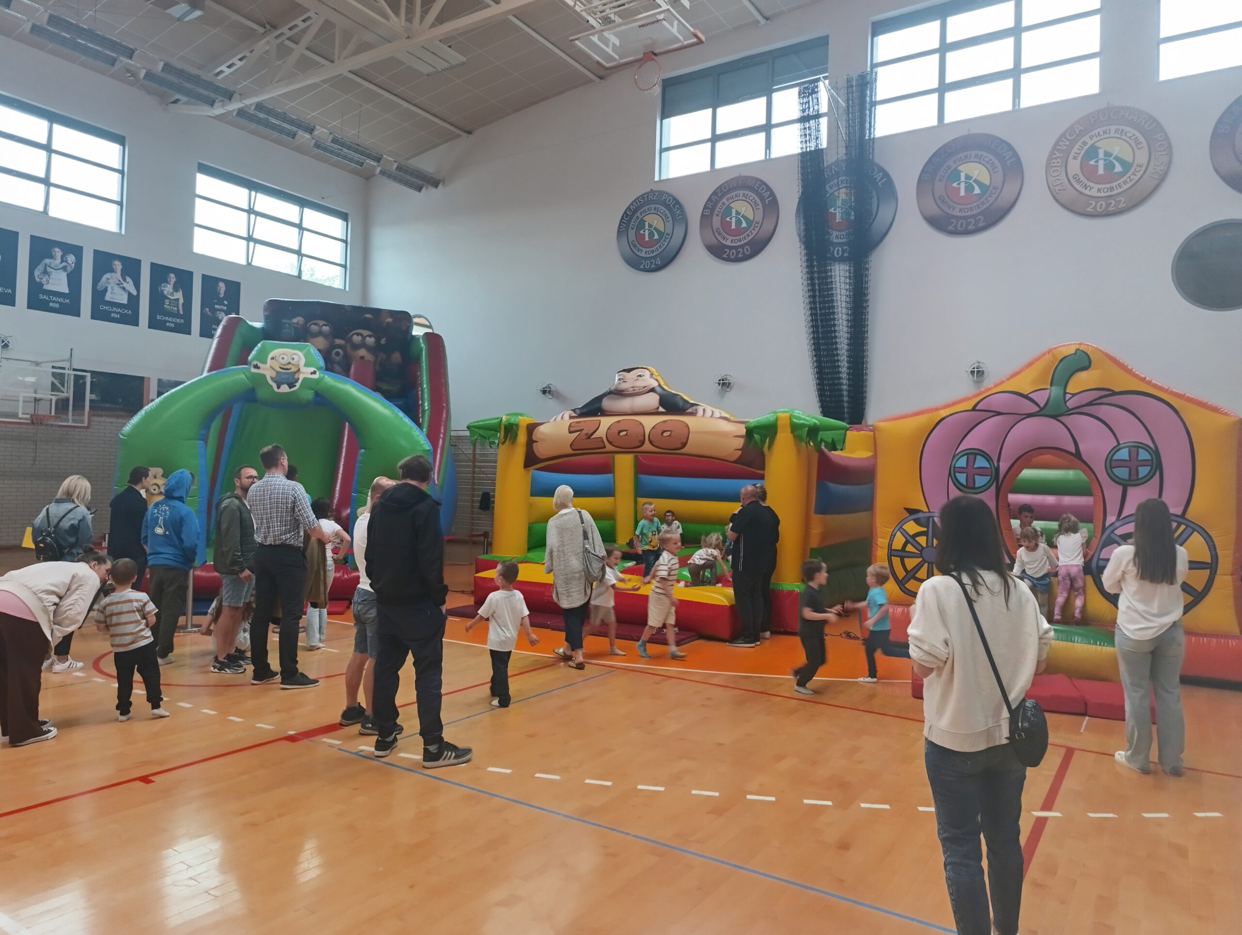 16 czerwca w grupie Żabek odbył się piknik rodzinny. Pierwotnie odbyć miał się w plenerze, ale matka natura zdecydowała inaczej. Za oknem było ponuro i deszczowo, ale pod dachem Hali Widowisko- Sportowej panowała juz radosna atmosfera bowiem hala zamieniła sie w kolorowy plac zabaw dla dzieci.