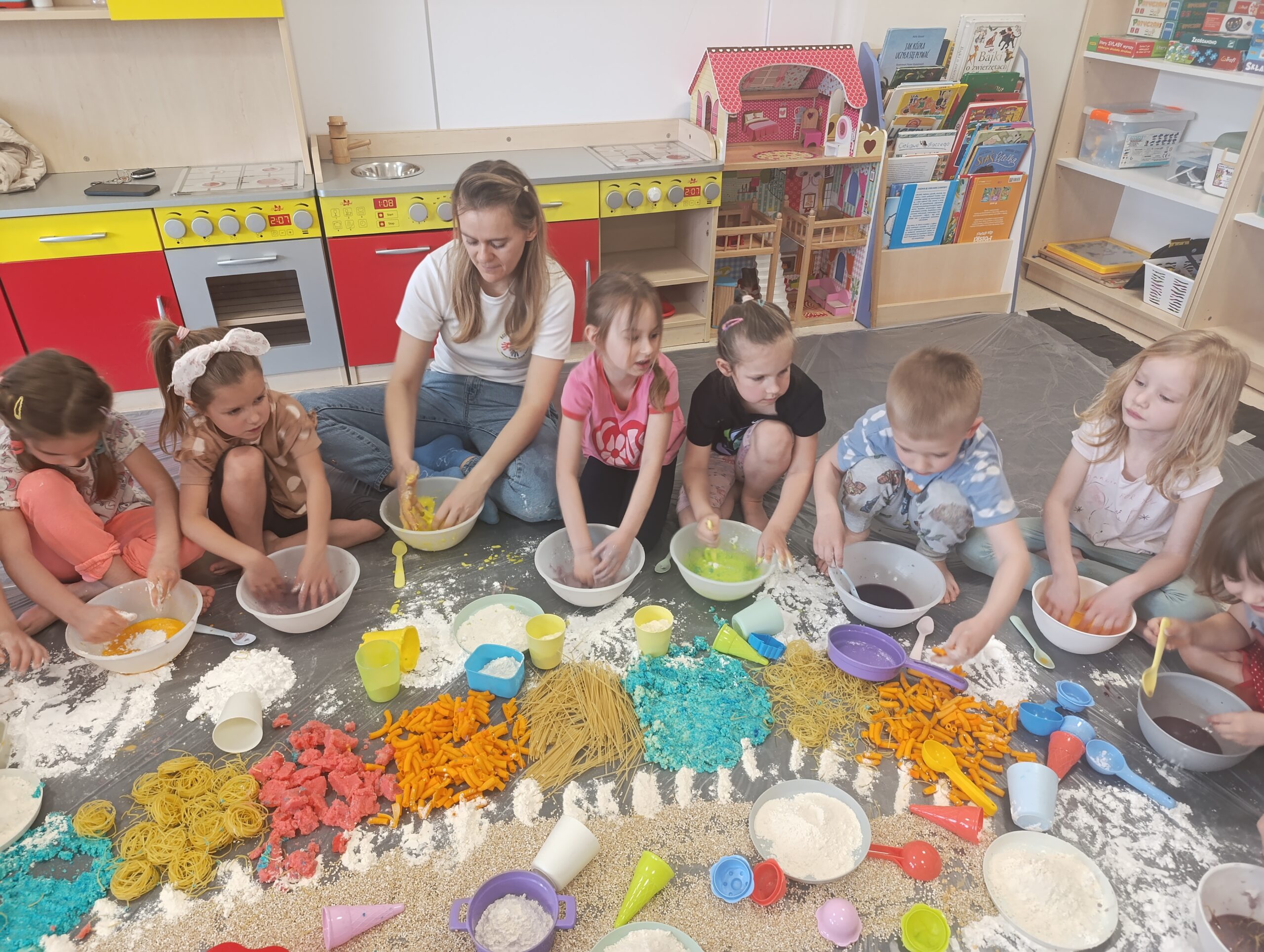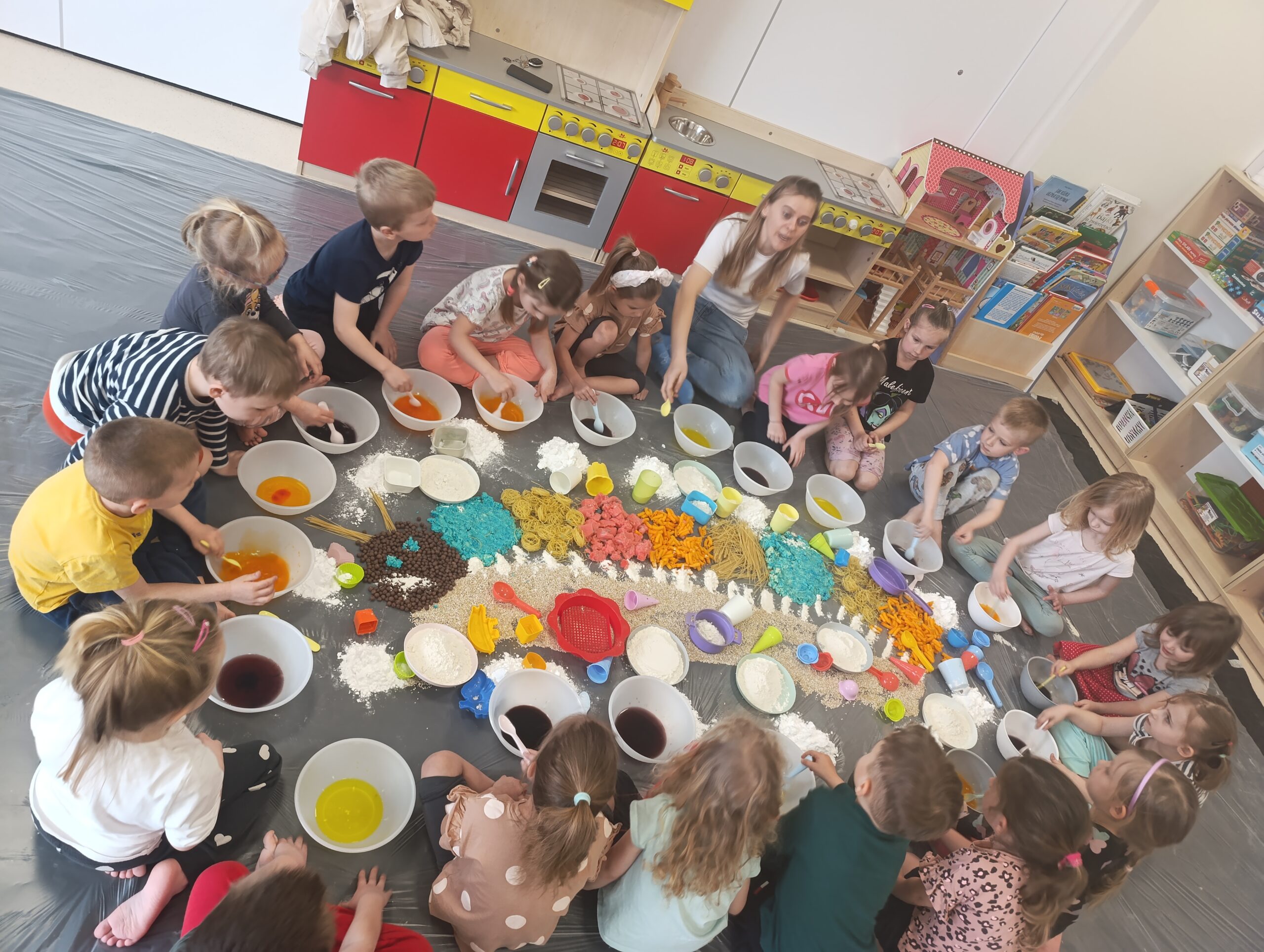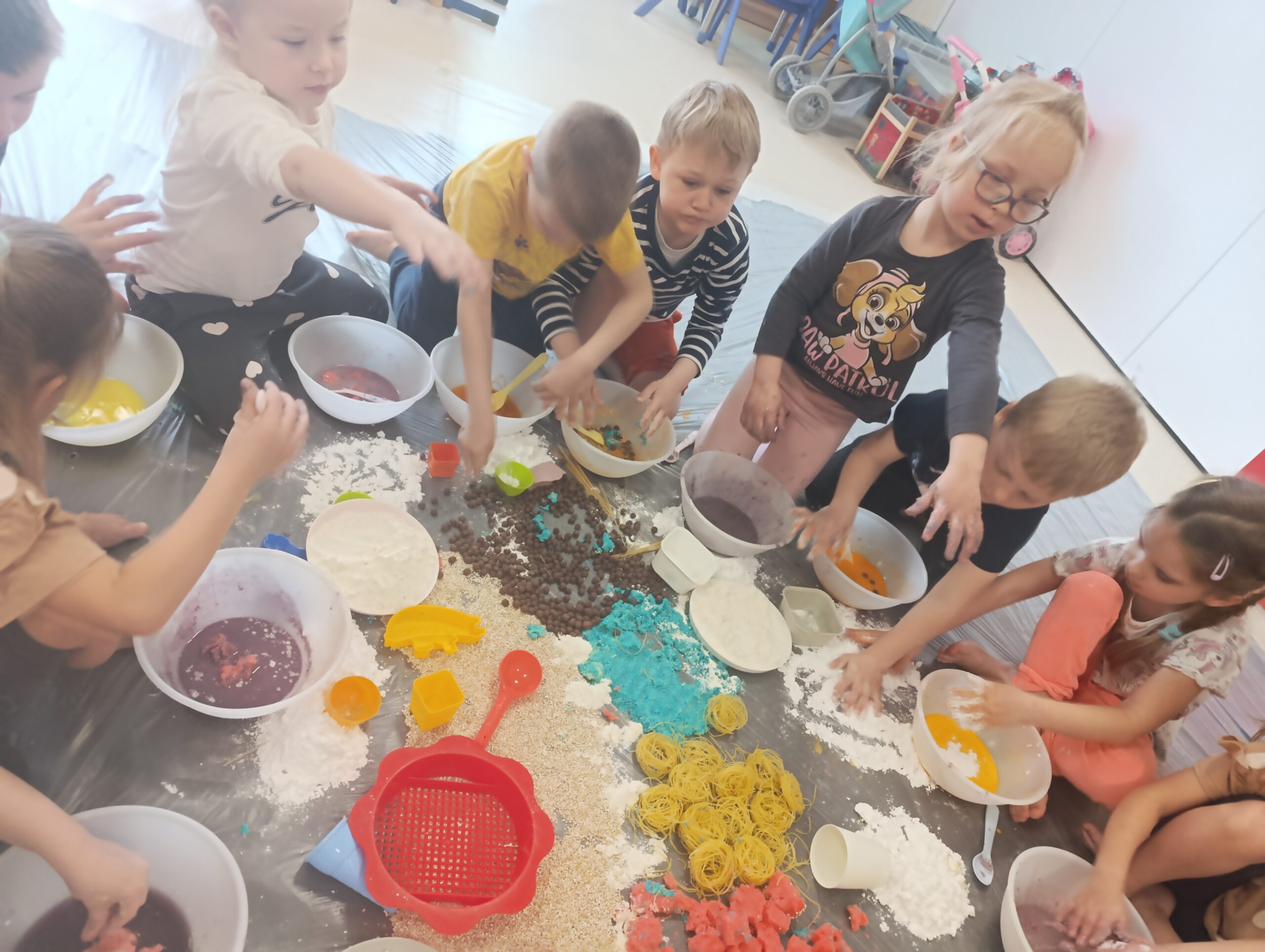 Sensoplastyka w przedszkolu to innowacyjne zajęcia rozwojowe, angażujące wszystkie zmysły (wzrok, słuch, dotyk, węch, smak) poprzez kreatywne brudzenie i zabawę. Wykorzystując produkty spożywcze (mąki, ryże, oleje, barwniki), dzieci tworzą bezpieczne masy plastyczne, co wspiera integrację sensoryczną, motorykę małą/dużą oraz kreatywność.