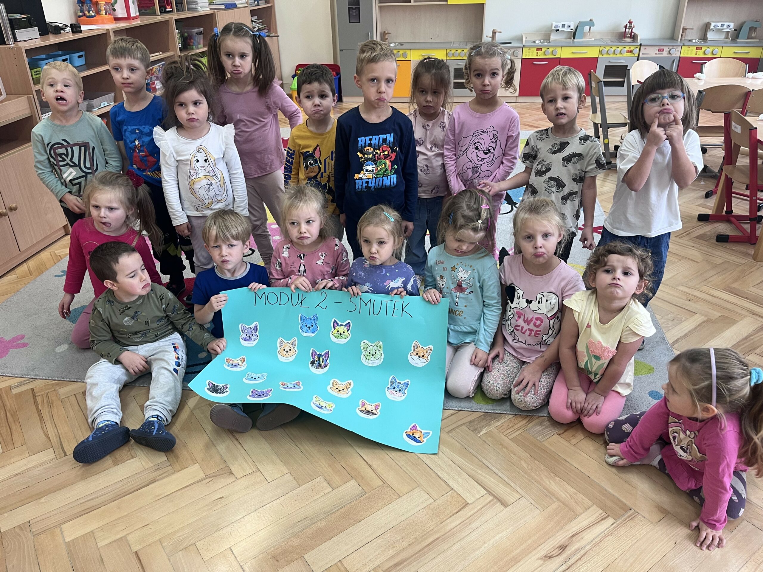 Przedszkolaki uczyły się rozpoznawać swoje uczucia, nazywać je oraz poznawały sposoby, jak nad nimi panować. Dzięki zabawom, opowiadaniom i wspólnym rozmowom dzieci lepiej poznały siebie i innych. Projekt wzbudził wiele pozytywnych emocji – Miś Berniś na długo pozostanie w sercach naszych przedszkolaków! 🧸💛