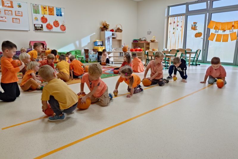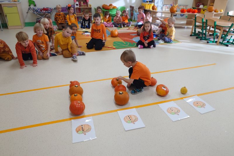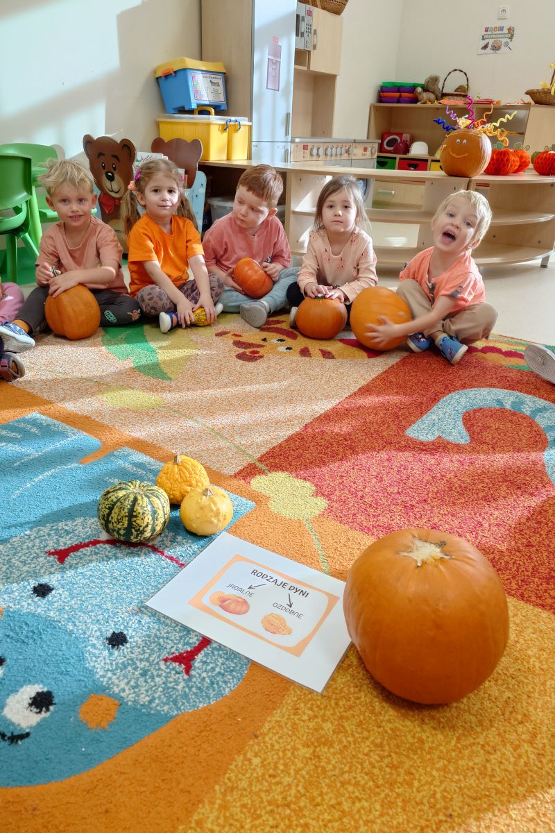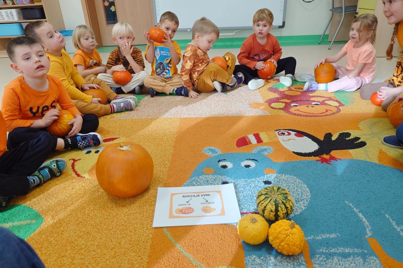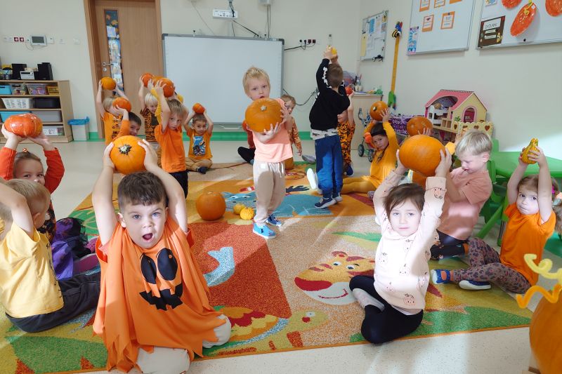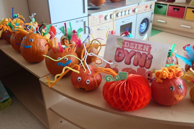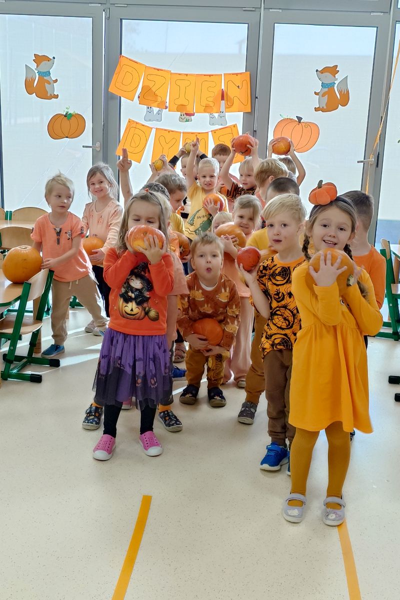 Dnia 31 października obchodziliśmy Dzień Dyni. Dzieci uczestniczyły w zajęciach, podczas których poznały bardzo zdrowe i urodziwe warzywo jakim jest dynia. Tego dnia przedszkolaki przyniosły do przedszkola dynie i ubrały się na kolor pomarańczowy. „Dzień Dyni” pozwolił dzieciom poznać wielką różnorodność dyń i wzbogacił wiedzę na ich temat. Tego dnia odbyły się liczne zabawy z udziałem dyni: dyniowe turlanie, slalom dyniowy, przeliczanie dyń, wybranie najmniejszej i największej dyni oraz ziarnko do ziarnka. Przy pomocy dzieci powstała dynia do ćwiczeń motoryki małej .Na koniec z dyń dzieci stworzyły Dyniowe Cudaki. Ten dzień był pełen wrażeń i radości.