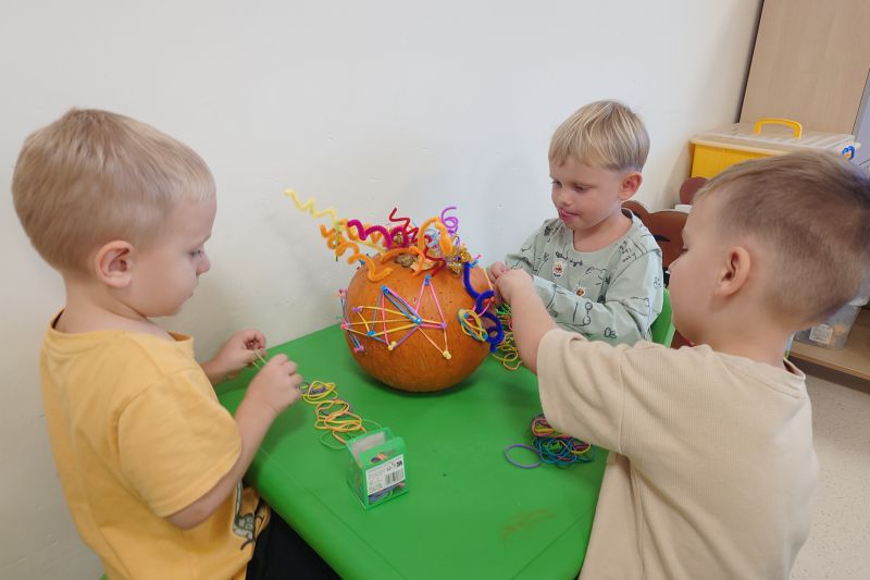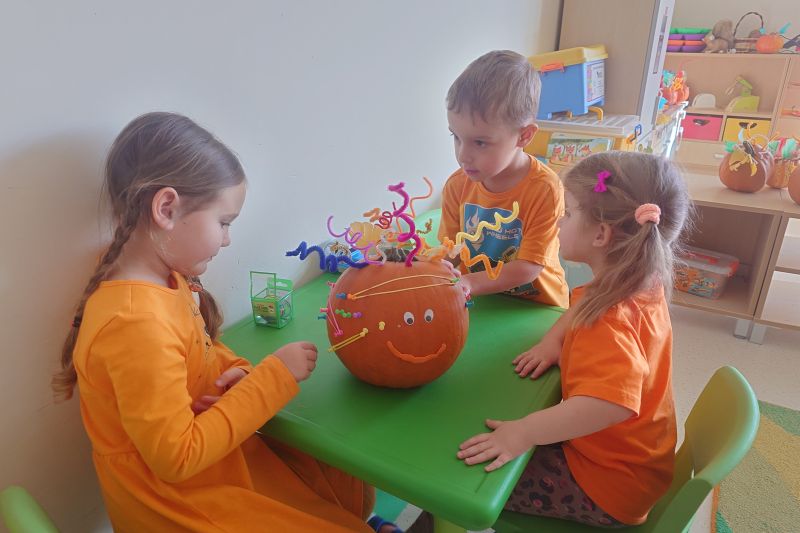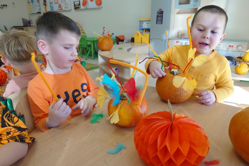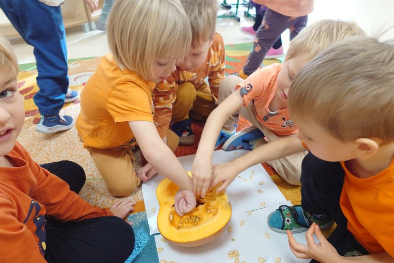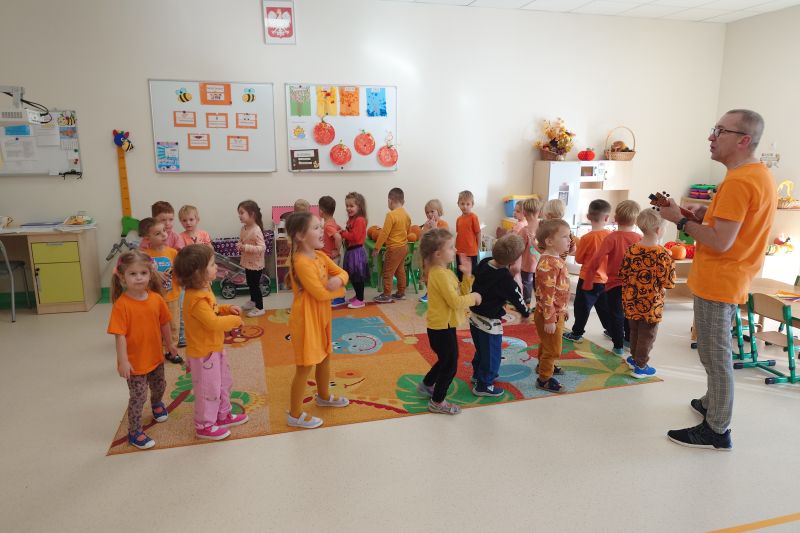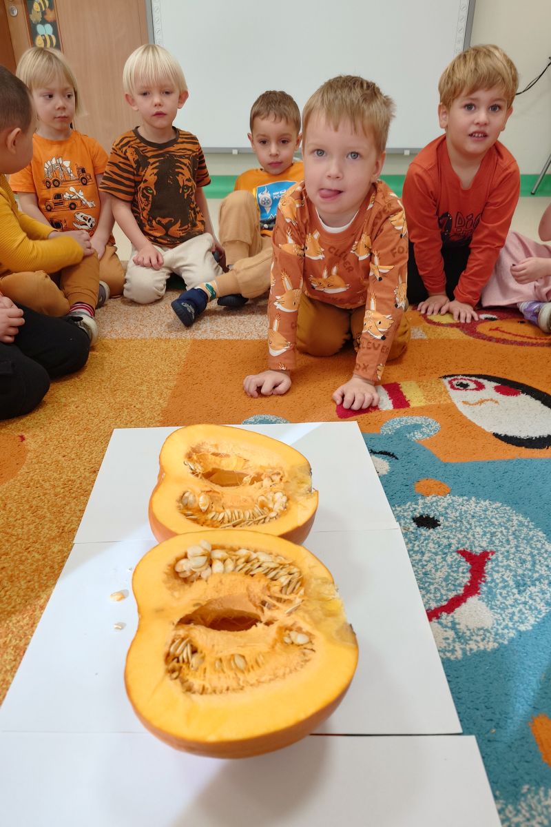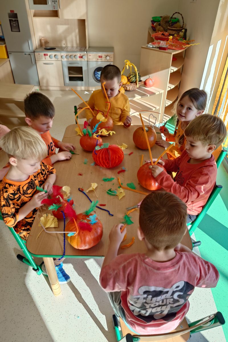 Dnia 31 października obchodziliśmy Dzień Dyni. Dzieci uczestniczyły w zajęciach, podczas których poznały bardzo zdrowe i urodziwe warzywo jakim jest dynia. Tego dnia przedszkolaki przyniosły do przedszkola dynie i ubrały się na kolor pomarańczowy. „Dzień Dyni” pozwolił dzieciom poznać wielką różnorodność dyń i wzbogacił wiedzę na ich temat. Tego dnia odbyły się liczne zabawy z udziałem dyni: dyniowe turlanie, slalom dyniowy, przeliczanie dyń, wybranie najmniejszej i największej dyni oraz ziarnko do ziarnka. Przy pomocy dzieci powstała dynia do ćwiczeń motoryki małej .Na koniec z dyń dzieci stworzyły Dyniowe Cudaki. Ten dzień był pełen wrażeń i radości.