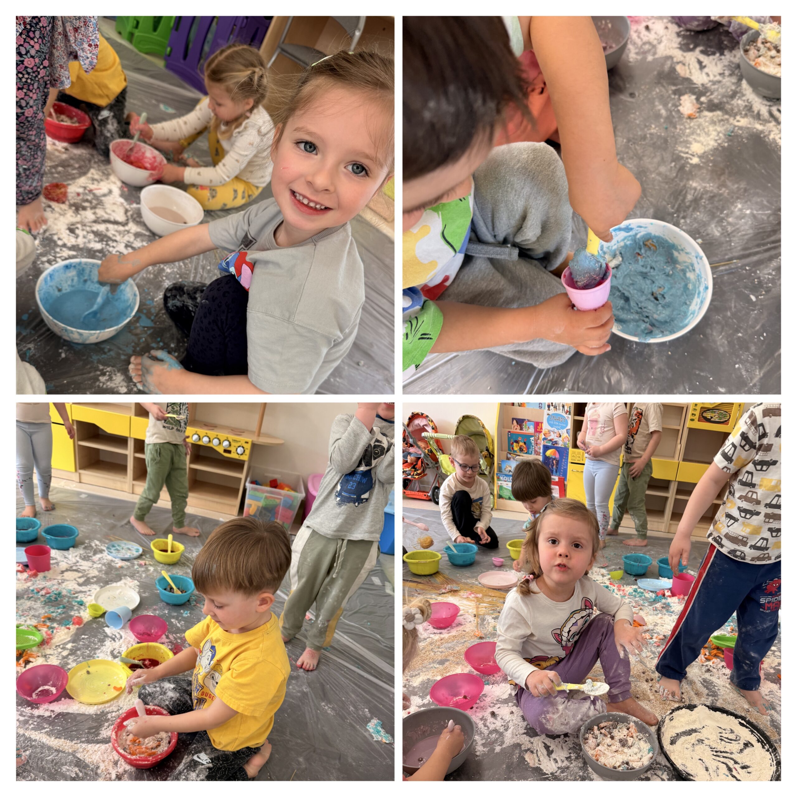 Dzieci z ogromnym zaangażowaniem uczestniczyły w zabawie, tworząc kolorowe kompozycje i eksperymentując z różnymi materiałami. Uśmiechom i radości nie było końca! To był dzień pełen twórczej aktywności i wspaniałej zabawy 😊 Zapraszamy do obejrzenia fotorelacji!