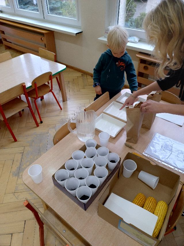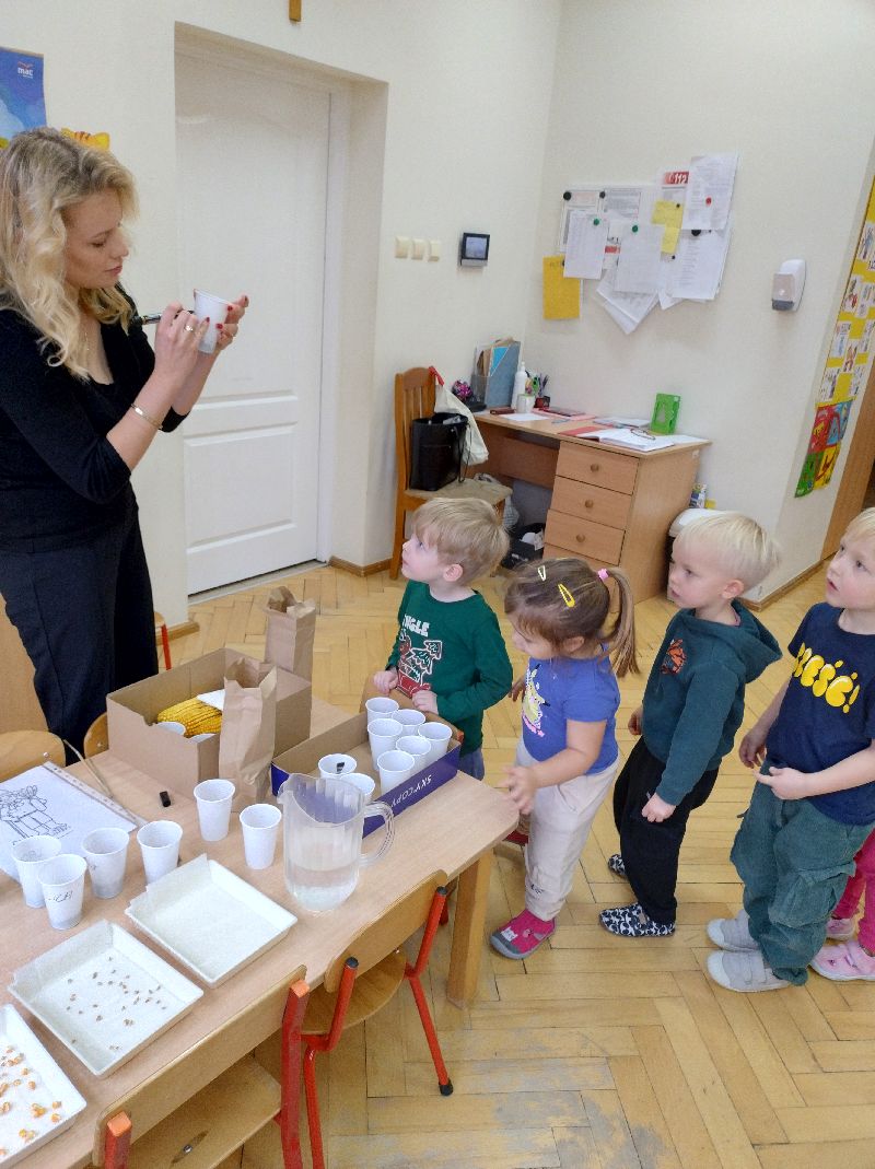 Na początku grudnia grupę Słoneczek odwiedziła mama naszego przedszkolnego kolegi, by opowiedzieć o swoim zawodzie. Spotkanie było niezwykle ciekawe. Mama Szymona zajmuje się w pracy hodowlą roślin rolniczych i w przystępny sposób opowiedziała dzieciom o specyfice swojej pracy. Przywiozła również ze sobą nasiona siewne i tacki, na których dzieci wysiały kukurydzę i pszenicę. Po wysianiu nasionka zostały podlane i ustawione tak, by docierało do nich światło słoneczne. Podczas zajęć dzieci obserwowały też chomika, zwierzątko domowe, które żywi się nasionami. Było to dla dzieci wartościowe doświadczenie, wzbogacające ich wiedzę o świecie różnych zawodów. Spotkanie zakończyło się podziękowaniami i wspólnym zdjęciem.