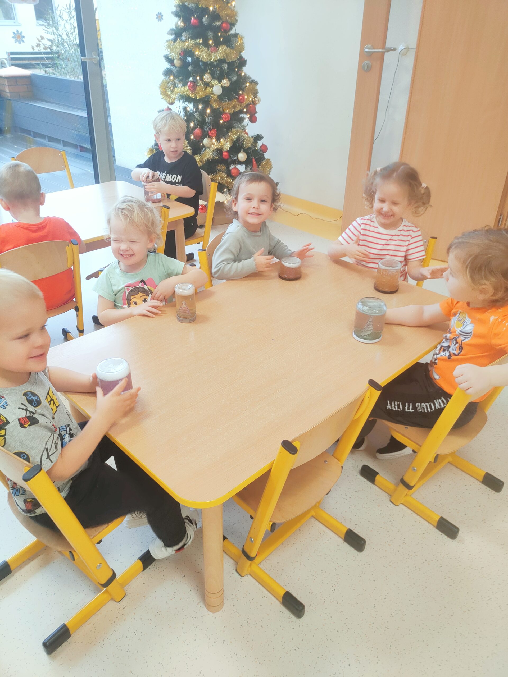 Dzieci z grupy Kotki z wielkim zaangażowaniem i radością wykonały kule śnieżne, rozwijając swoją kreatywność i sprawność manualną. Zabawa dostarczyła im wielu uśmiechów i zimowej atmosfery ❄️😊