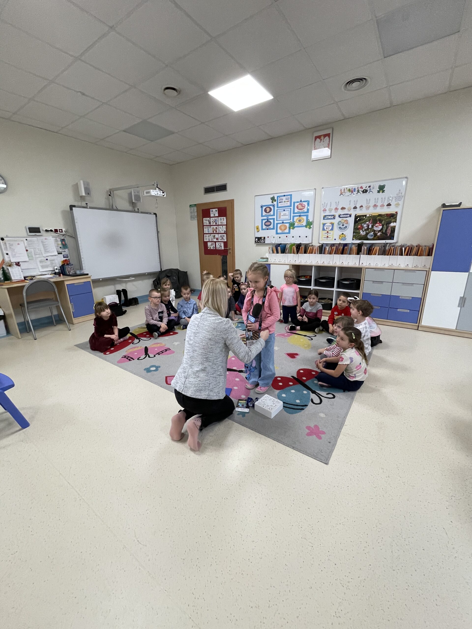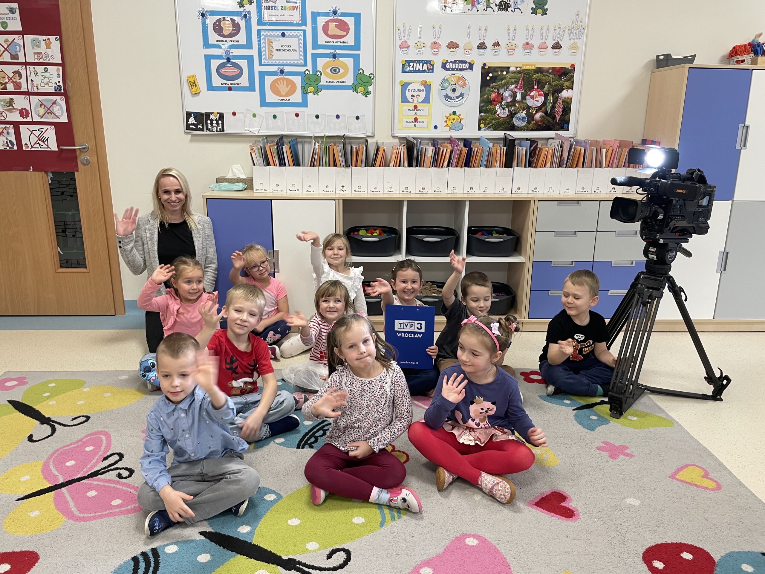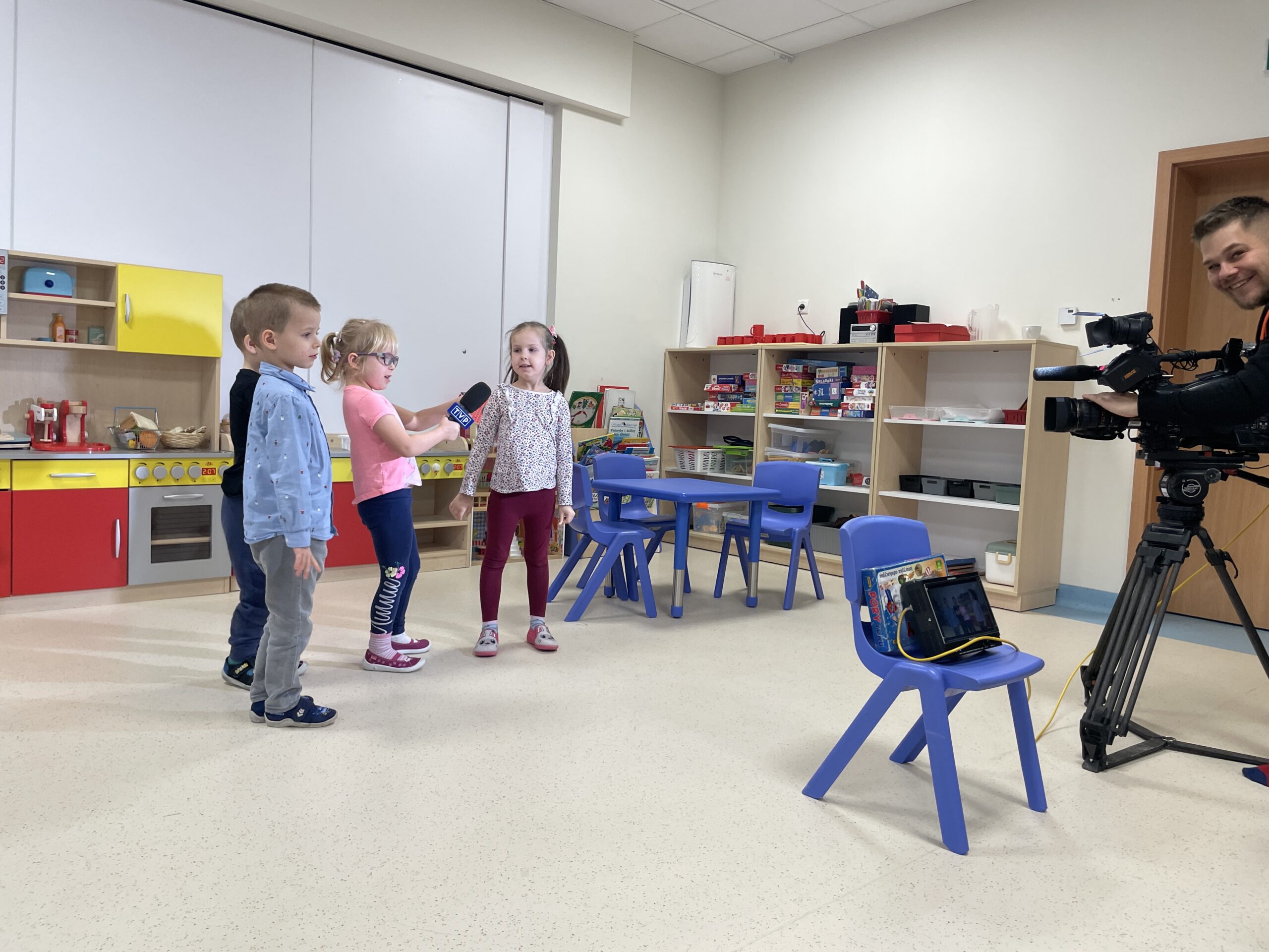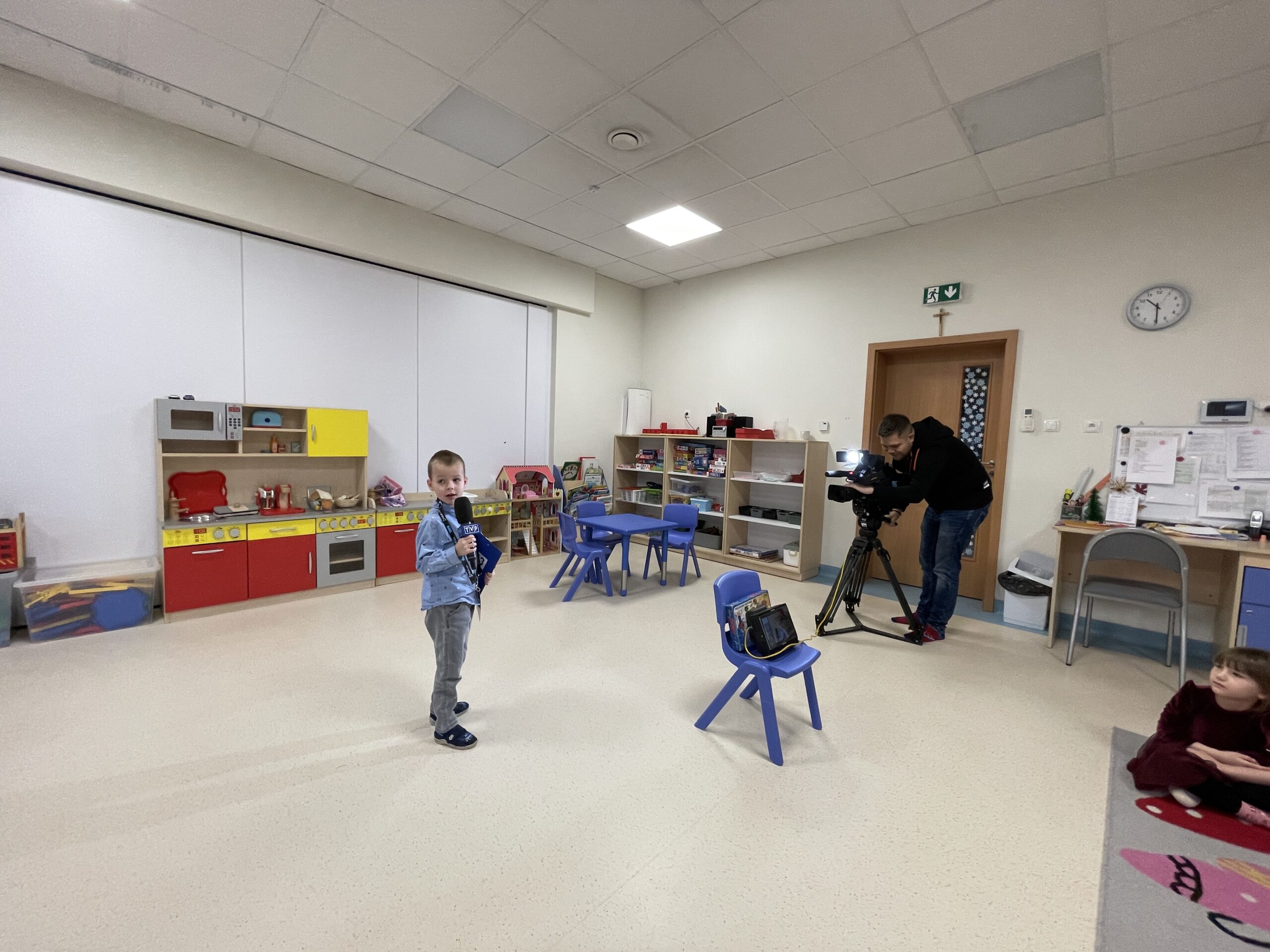 W ramach realizacji preorientacji zawodowej, 22 grudnia, gościliśmy mamę Radzika z grupy „Żabki”. Dzieci miały okazję poznać zawód dziennikarza, co okazało się świetną przygodą pełną pozytywnych emocji. Przedszkolaki zobaczyły profesjonalną kamerę oraz mikrofon, a także mogły wcielić się w rolę dziennikarzy, udzielając wywiadów. Następnie z dużym zainteresowaniem oglądały nagrany materiał. Dzięki temu miały możliwość zobaczyć świat medialny „od kuchni” oraz dowiedzieć się, jak powstaje materiał, który później można oglądać w telewizji. Był to ciekawie i wartościowo spędzony czas, rozwijający ciekawość świata oraz zainteresowanie tym, co dzieje się wokół nas.