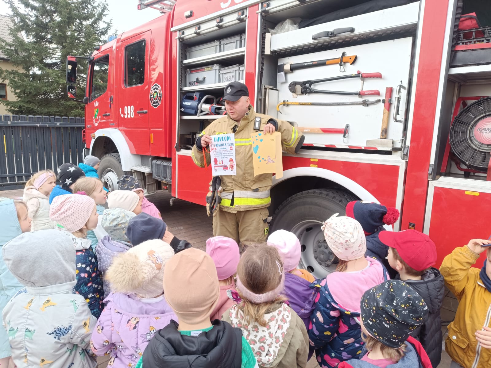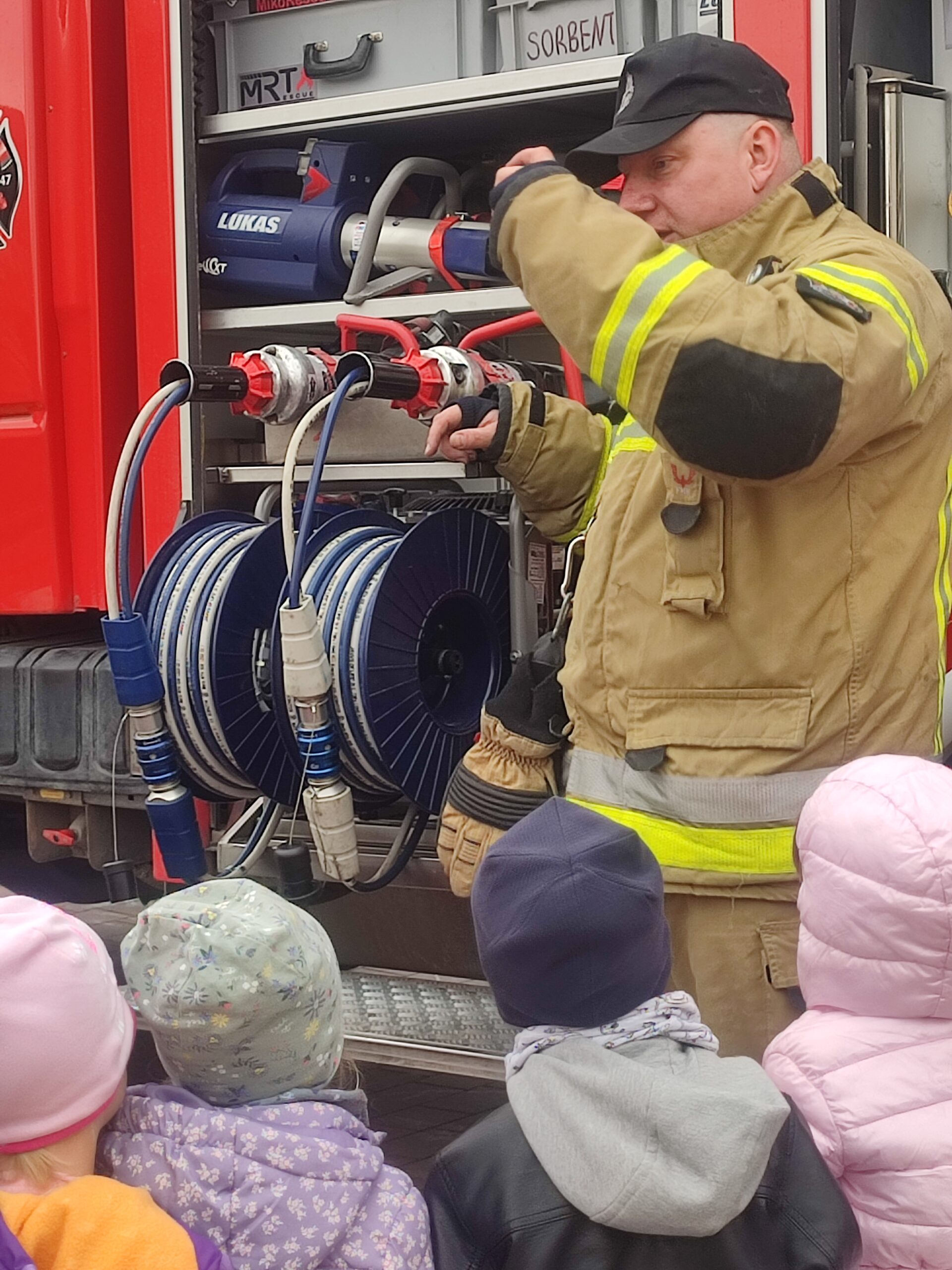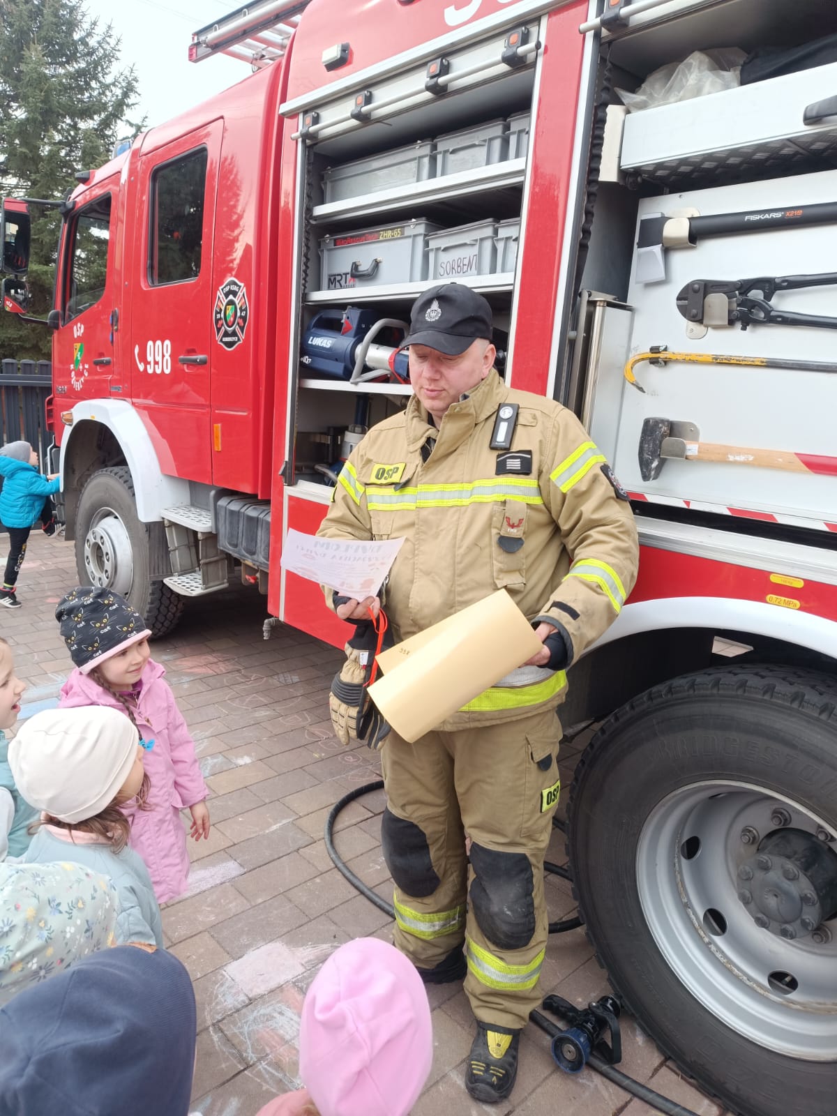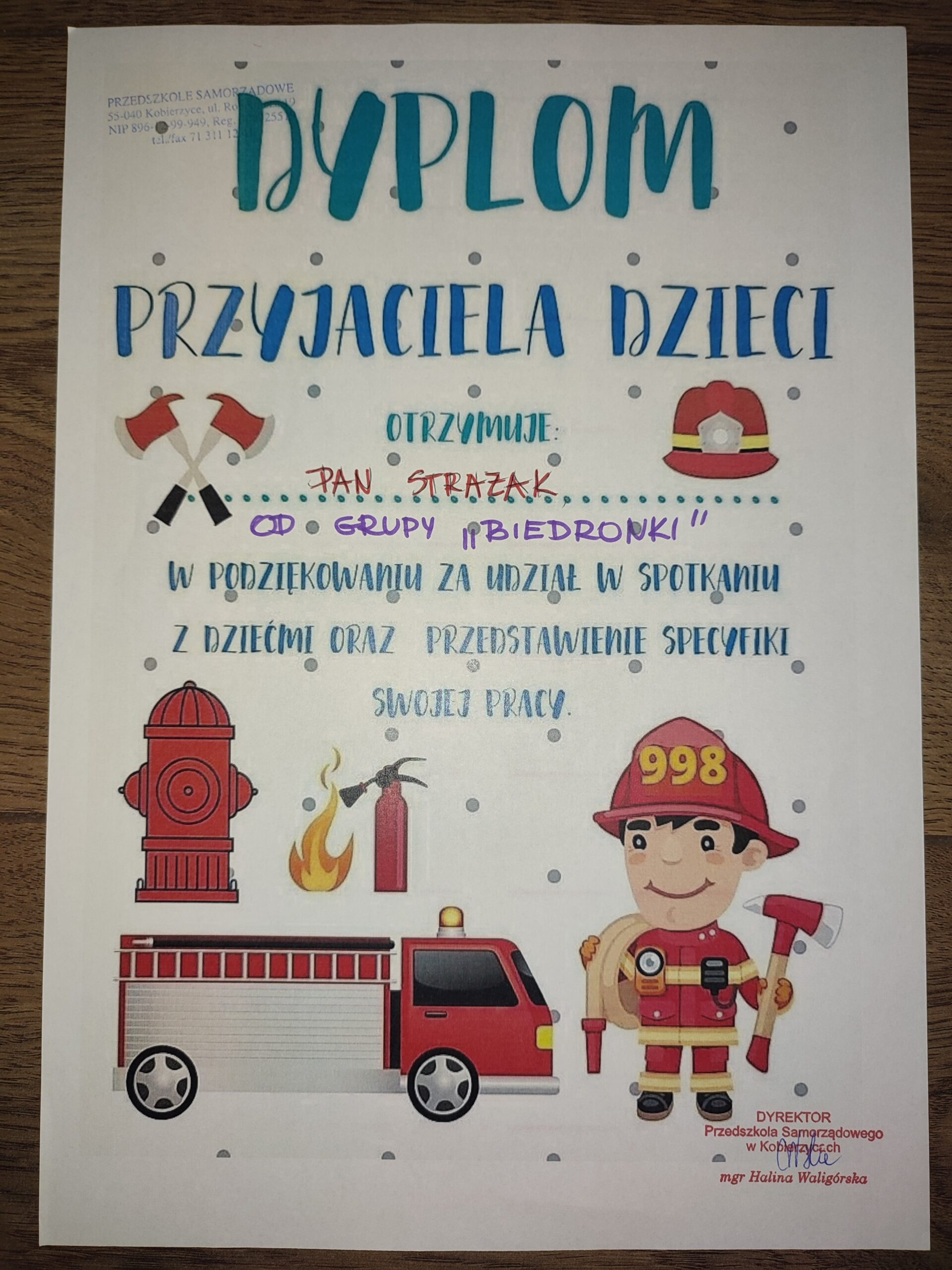 Biedronki z grupy 4 uczestniczyły w spotkaniu ze Strażakiem. Dowiedziały się jakie sekretne akcesoria ukrywa wóz strażacki oraz do czego one służą.Uzyskały również odpowiedzi na pytania, które zadały Panu Strażakowi. W podziękowaniu za wizytę wręczyły podziękowanie.