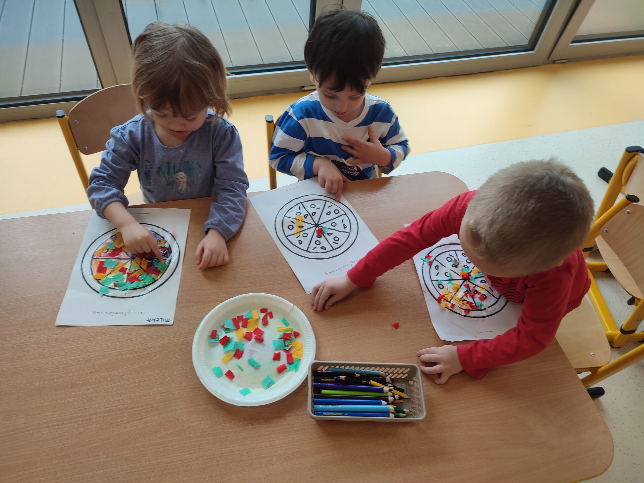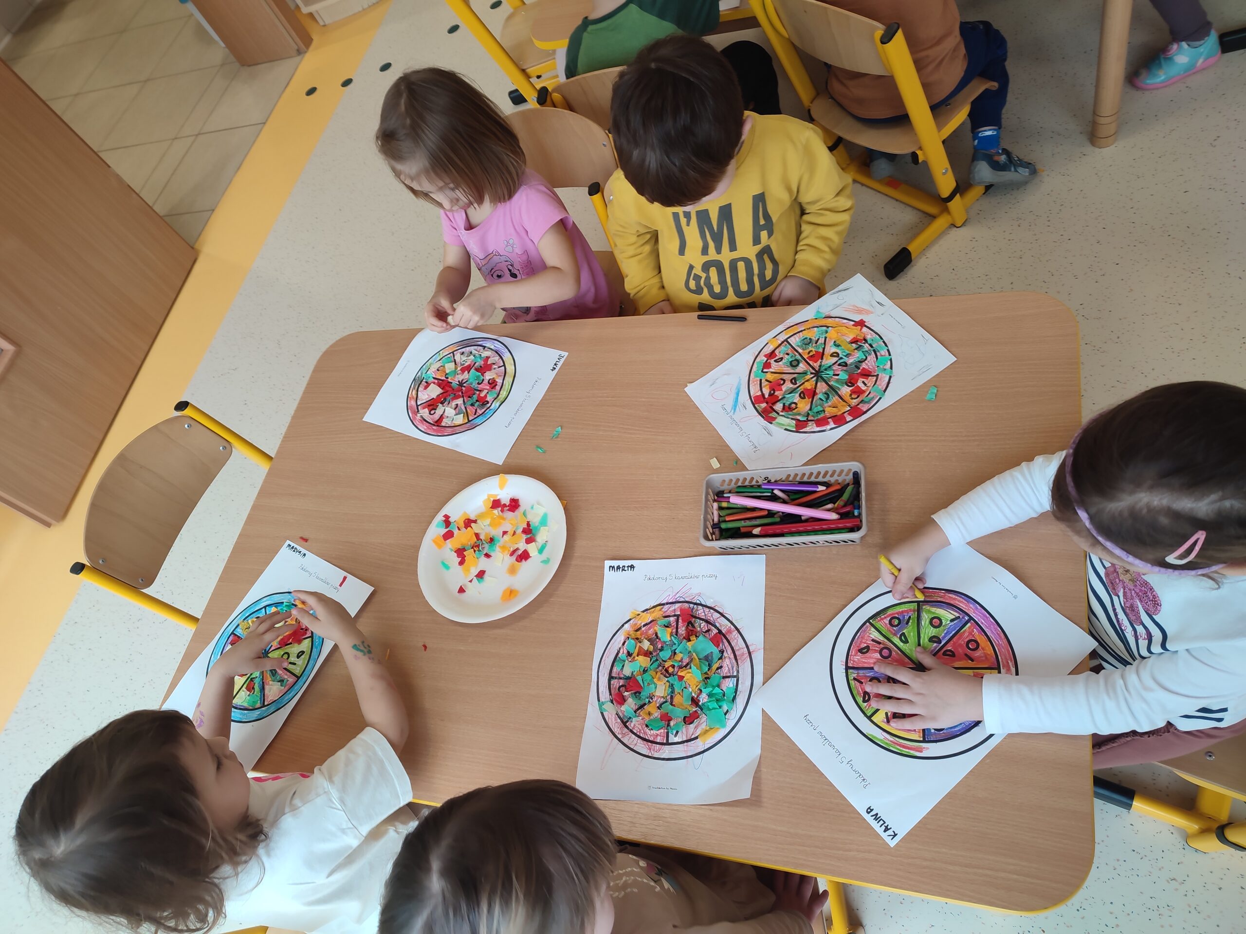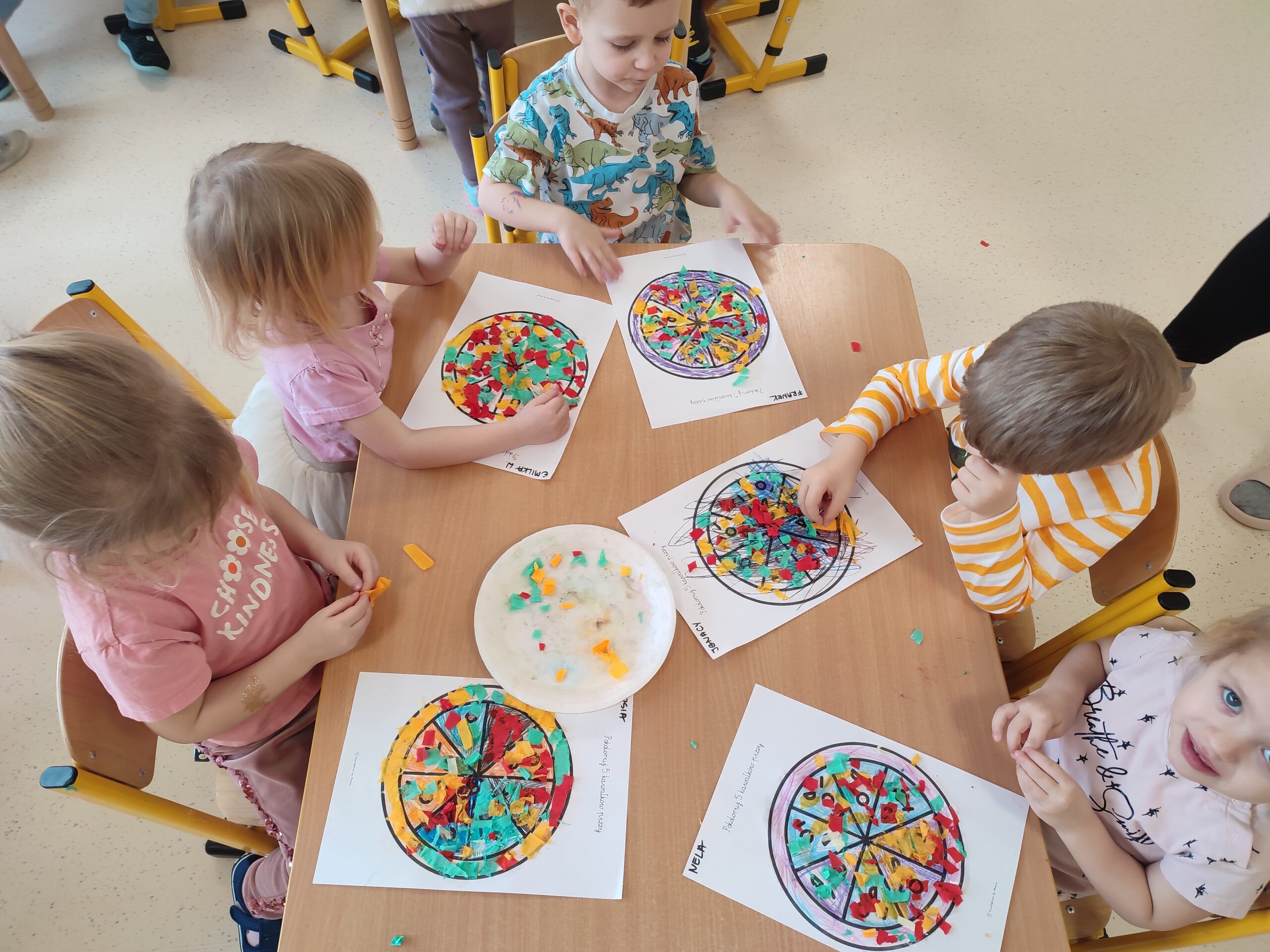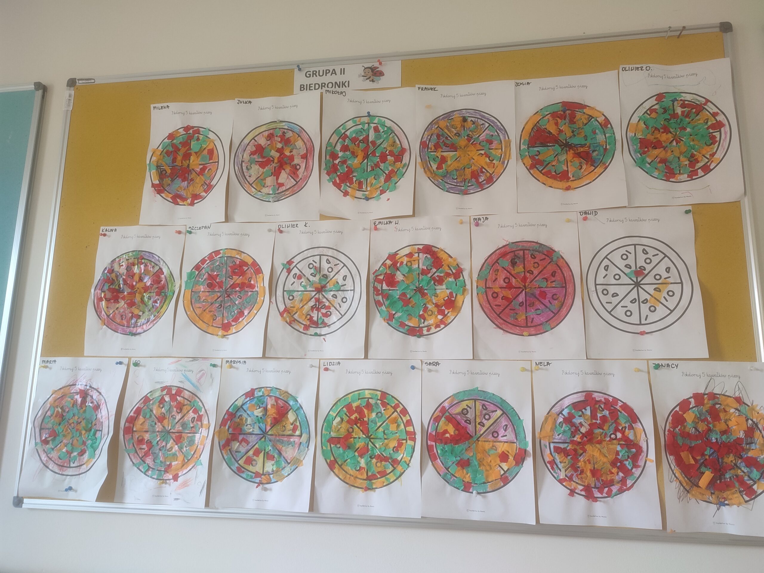 Dzieci poznały historię pochodzenia pizzy. Rozwijały umiejętności manualne poprzez tworzenie papierowej pizzy. Zapoznały się z różnymi składnikami używanych do przygotowania pizzy. Rozwijały umiejętności współpracy i pracy zespołowej.