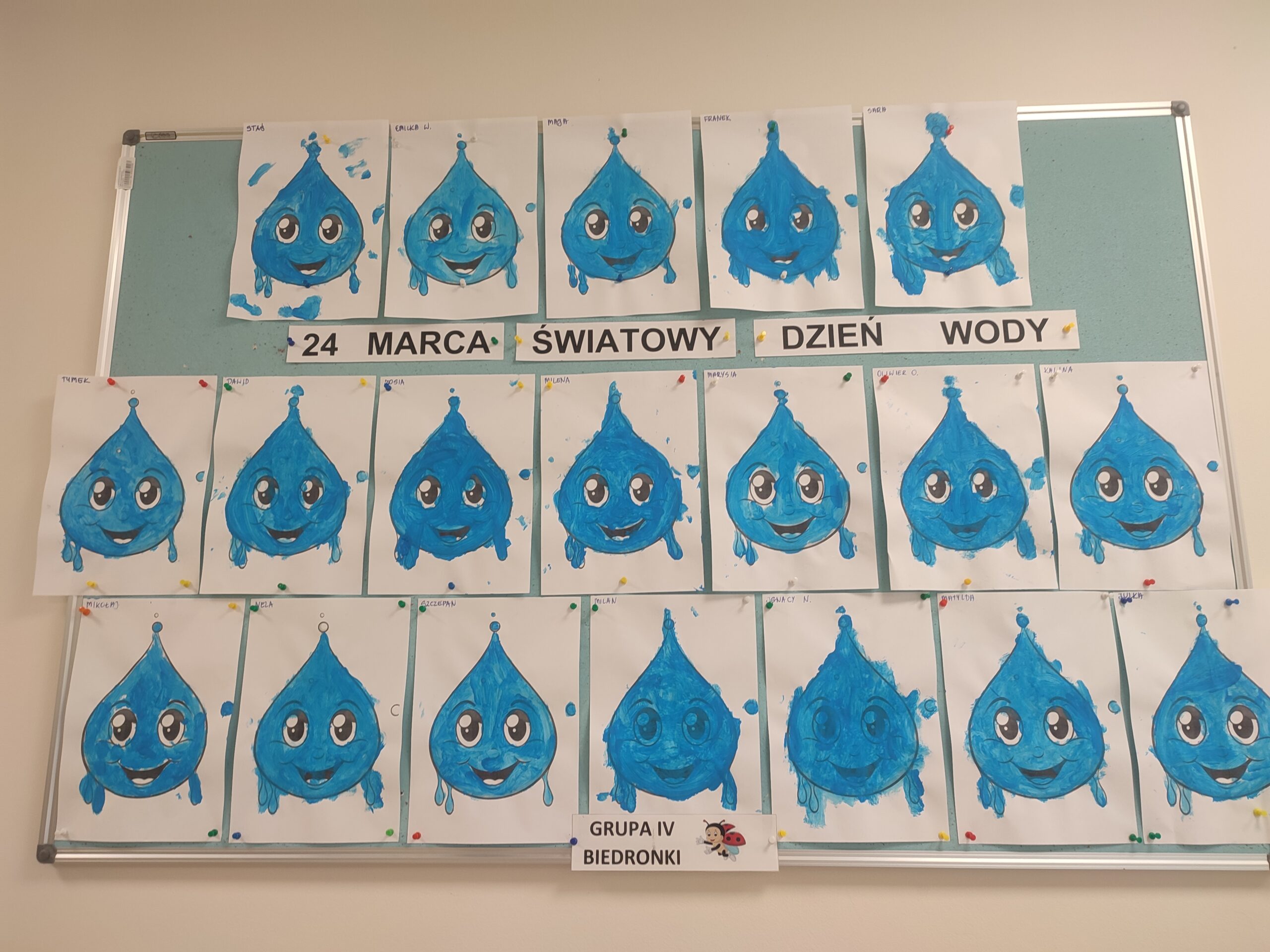 Światowy dzień wody Post published:15 kwietnia, 2025 Post category:Wydarzenia Grupa VI - Biedronki 24 Marca obchodziliśmy ,, Światowy dzień wody ” Dzieci poznały rolę i znaczenie wody w życiu człowieka. Wykonały piękne prace w postaci ,,kropli wody” i poznały jak cennym darem dla życia jest woda.