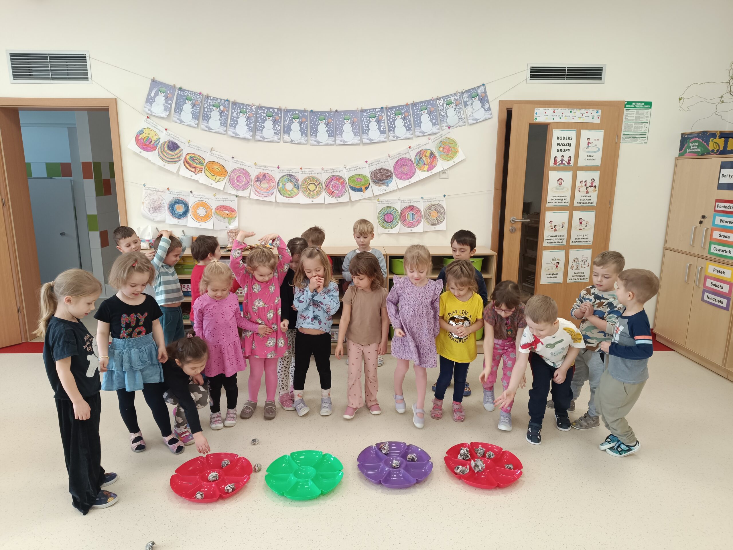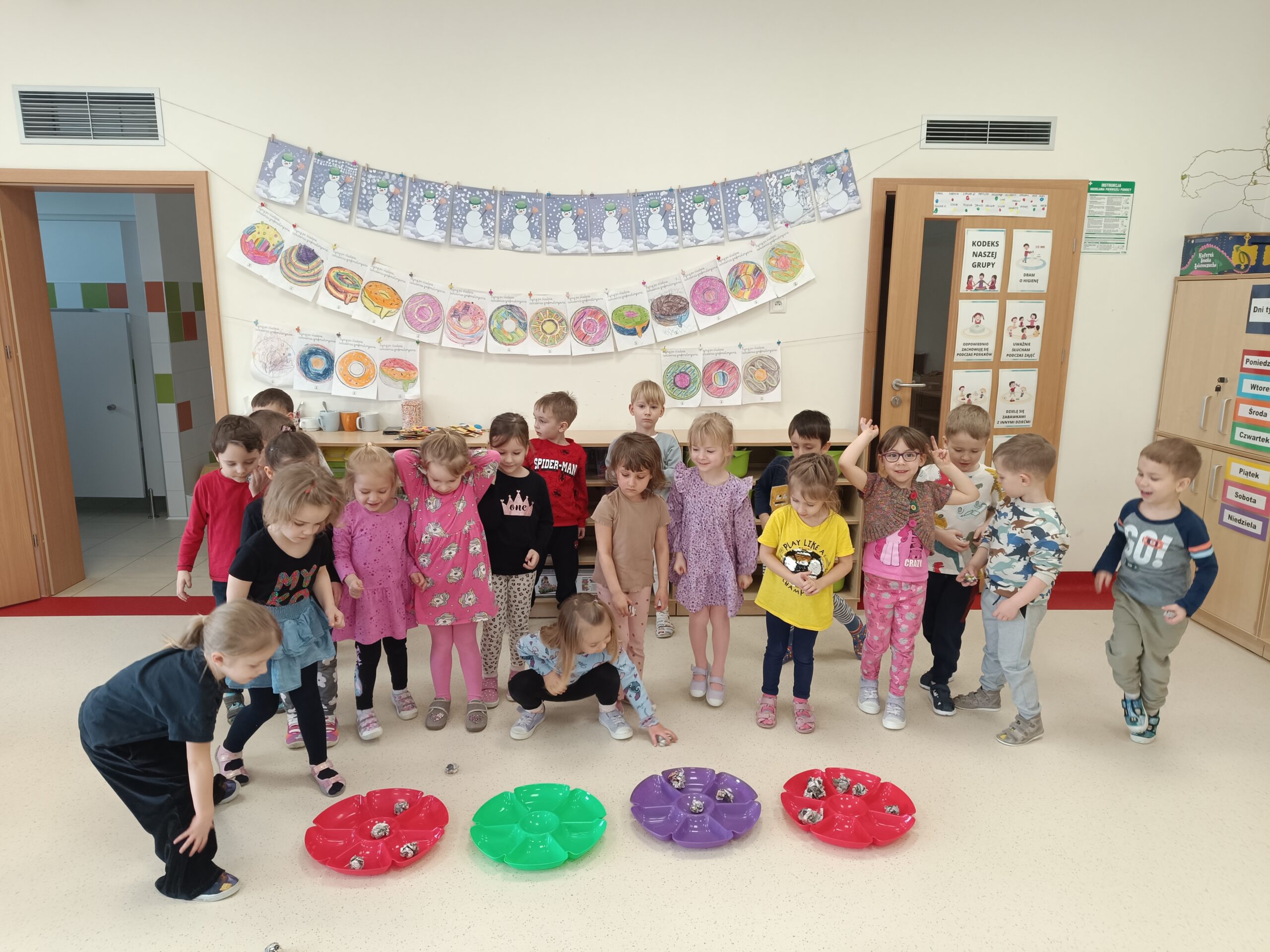 26 lutego dzieci z naszej grupy poznały tradycję oraz historię Tłustego czwartku i jedzenia w tym dniu pączków. Były zabawy zręcznościowe, ćwiczenia grafomotoryczne i eksperyment z jajkiem. A na podwieczorek degustacja słodkich pączków.