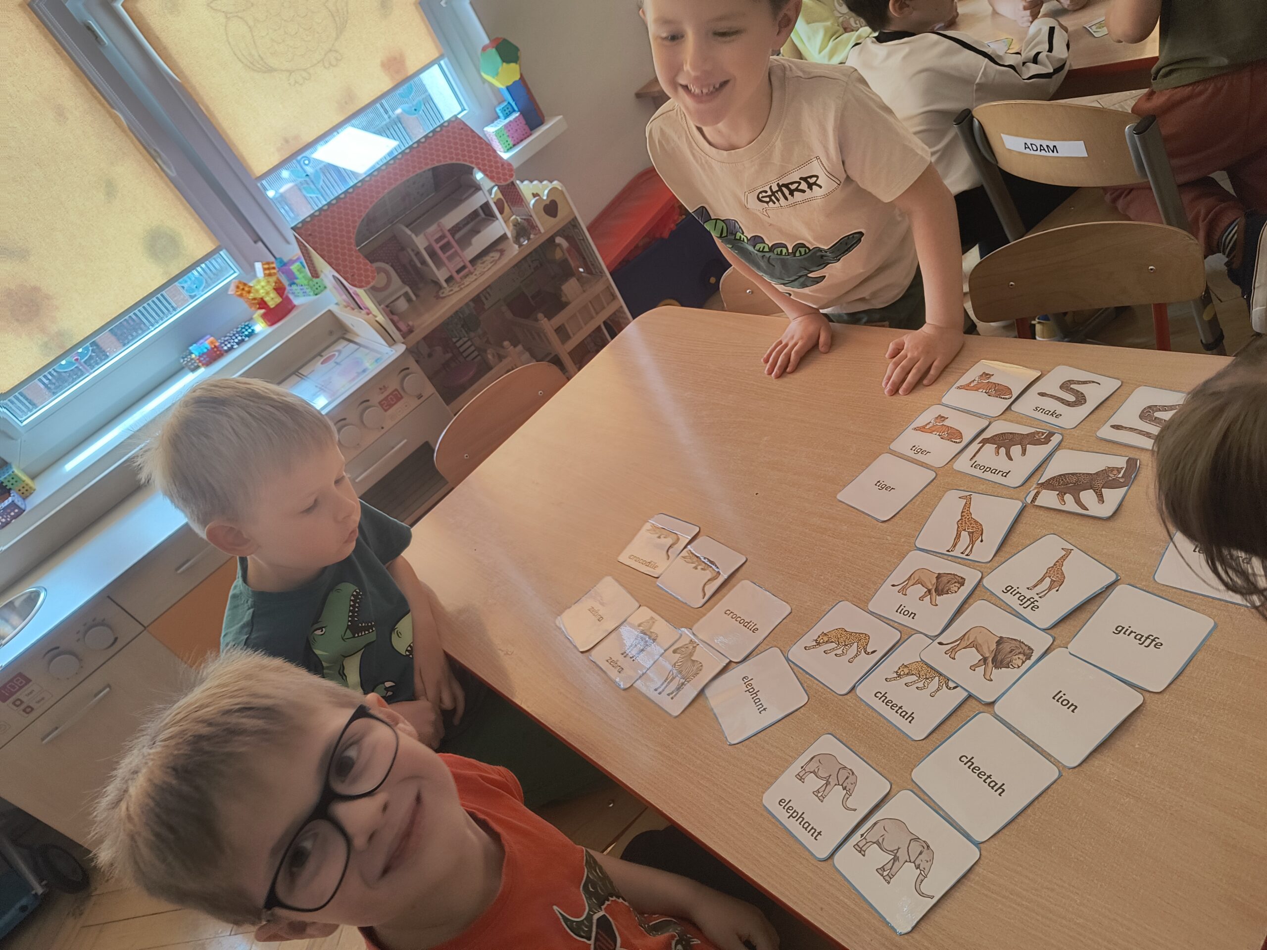 Dzieci poznały mieszkańców dżungli, sawanny, pustyni i lasów tropikalnych – od majestatycznych lwów, przez kolorowe papugi, aż po sprytne małpki i ogromne słonie. Było dużo zabawy, nauki, oglądania zdjęć, filmików i tworzenia prac plastycznych inspirowanych światem przyrody. Jagódki z wielkim zainteresowaniem słuchały ciekawostek i chętnie dzieliły się własnymi spostrzeżeniami. To był tydzień pełen emocji, odkryć i radosnych rozmów o zwierzakach z najdalszych zakątków świata!
