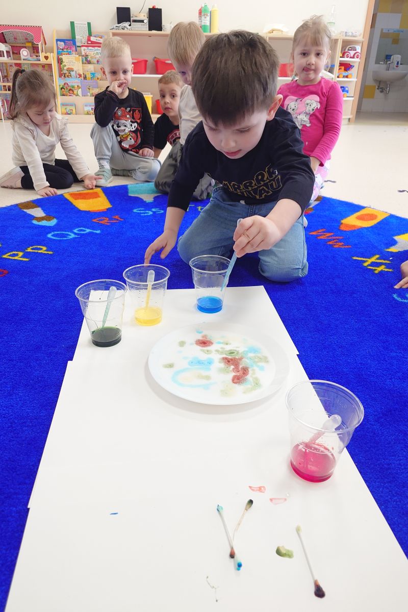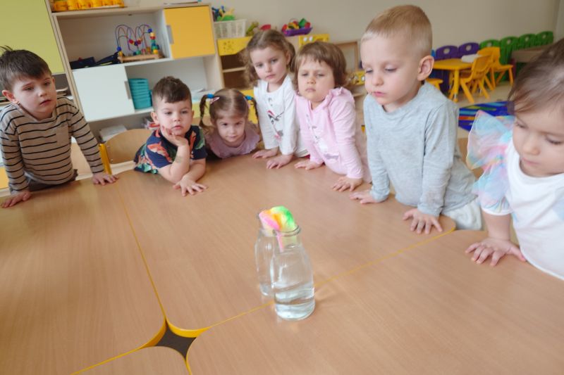 W grupie ,,Pszczółki” odbył się ciekawy tydzień poświęcony zajęciom badawczym. Eksperymenty to zawsze wielka naukowa przygoda dla przedszkolaków. Ich wpływ na rozwój i wychowanie dzieci jest bardzo duży, ponieważ każda zabawa tego rodzaju niesie ze sobą ładunek pozytywnych emocji, co wspiera proces uczenia się. Eksperymenty są ważne w zaspokajaniu naturalnej ciekawości przez dzieci w procesie poznawania otaczającego świata. Tego typu zabawy pozwalają na doświadczanie nowych wrażeń, odkrywanie nieznanych dotychczas właściwości przedmiotów i zjawisk, prowadzenie obserwacji oraz wyciąganie trafnych wniosków.