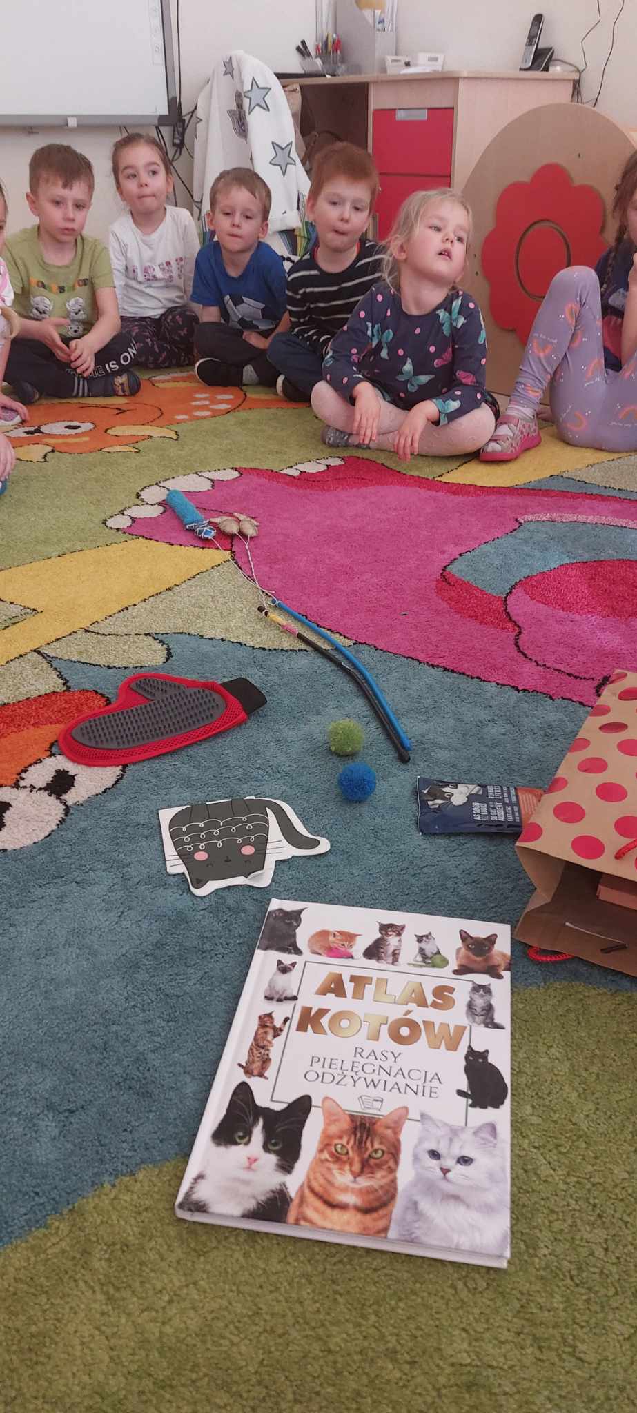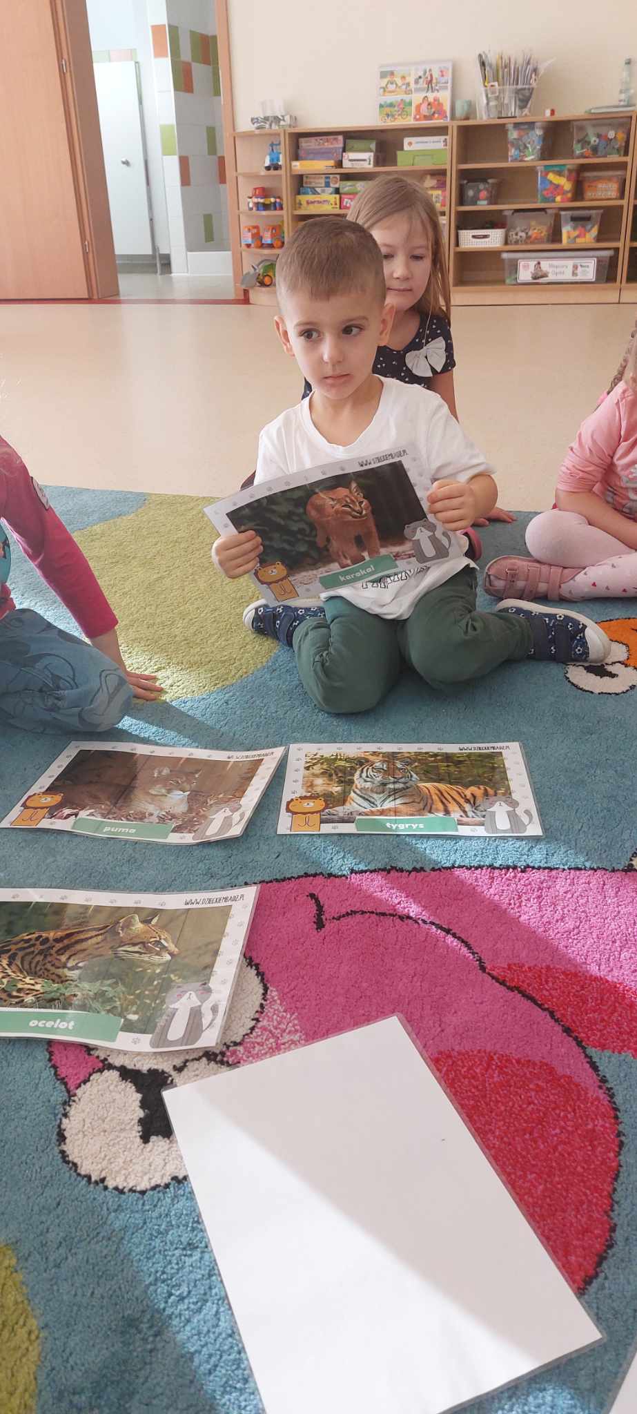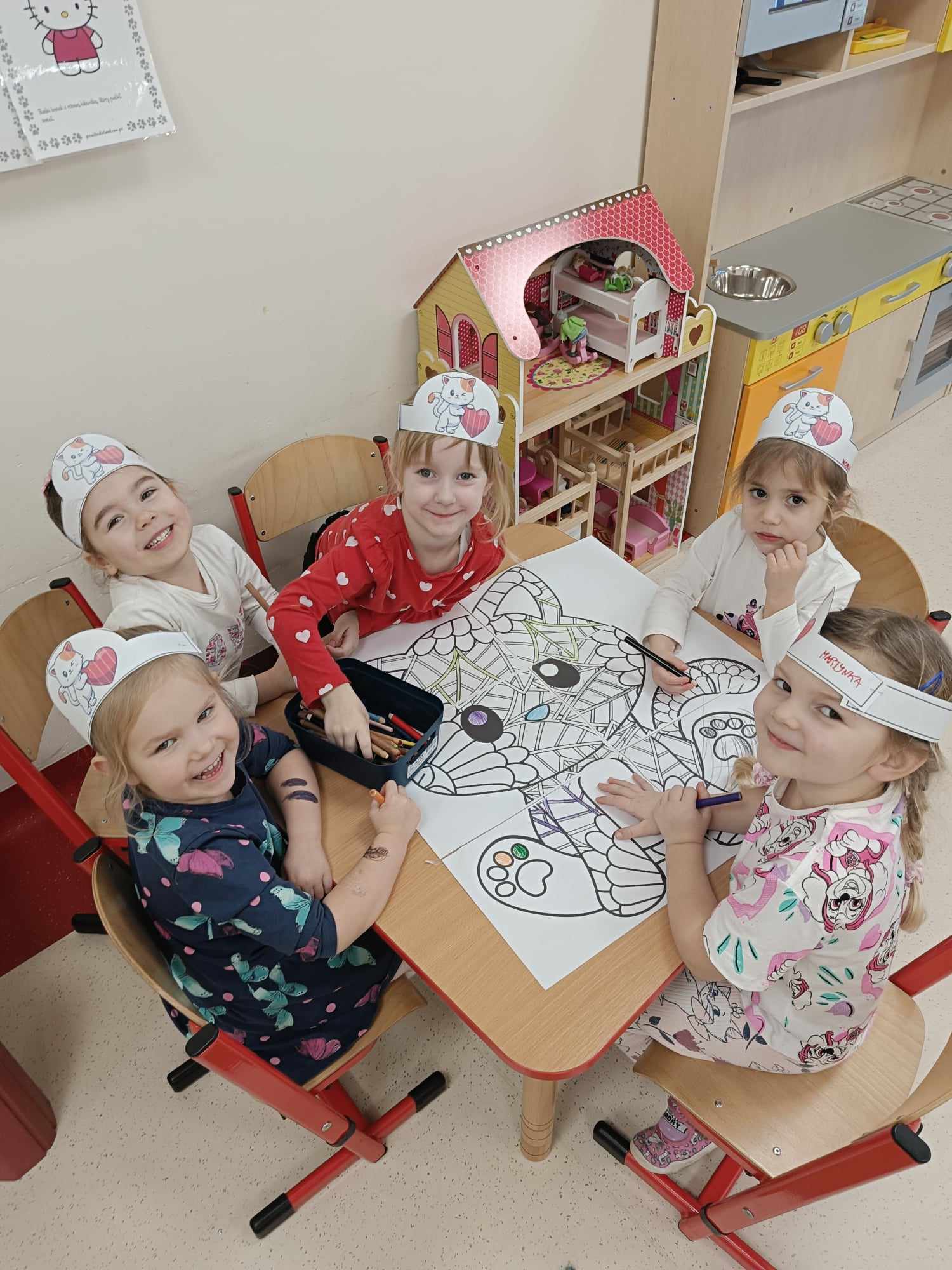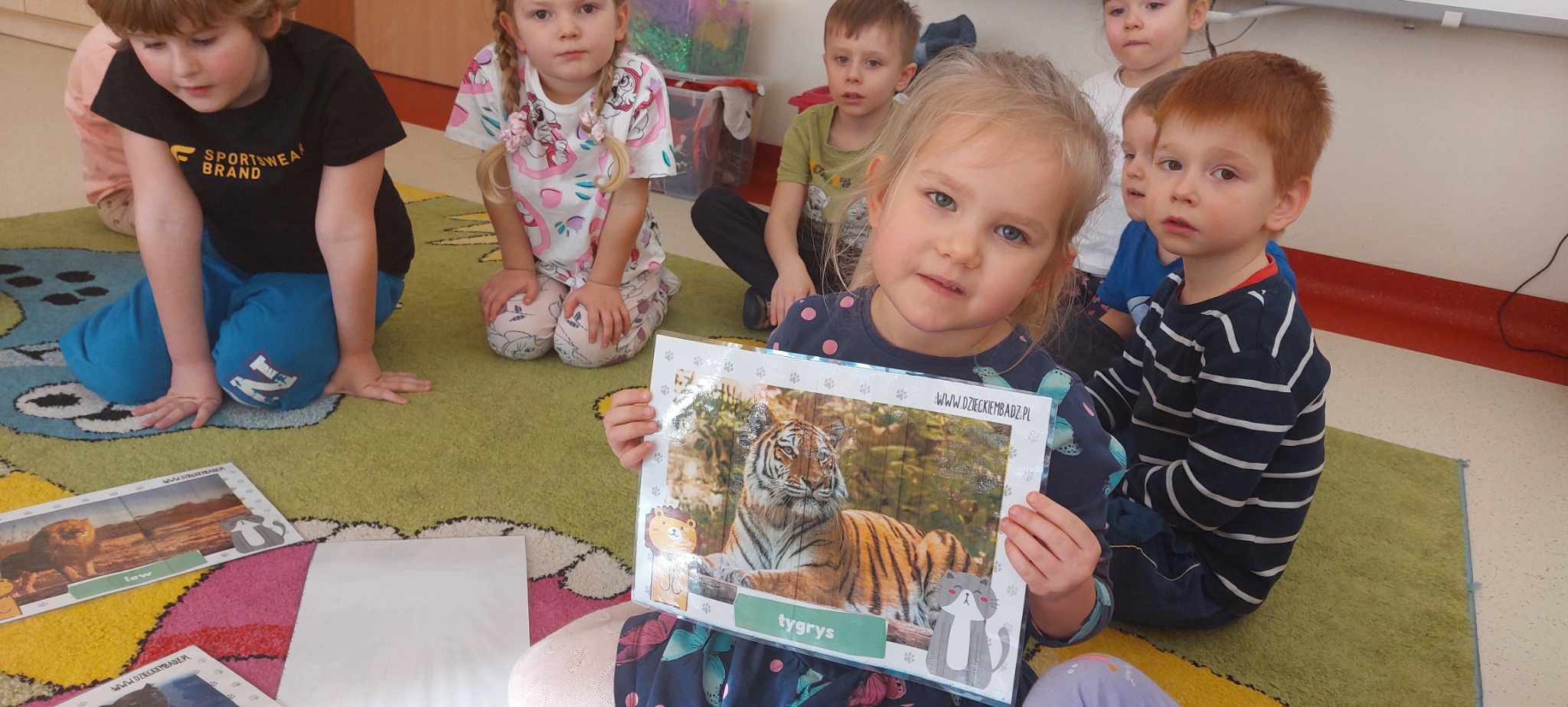 Z związku z obchodami „Dnia Kota” -Tygryski obchodziły swoje święto bardzo intensywnie. Dzieci odgadywały znane podobizny kotów z bajek i książek oraz poznawały gatunki dzikich kotów. Dzieci w grupach stworzyły ogromne podobizny kotów, a dziewczynki wspólnie pokolorowały olbrzymią kocią kolorowankę. Dzięki ,, Wielkiej Księdze Kotów” Tygryski dowiedziały się wszystkiego o futrzakach- poznały rasy kotów domowych oraz dowiedziały się co lubią robić najbardziej.