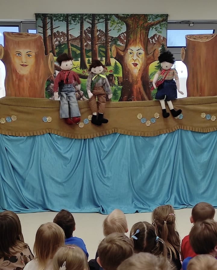 19.02. odwiedził nas Teatr Lalek Pinokio z przedstawieniem „Zaczarowany Las”. Tygryski wraz z dziećmi z innych grup z zaciekawieniem oglądały przedstawienie. Teatrzyki rozbudzają u dzieci zainteresowania kulturą i sztuką, pozwalają z bliska zobaczyć jak działa teatr oraz uczą prawidłowego zachowania w teatrze.