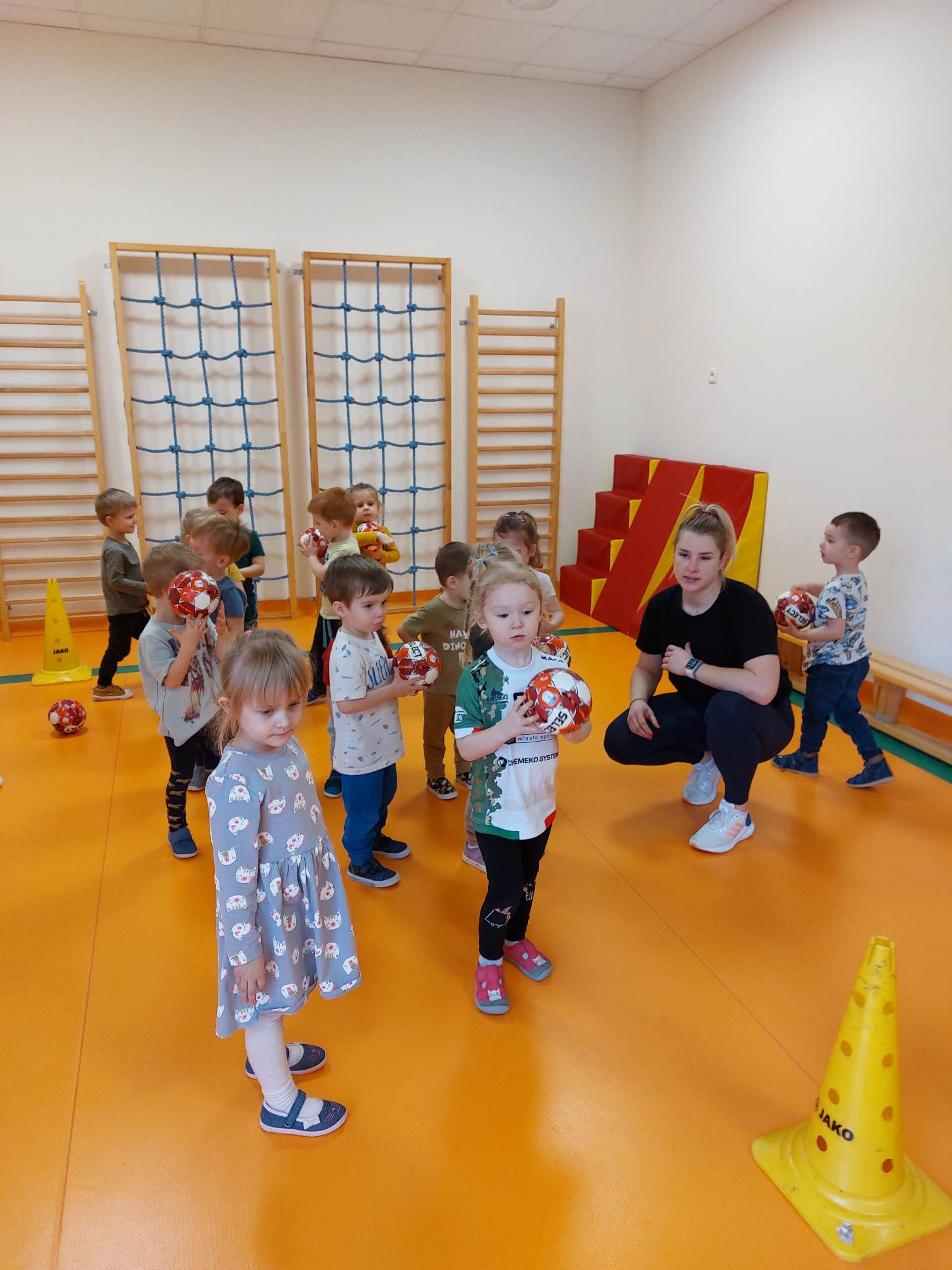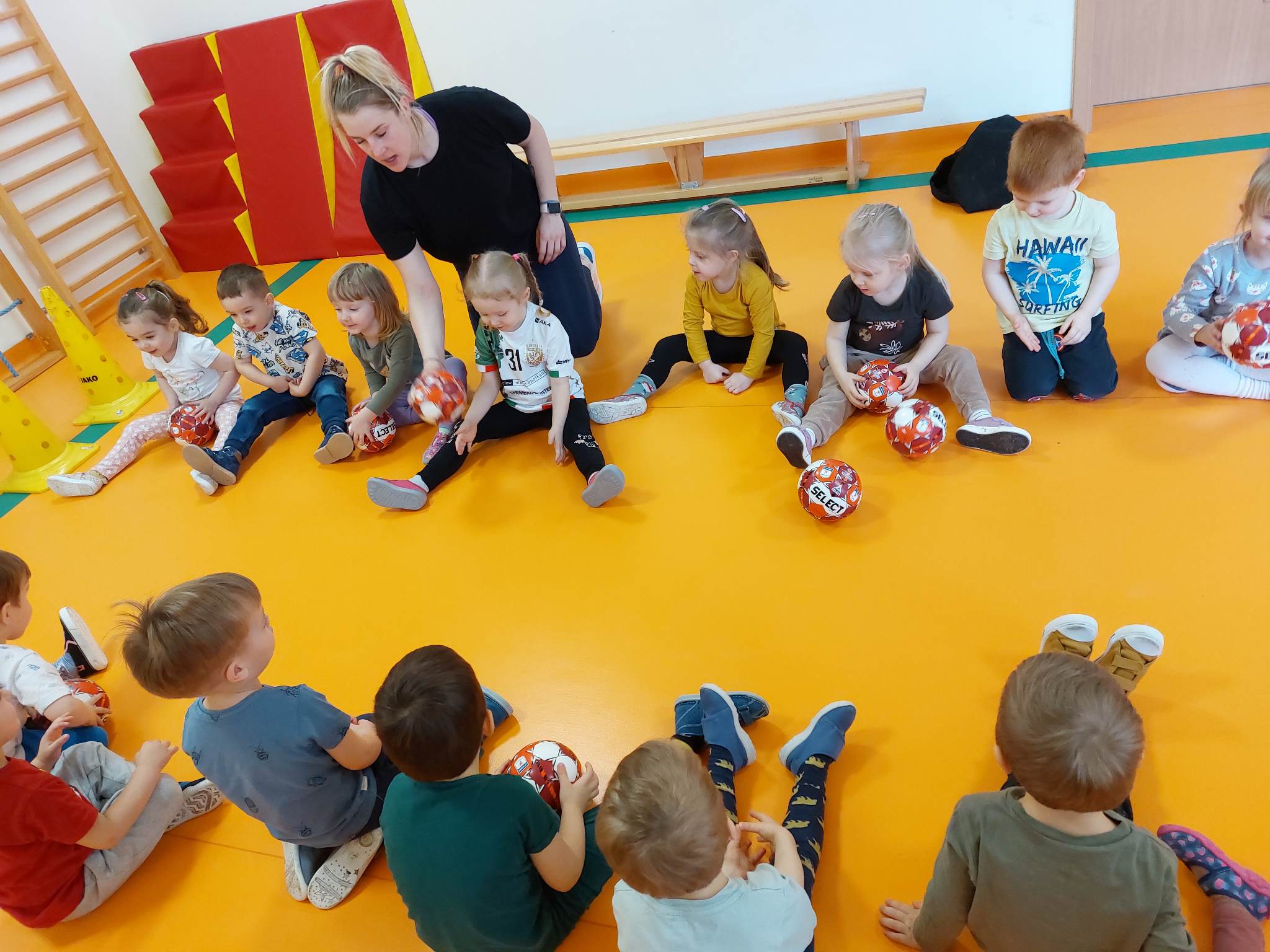 pokazała Nam tajniki gry w piłkę ręczną. Już wiemy, że piłki do tej gry są mniejsze i gra się tylko rękami :) Pani Martynka przeprowadziła
