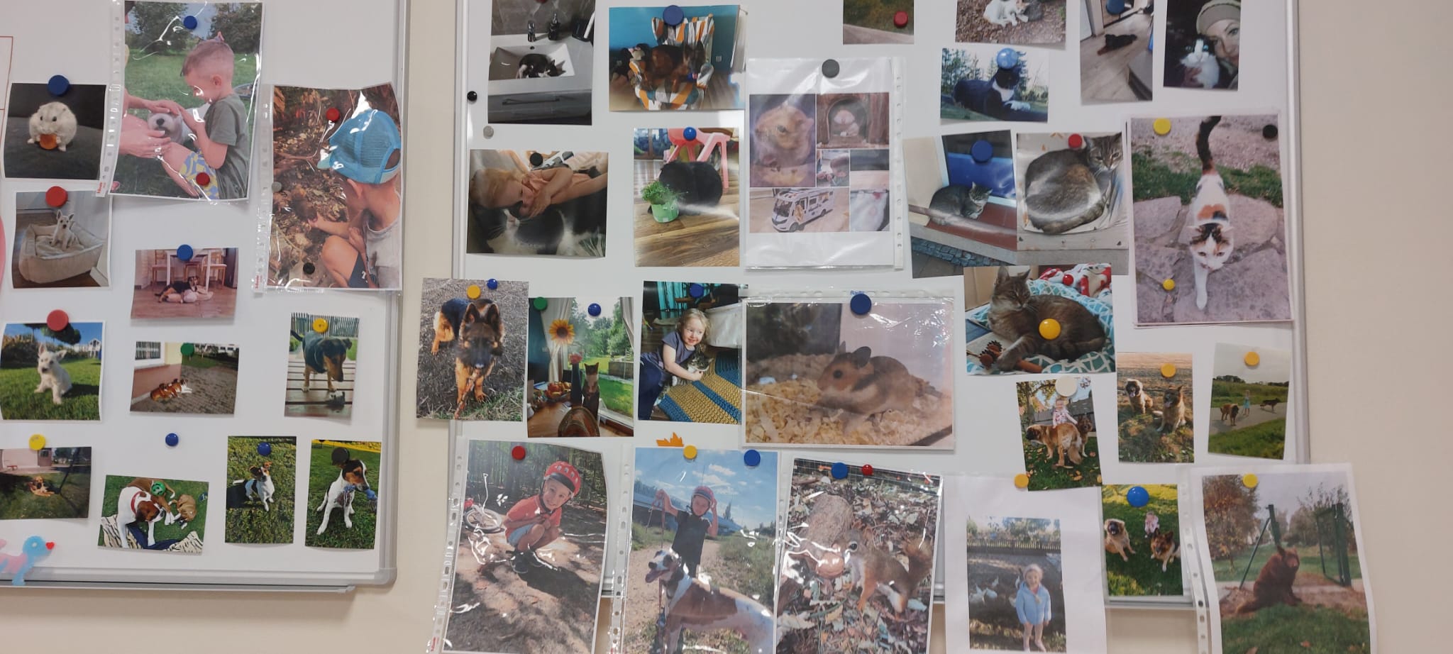 W zeszłym tygodniu Tygryski poznały zwierzęta domowe. Temat ten był doskonałą okazją do przedstawienia pupilów przedszkolaków. Dzieci przyniosły zdjęcia swoich kotków, piesków, chomików, królików i opowiadały o tym, jak dbają o swoich futrzastych podopiecznych. Zwierzęta domowe uczą dziecka odpowiedzialności i dają mnóstwo radości. Na koniec dzieci wykonały prace plastyczne.