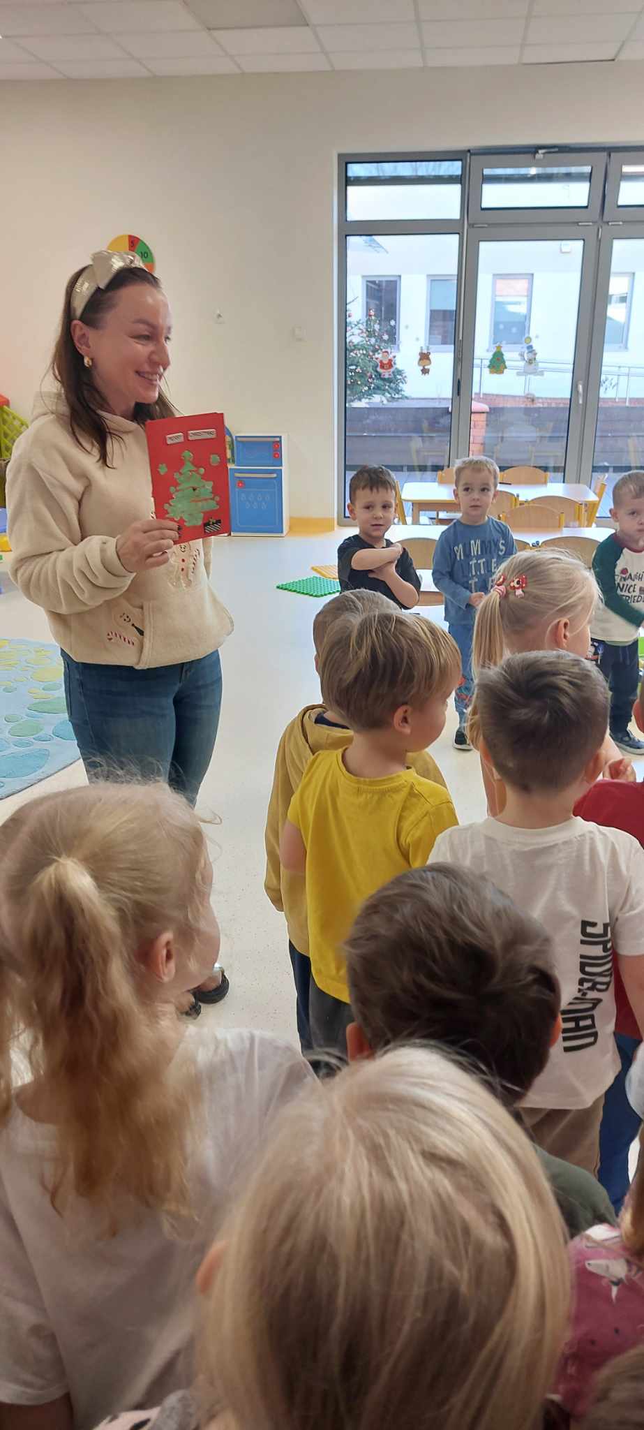 W związku ze zbliżającymi się świętami- Tygryski spełniały swoją misje 'Pomagamy bo dobre serca mamy”. Jest to idealny czas by bezinteresownie sprawić komuś przyjemność. Dzieci rozdawały własnoręcznie zrobione kartki z życzeniami świątecznymi wszystkim pracownikom przedszkola oraz mieszkańcom Kobierzyc życząc wesołych świąt:) Pamiętaliśmy m.in o Naszych Paniach kucharkach, które gotują nam pyszne obiadki, Panom konserwatorom oraz Paniach kasjerkach, które mają teraz bardzo pracowity czas! Dobro wraca:) Każdy ma coś, co może dać innym..