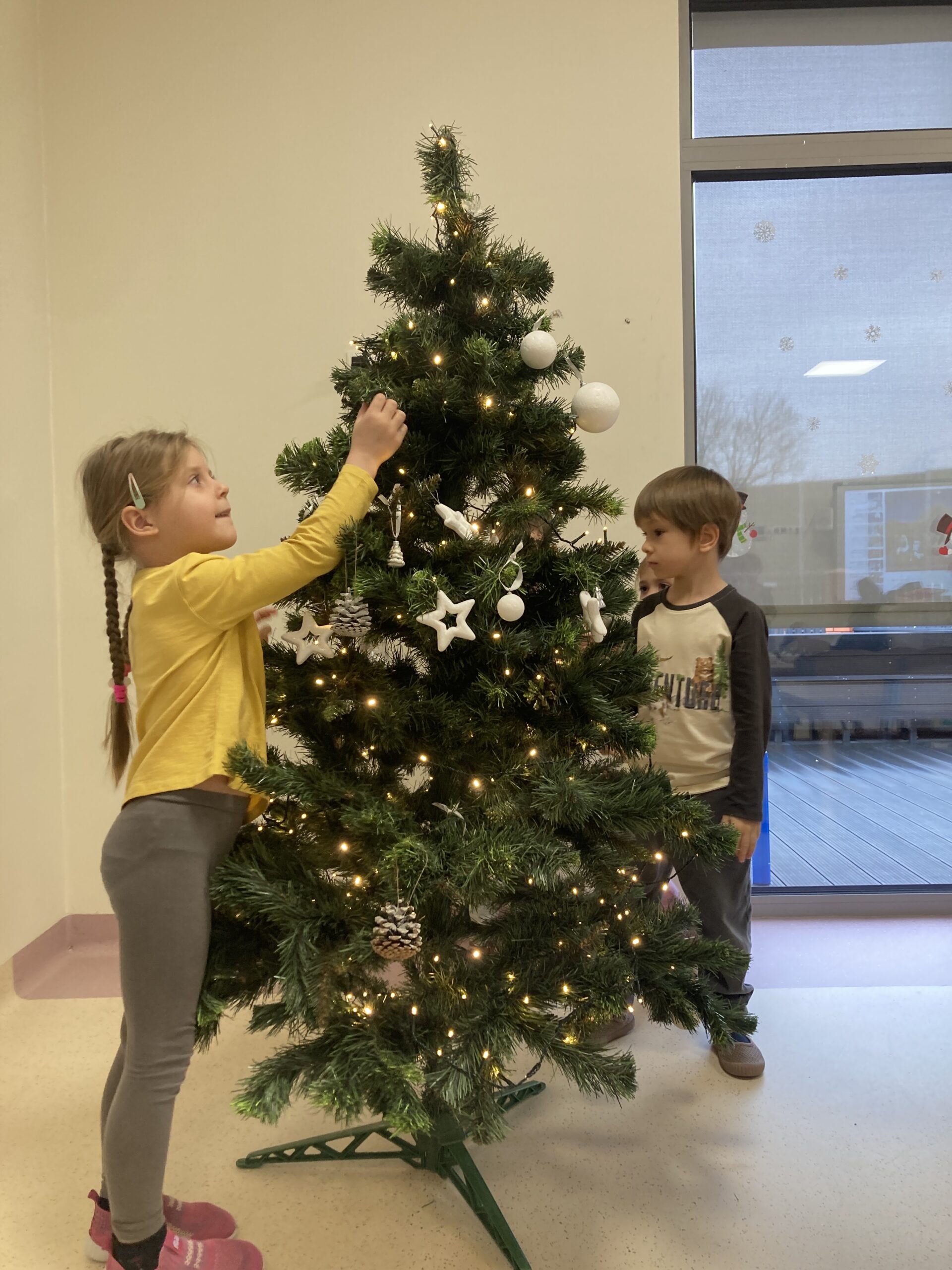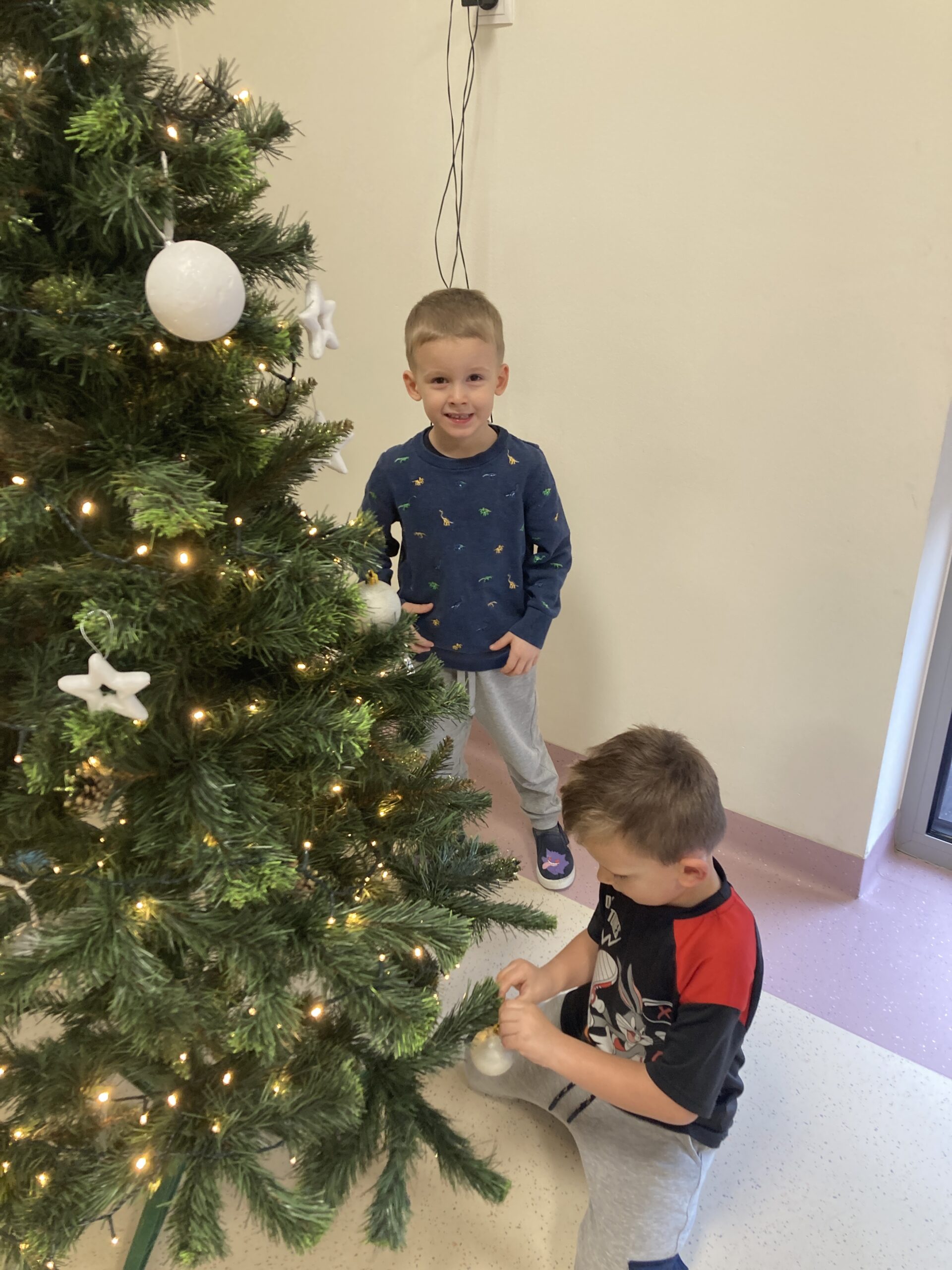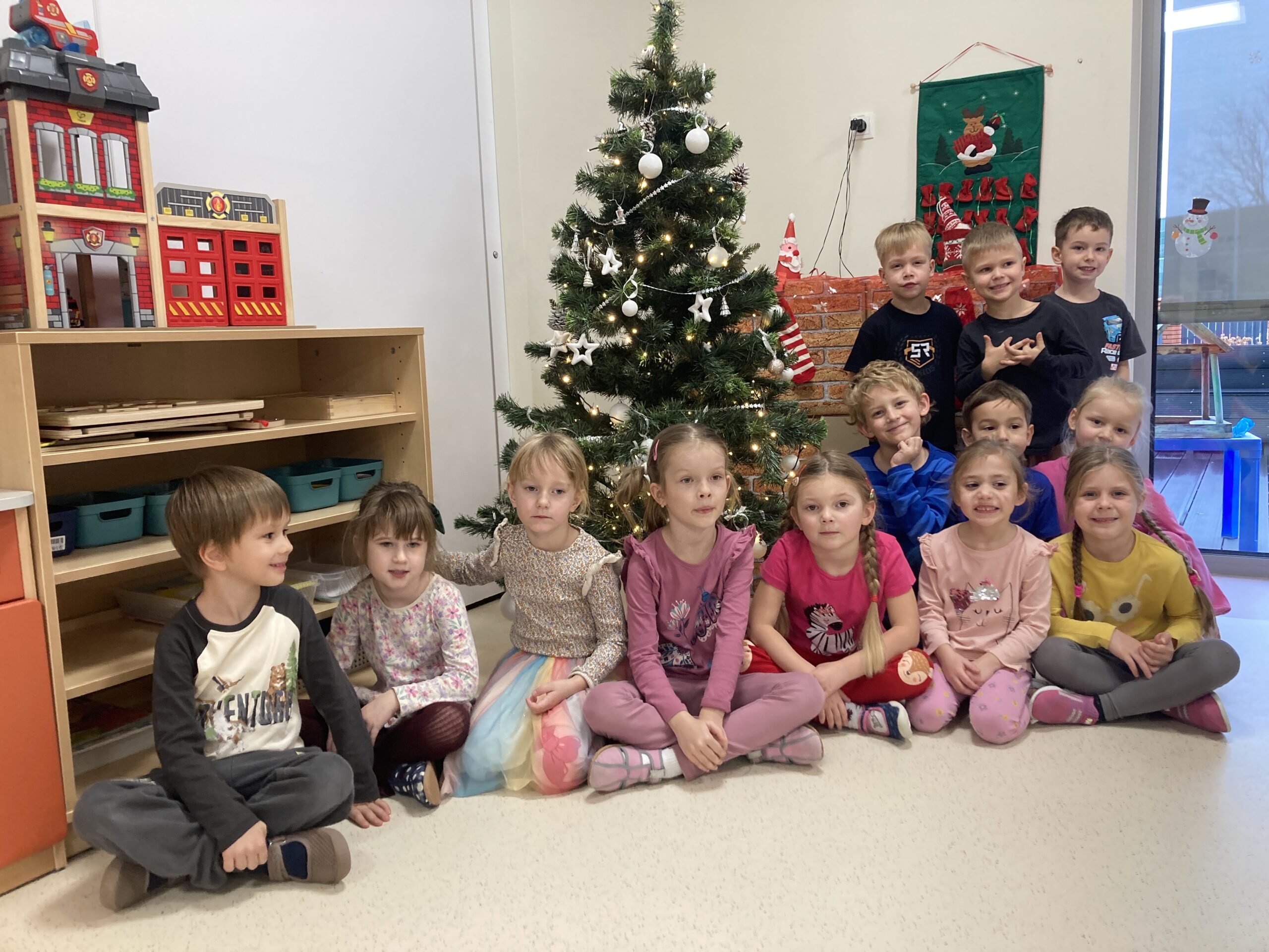 Święta Bożego Narodzenia wiążą się z tradycją ubierania choinki. Dlatego dzieci z grupy Tygryski udekorowały dziś świąteczne drzewko. Przedszkolaki z wielkim zaangażowaniem zawieszały choinkowe ozdoby: bombki, gwiazdki i łańcuchy, oraz własnoręcznie robione ozdoby. Było mnóstwo radości a w sali od razu zrobiło się świątecznie. Choinka przypomina nam, że Święta Bożego Narodzenia już tuż, tuż… Nie mogło zabraknąć również grupowego zdjęcia pod świątecznym drzewkiem.