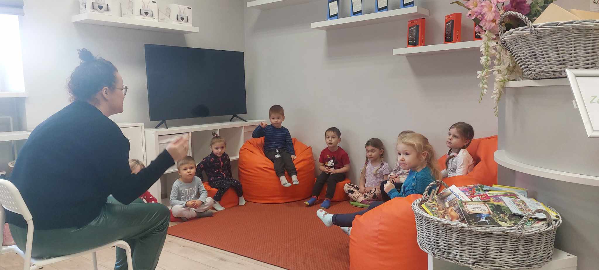 Jak myślicie, czy stary Olbrzym powinien być ponury czy poważny? Odpowiedź na to pytanie poznały dzieci z grupy ,, Tygryski” podczas zajęć bibliotecznych przeprowadzonych dnia 26.01.24. Tematem przewodnim spotkania był zbiór opowieści „Krasnal w krzywej czapce”, a dokładnie „Opowieść o najstarszym olbrzymie świata” autorstwa Wojciecha Widłaka. Po przeczytaniu bajki i przeanalizowaniu jej treści Pani Monika zaproponowała dzieciom zabawę z lusterkiem, w którym obserwowały swoją mimikę twarzy. Lusterko pomogło nam porozmawiać o emocjach, ich różnorodności i istotności. Dodatkowo zajęcia plastyczne, które towarzyszyły spotkaniu, przypomniały co poprawia nam nastrój, kiedy jesteśmy smutni.