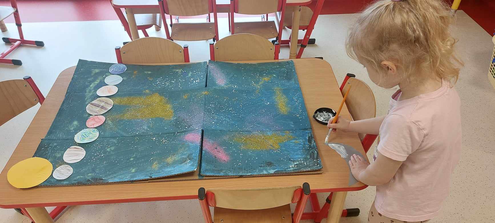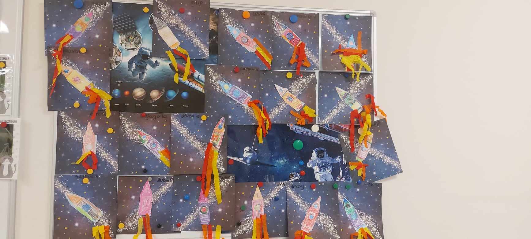 Tygryski cały tydzień latały w przestworzach kosmosu.. Dzieci poznały Układ Słoneczny oraz wchodzące w jego skład planety i gwiazdy. Tygryski dowiedziały się kim jest astronauta oraz czym jest grawitacja. Na zajęciach tworzyliśmy rakiety z figur geometrycznych, kolorowaliśmy rakiety, malowaliśmy galaktykę. Dzieci wcielały się w role wirujących planet wokół słońca poznając przy tym ich cechy i właściwości. Jedna zagadka niestety nadal nie daje nam jednak spokoju..- ,,Czy na innych planetach żyją ufoludki?” 🙂