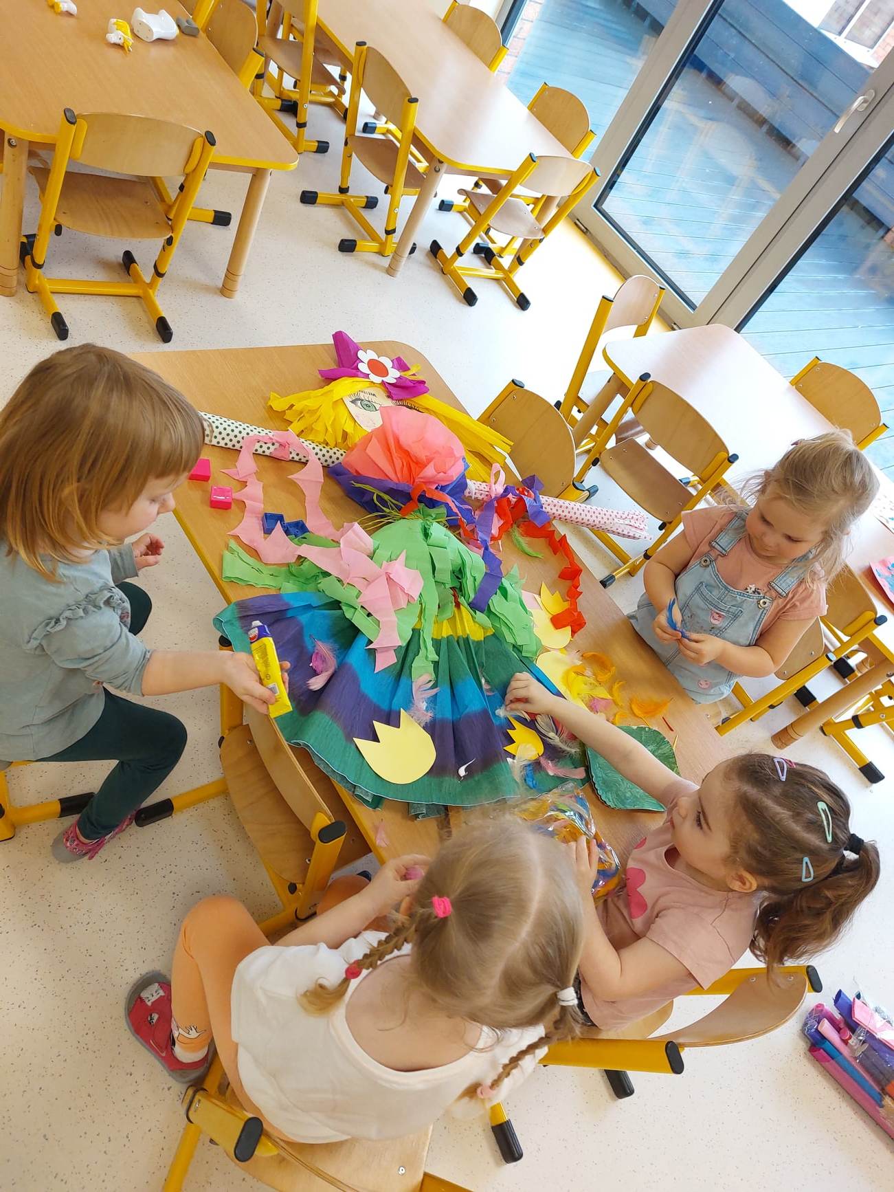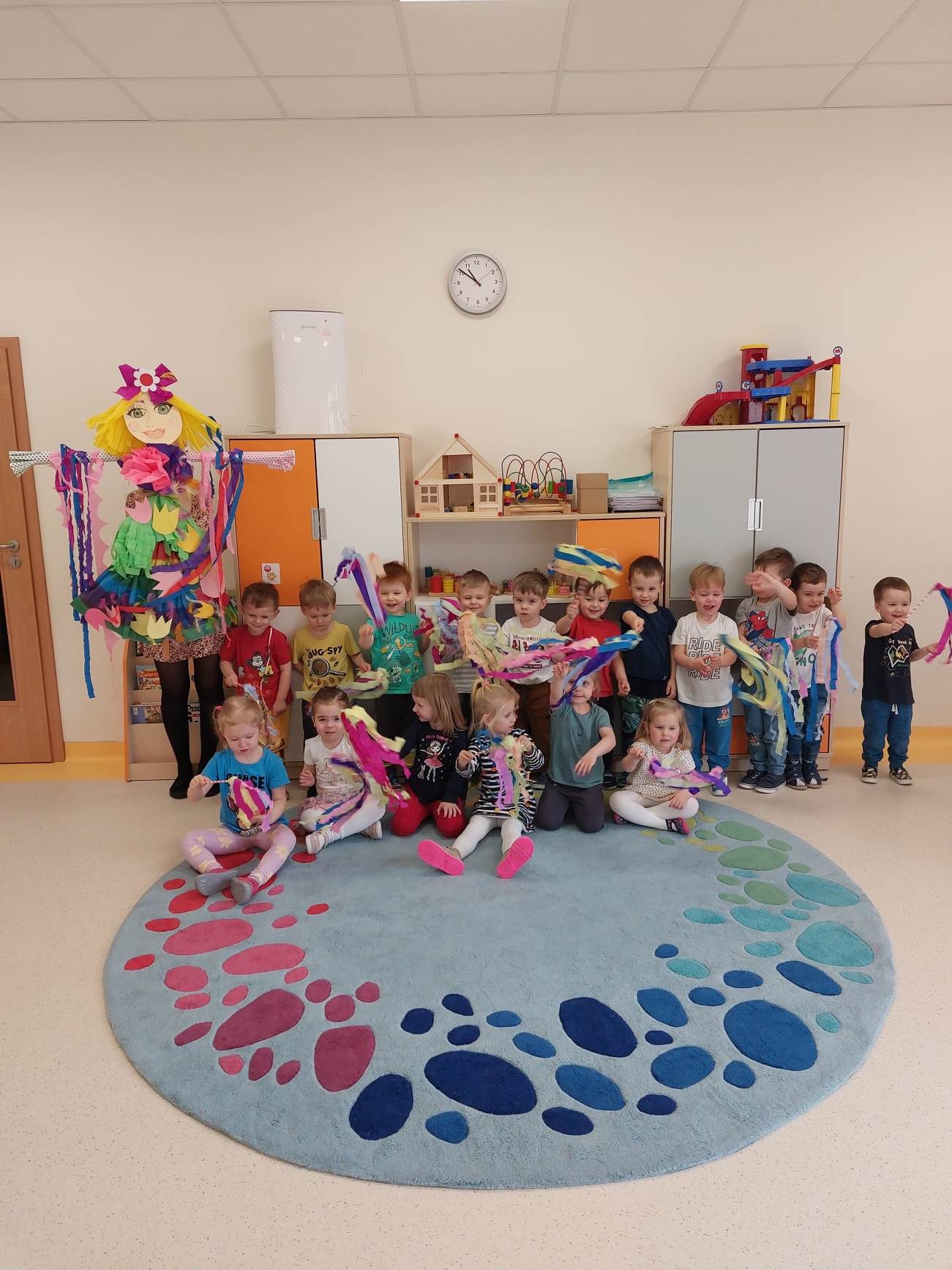 Pomogła im w tym wcześniej przygotowana i wiosennie przystrojona Marzanna 🙂 Dzieci z radością maszerowały w wiosennym pochodzie, na czele którego maszerowała Nasza zimowa panna – Marzanna. Wszystkich ogarnęła spontaniczna radość, śpiewając piosenki oraz wykrzykując rymowanki przeganiające zimę 🙂 Jesteśmy pewni, że Nasze starania sprawią, że Wiosna zagości u nas na dobre, zazieleni łąki, drzewa i trawy.