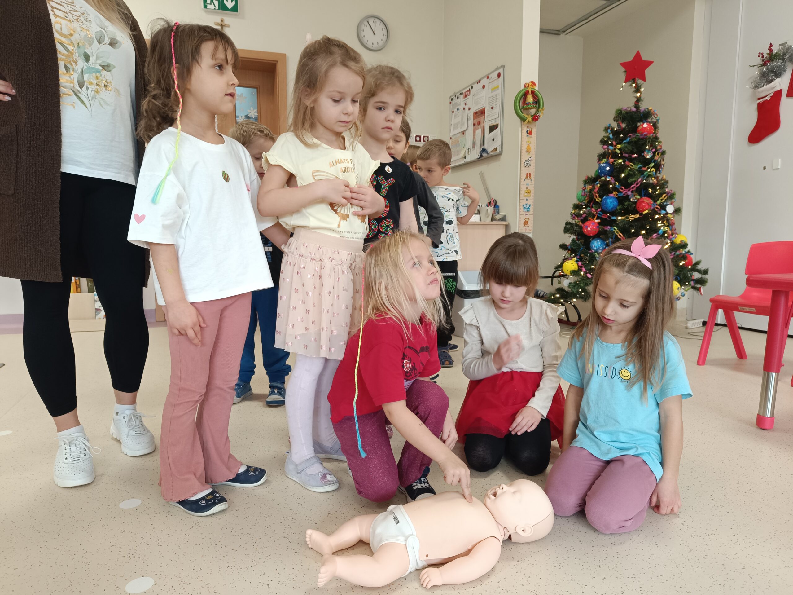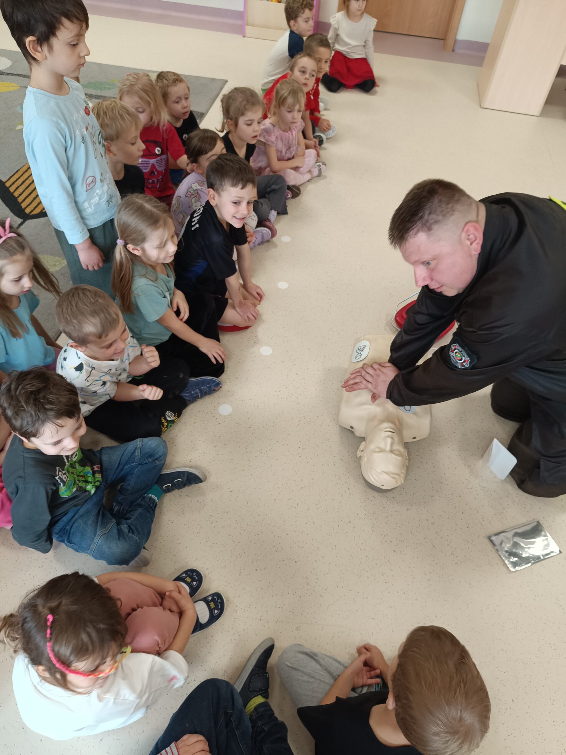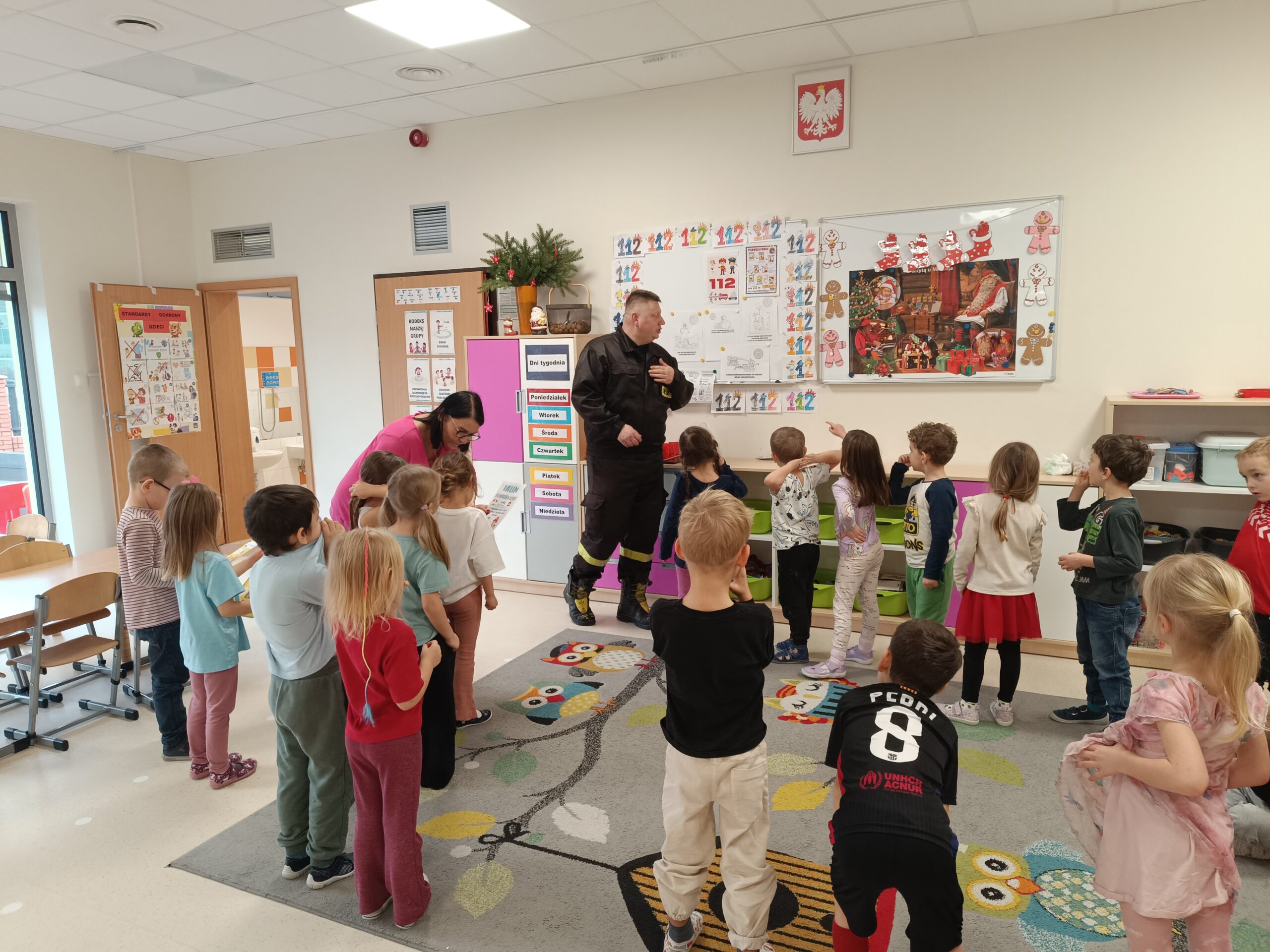 9 grudnia odwiedził nas pan strażak, który uczył nas jak udzielać pierwszej pomocy dzieciom i dorosłym. Spotkanie było bardzo ciekawe i dzieci aktywnie w nim uczestniczyły. W podziękowaniu samodzielnie wykonały dyplomy i zaśpiewały piosenkę o numerze alarmowym 112.