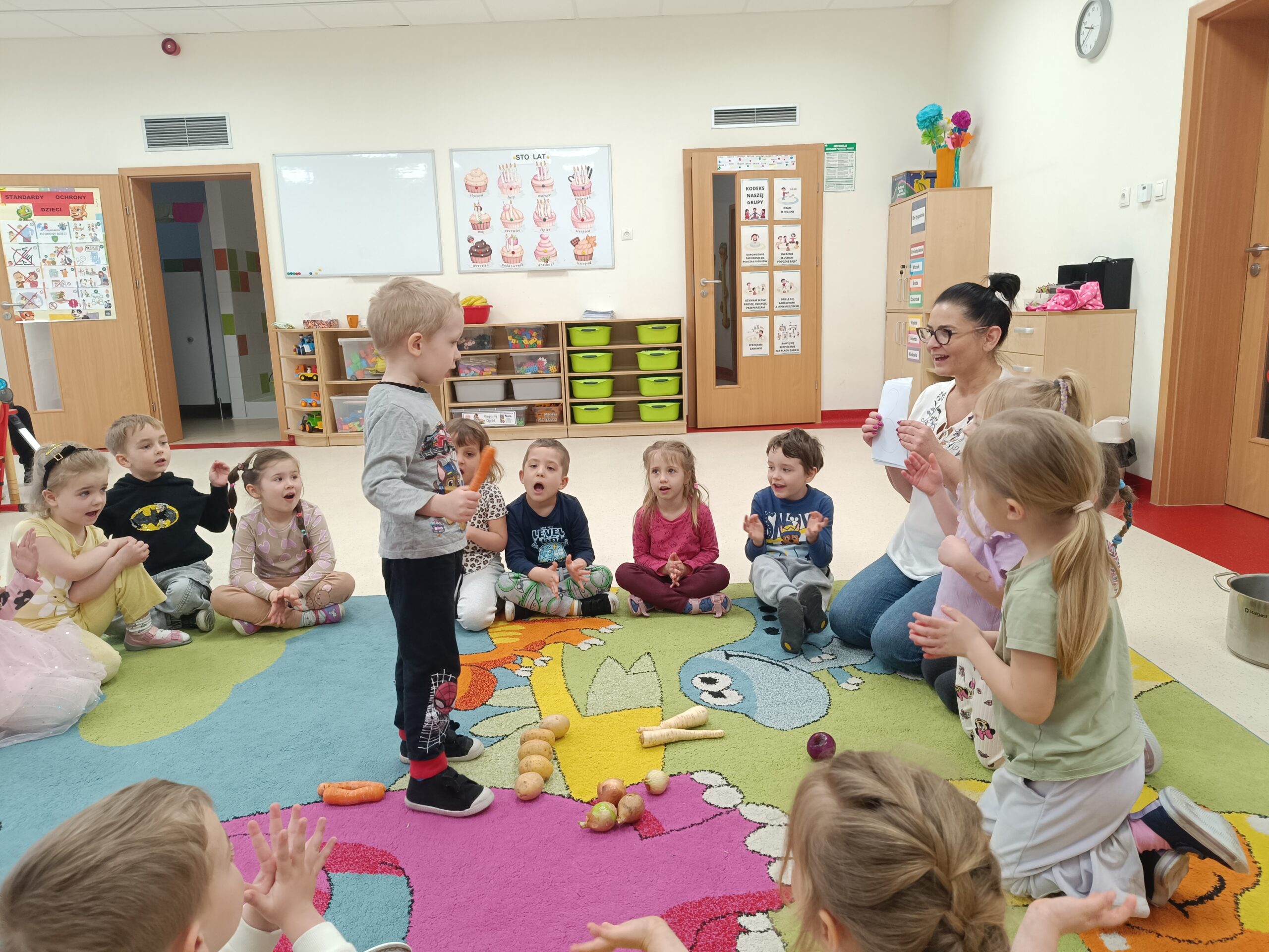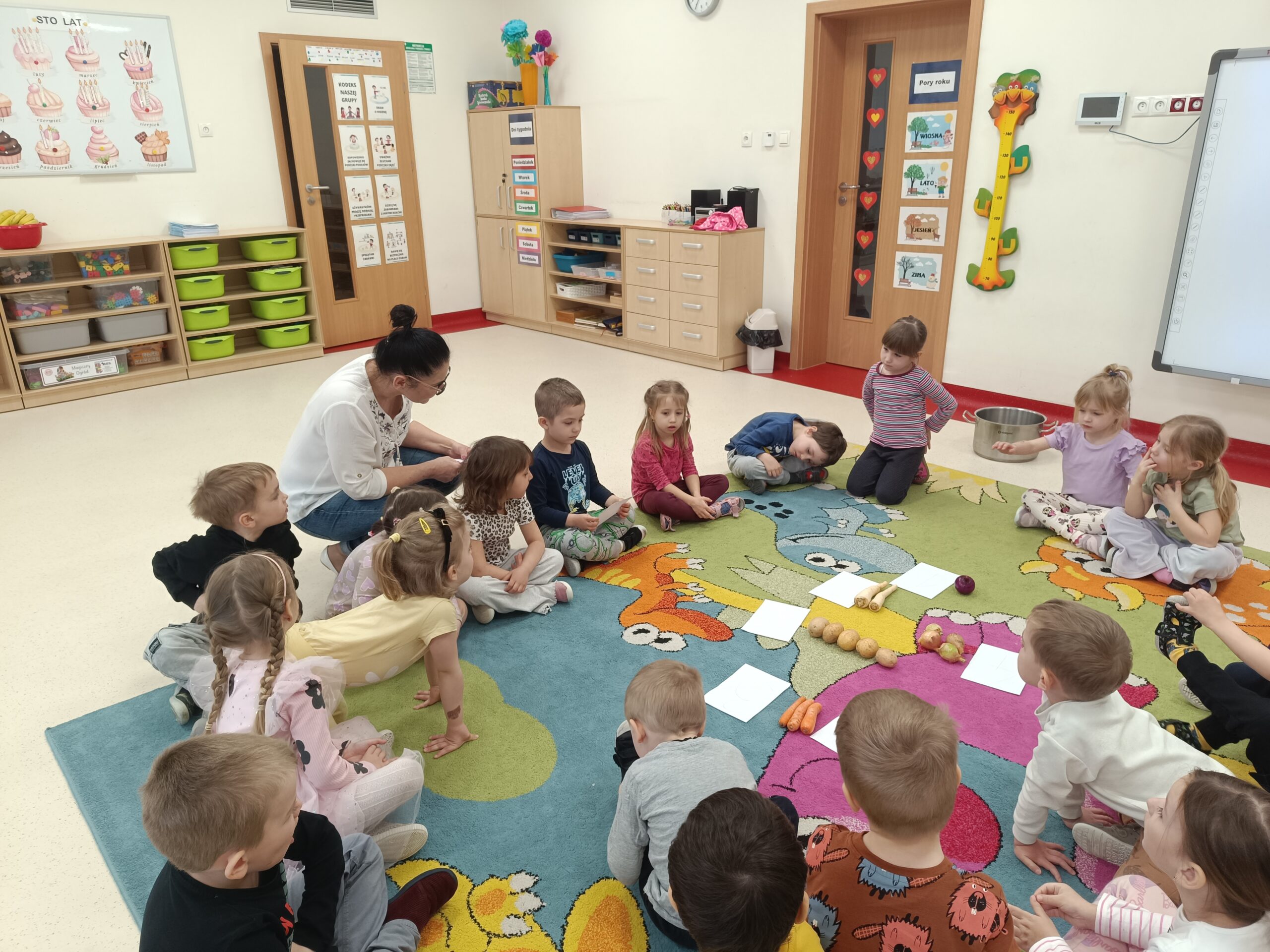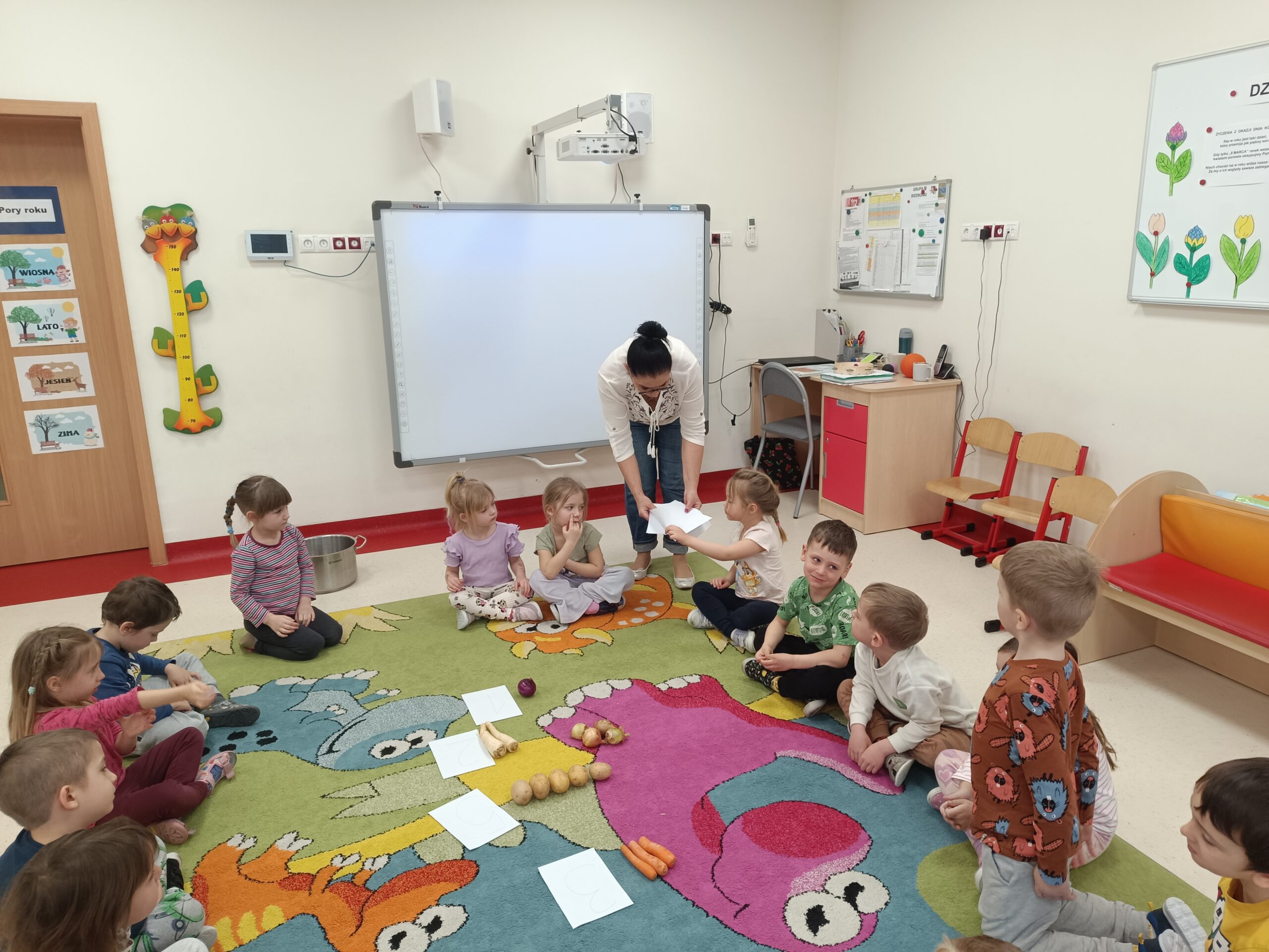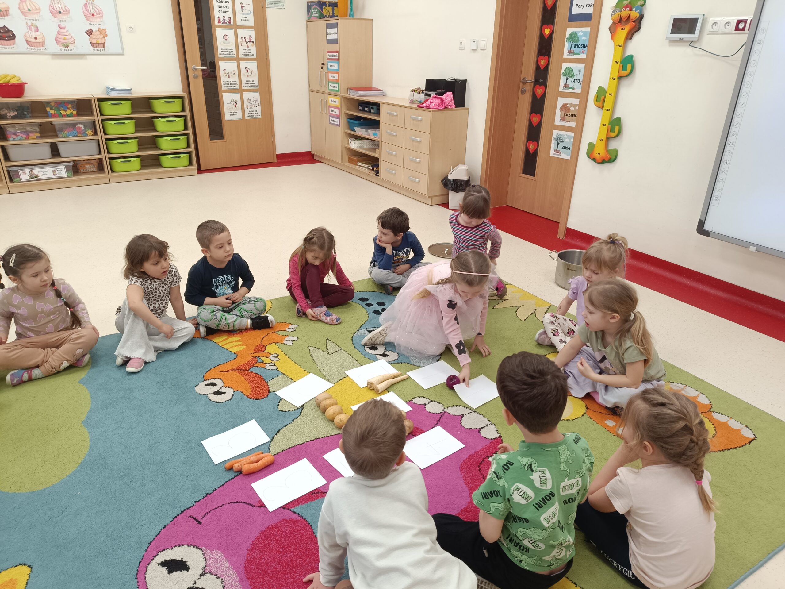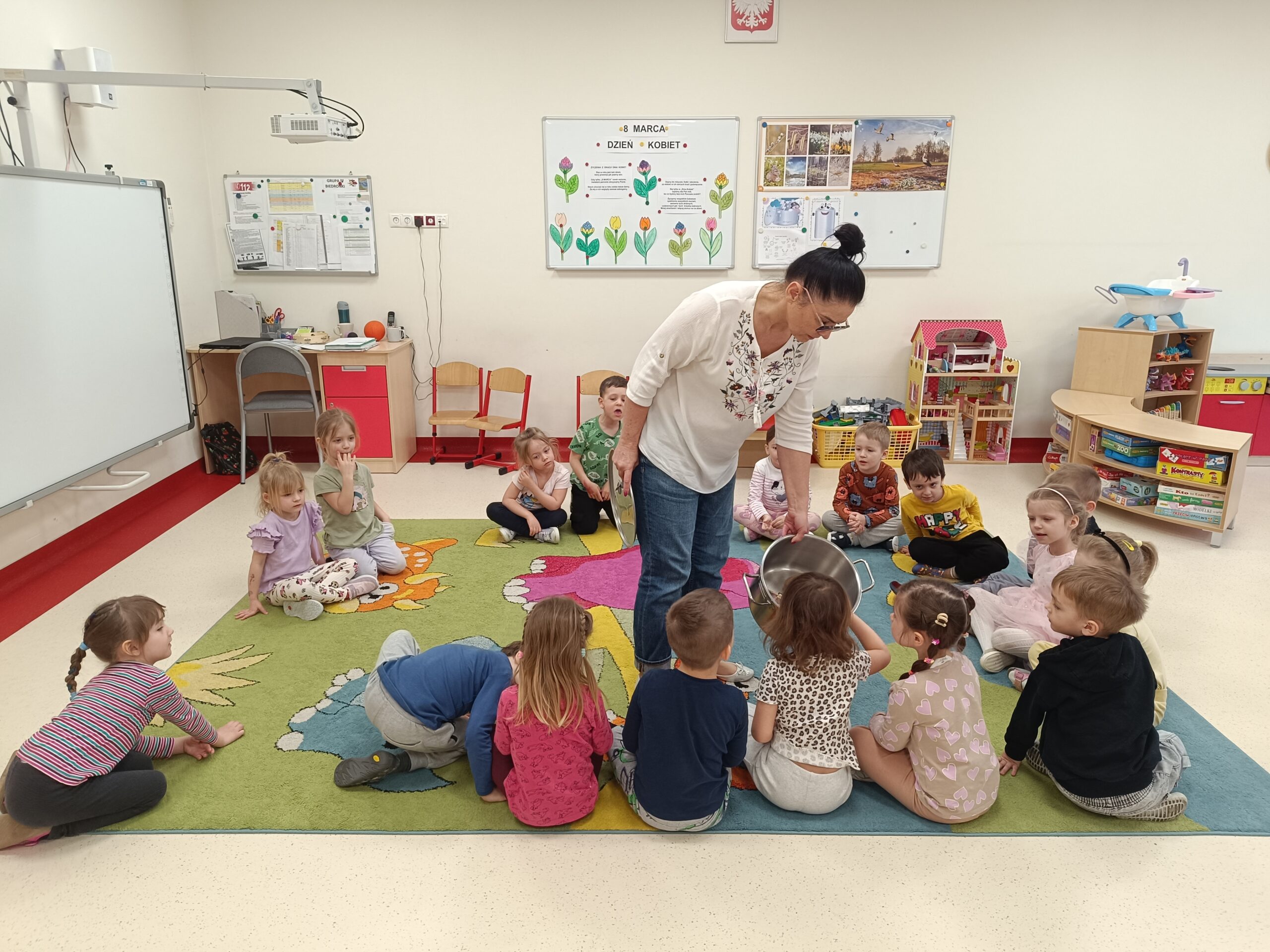 Dzieci z grupy Biedronek poznały znaczenie wiosennego przysłowia „W marcu jak w garncu”, opisywały charakterystyczne zjawiska atmosferyczne i rozwijały umiejętność dodawania na konkretach w zakresie 5. Samodzielnie wykonały 12-elementowe, kolorowe puzzle.