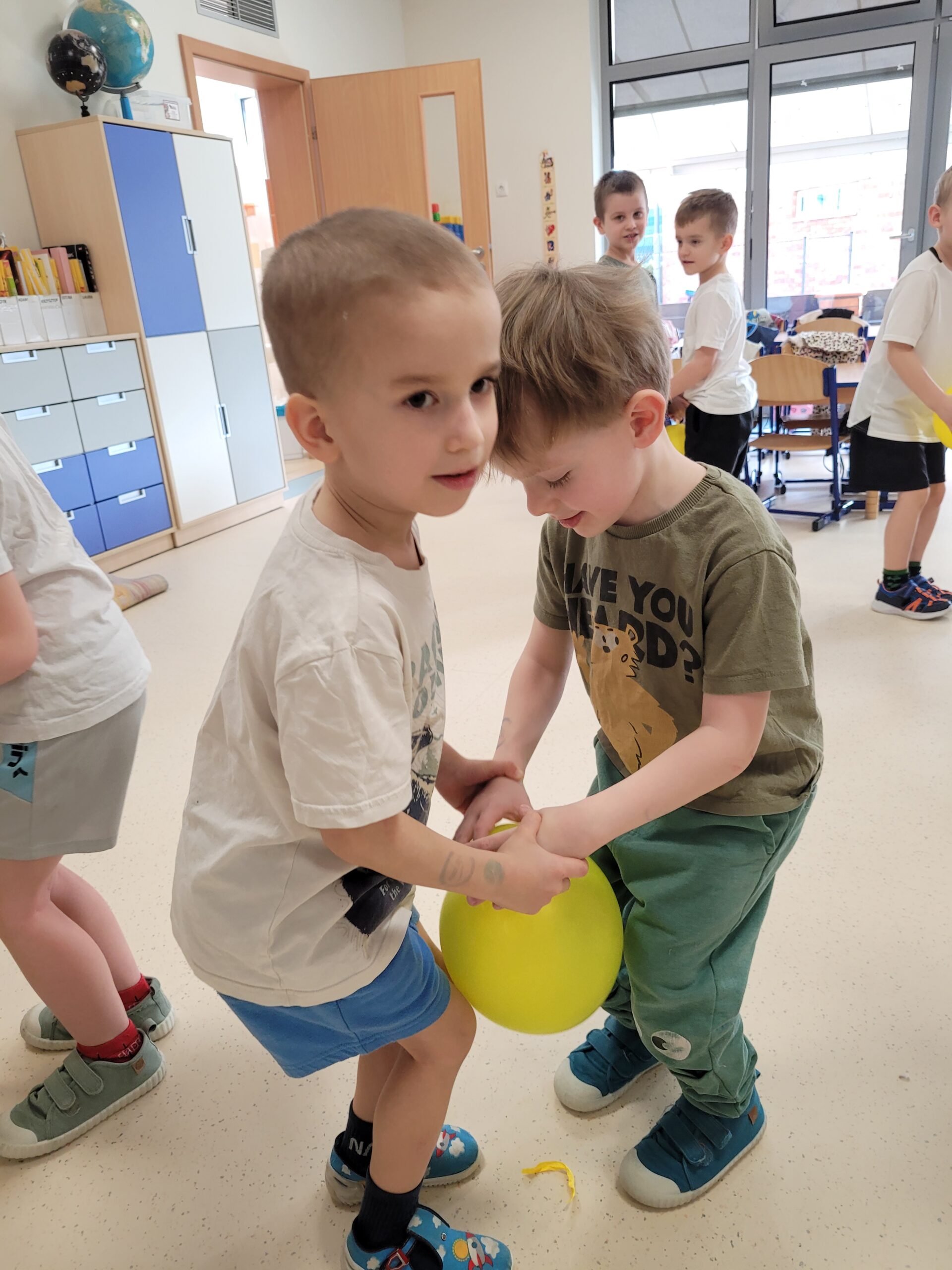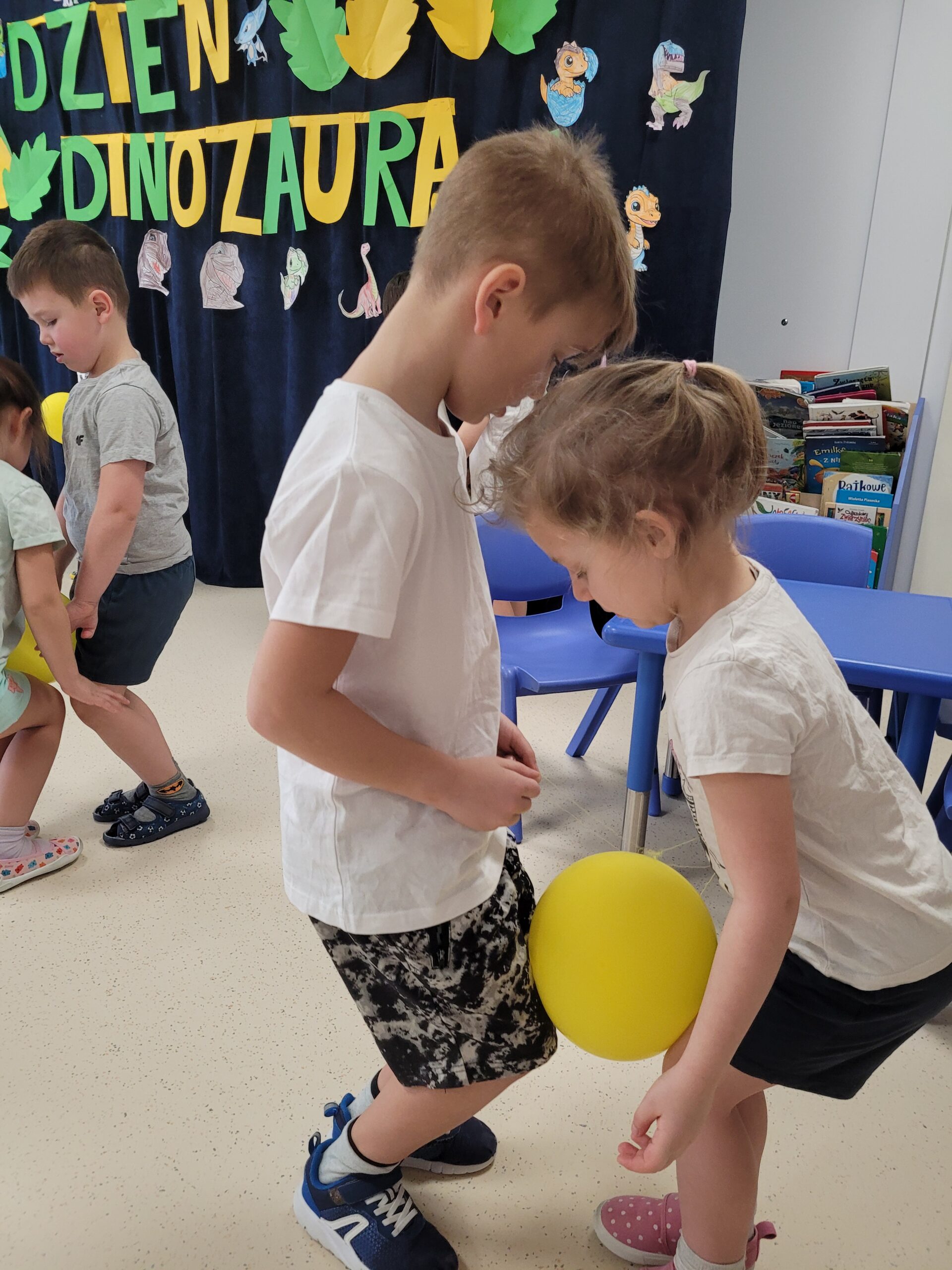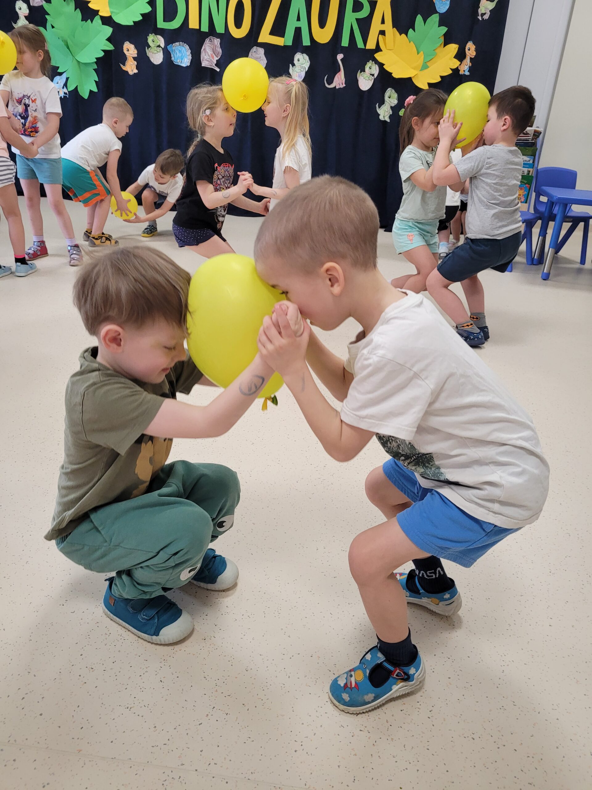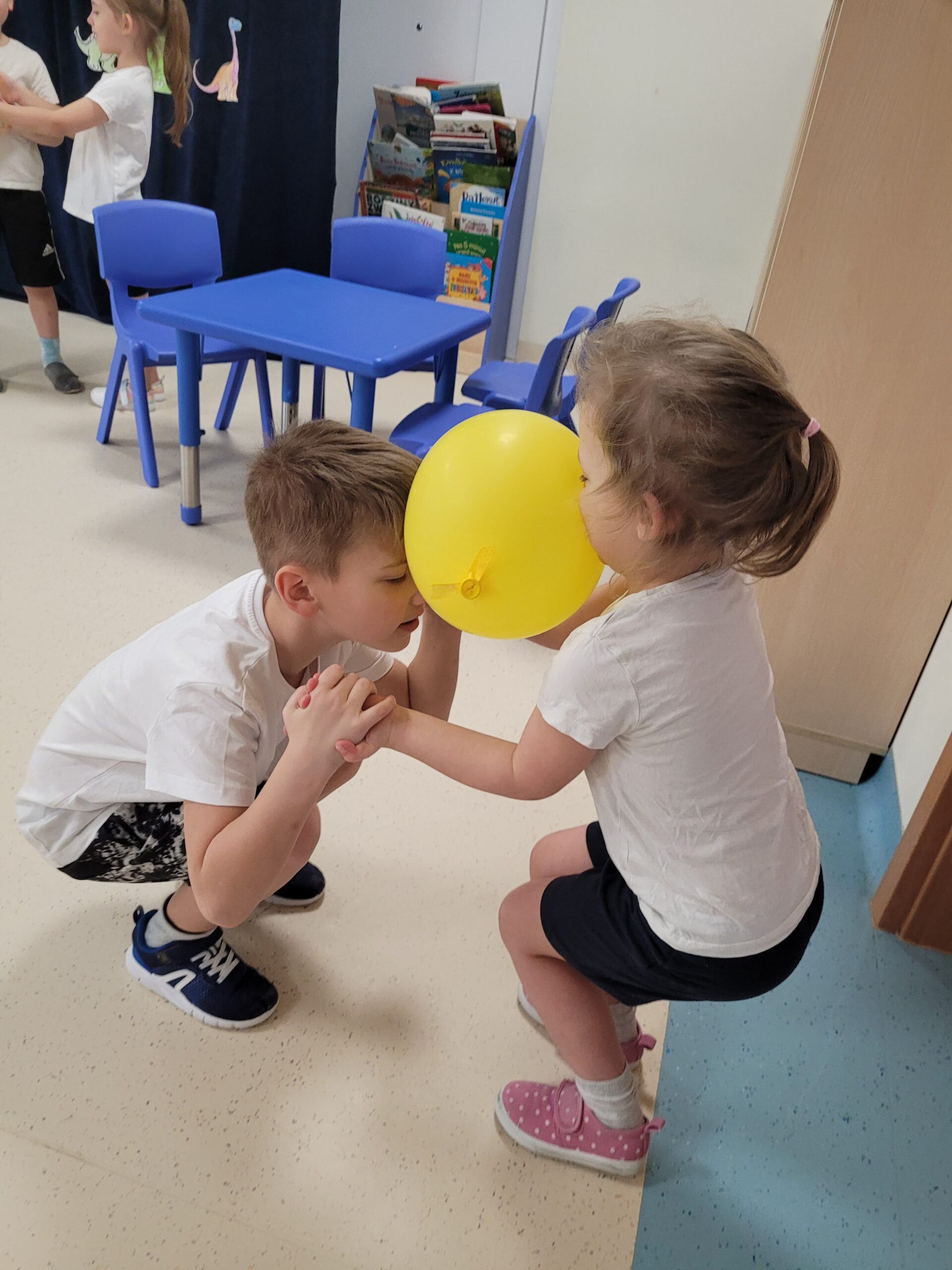 Podczas zajęć ruchowych w tym tygodniu dzieci doskonaliły umiejętność pracy w parach oraz umiejętnośc równowagi.