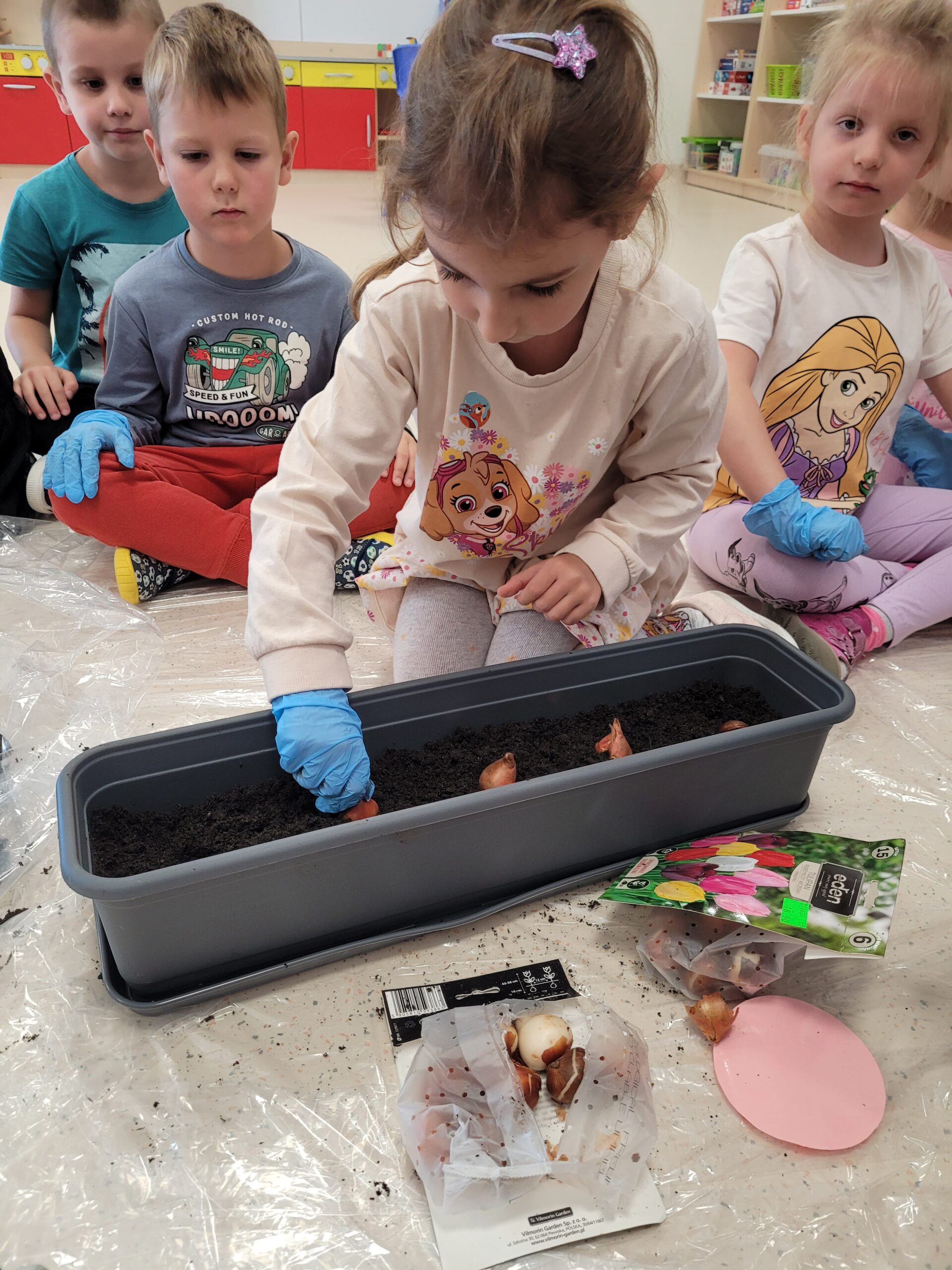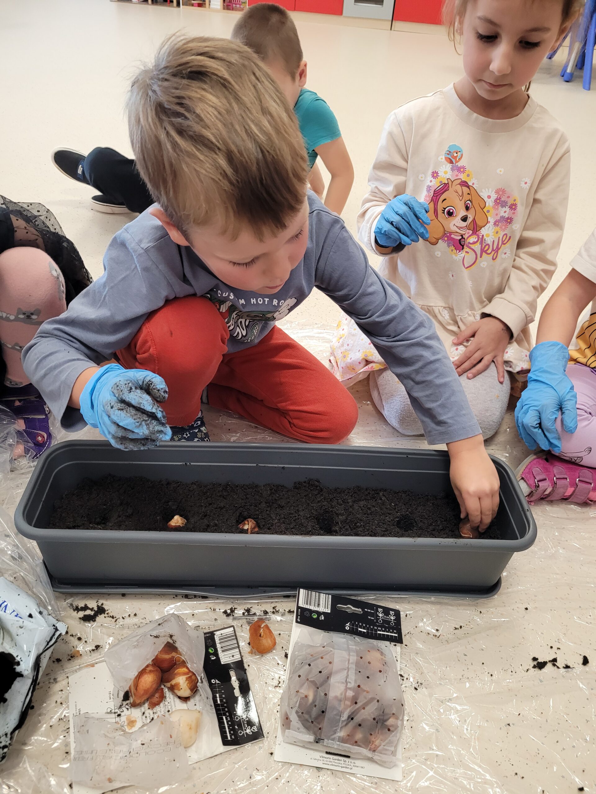 W dniu 7 października w grupie Kropek odbyły się Warsztaty Przyrodnicze, podczas których dzieci poznały budowę tulipana. Następnie Kropki miały okazję posadzić własne kwiaty. Dzieci będą miały okazję prowadzić obserwacje przyrodnicze, podczas których zapoznają się z fazami życia rośliny.