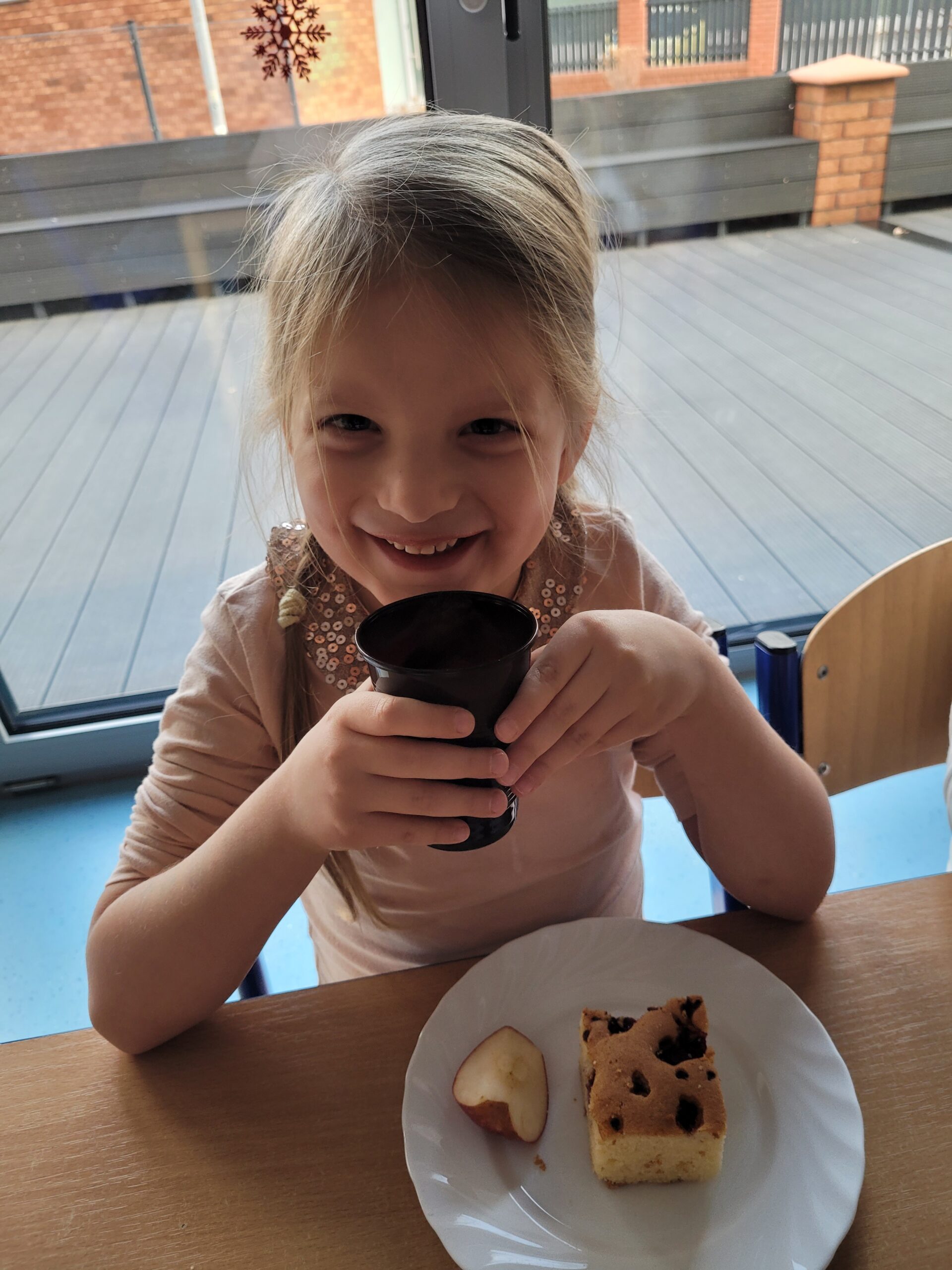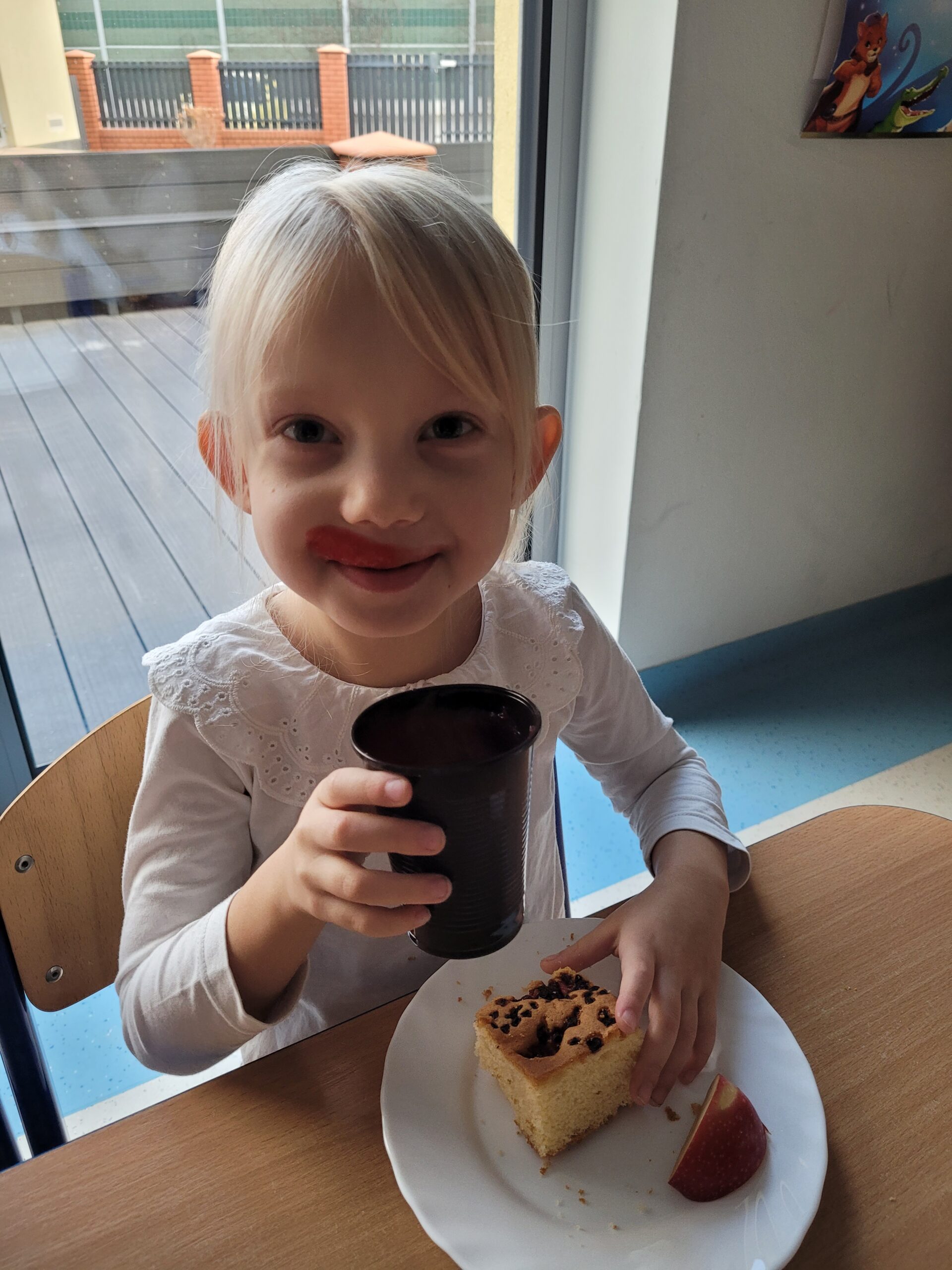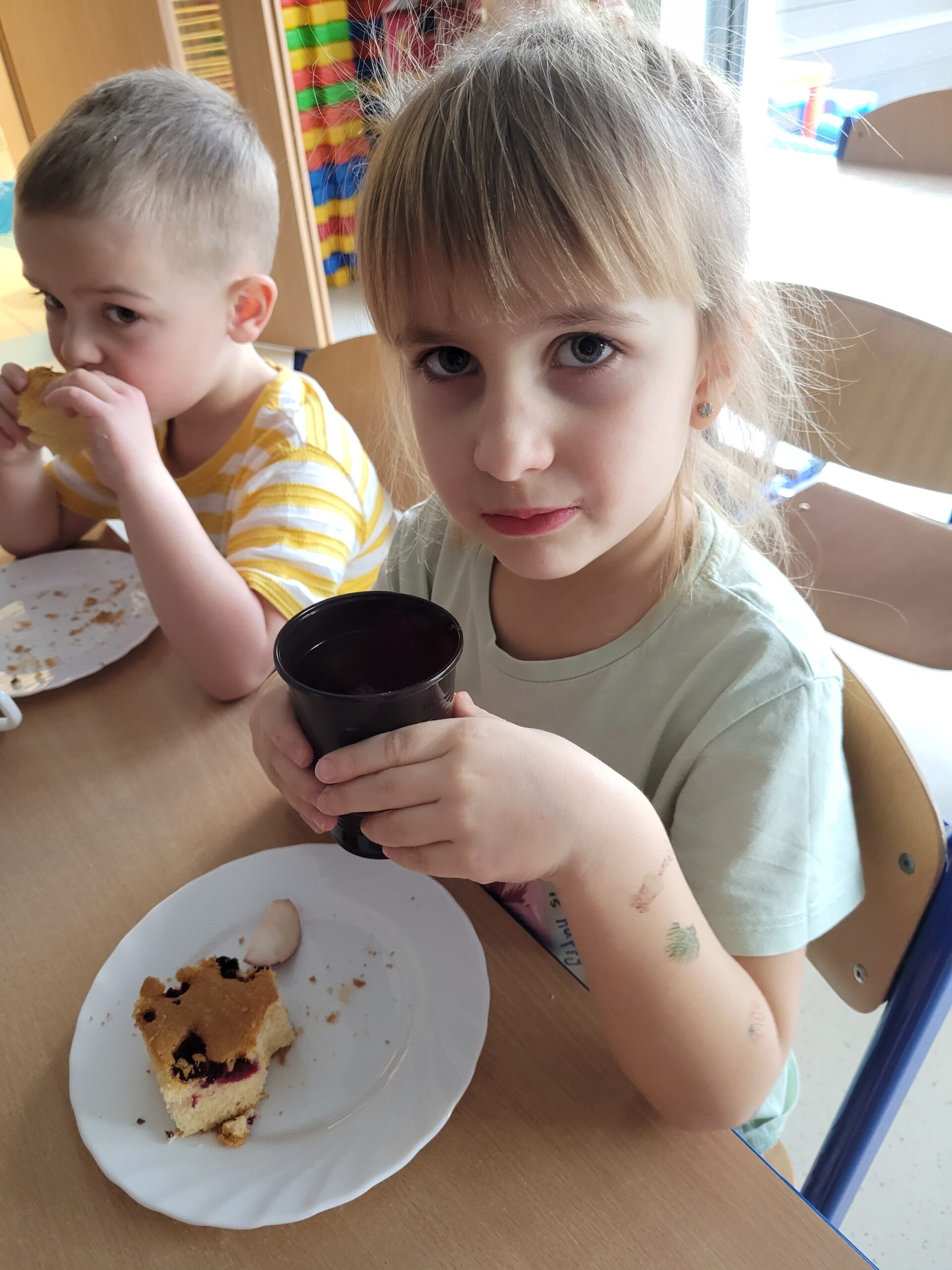 Kropki podczas warsztatów kulinarnych własnoręcznie przygotowały sok z buraków, kiwi, marchewki oraz z jabłek. Dzieci ze smakiem wypiły wcześniej przygotowany sok podczas wspólnego podwieczorku.