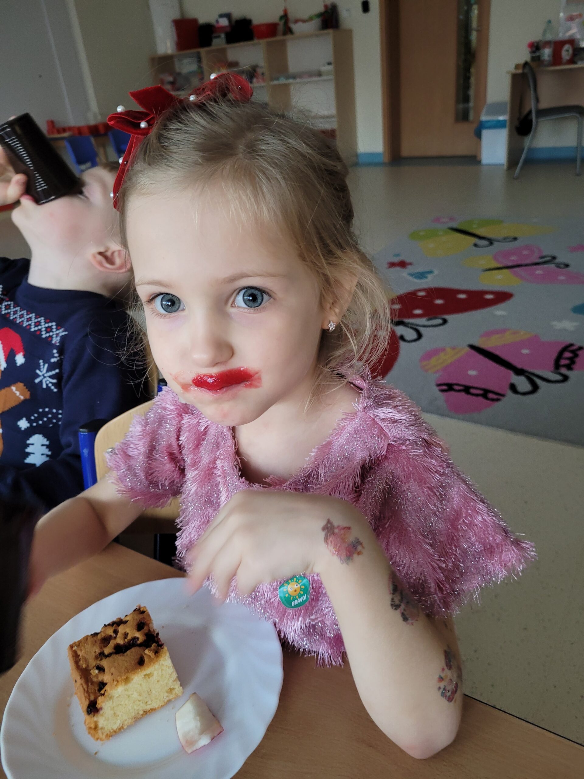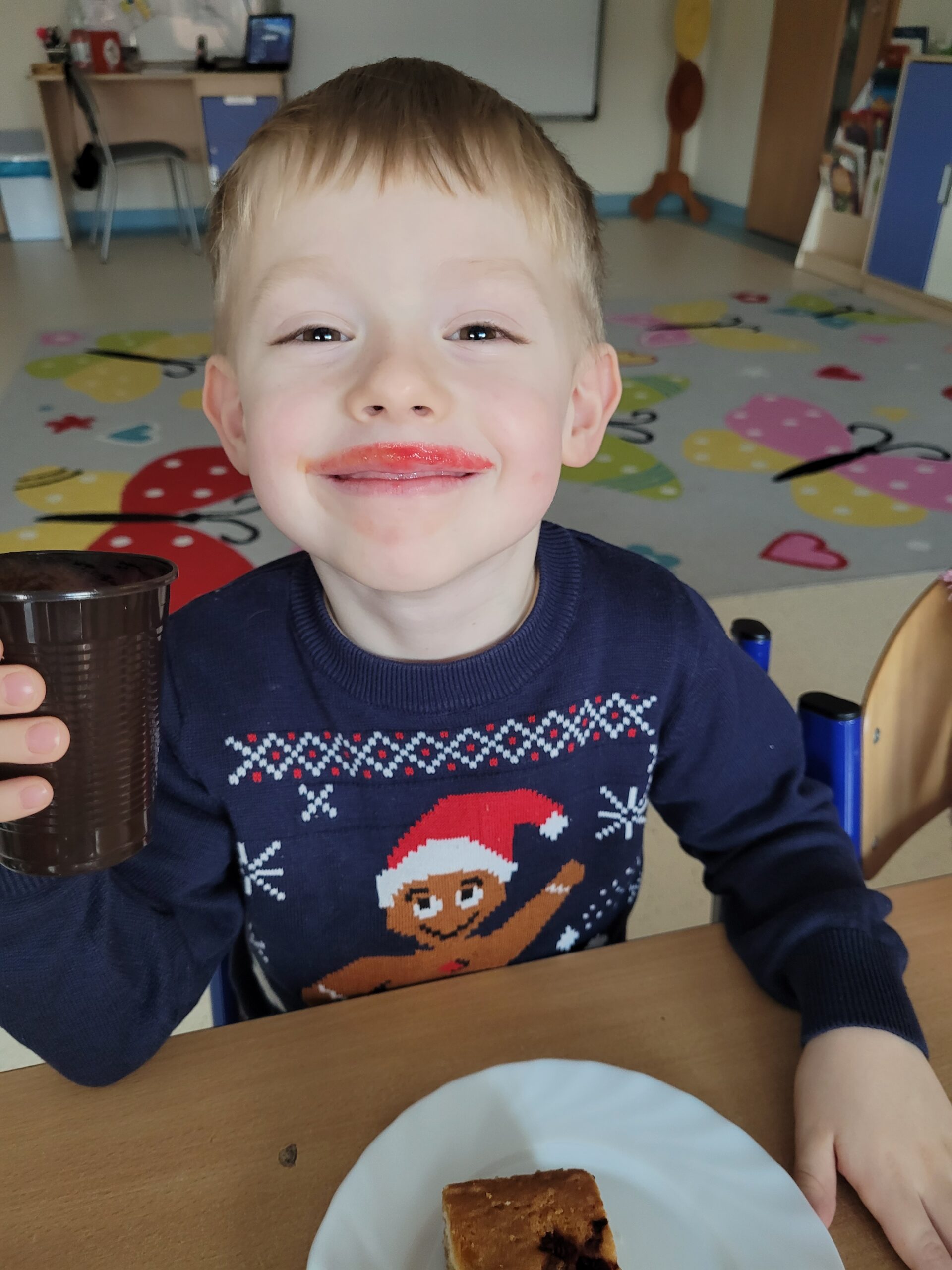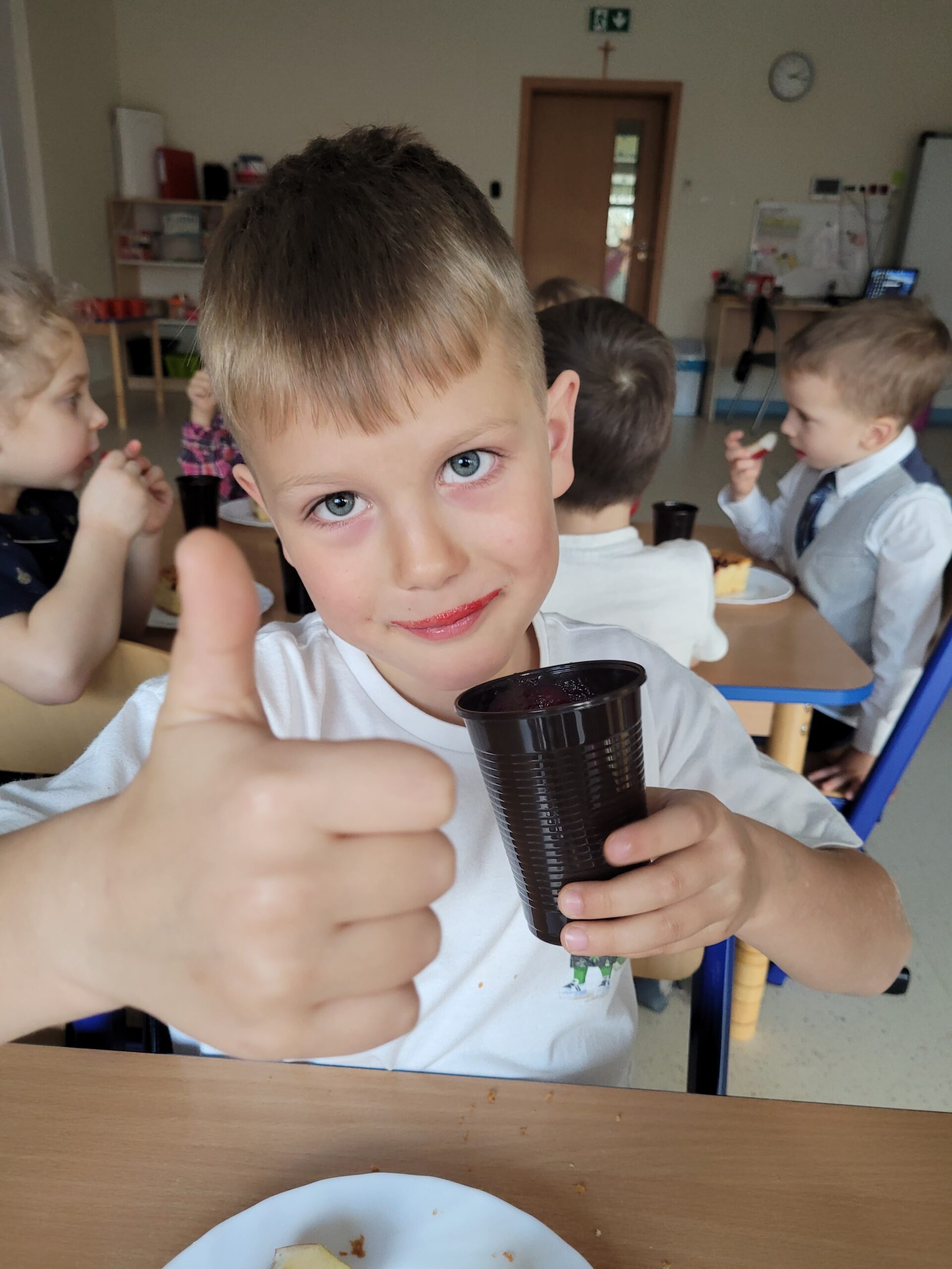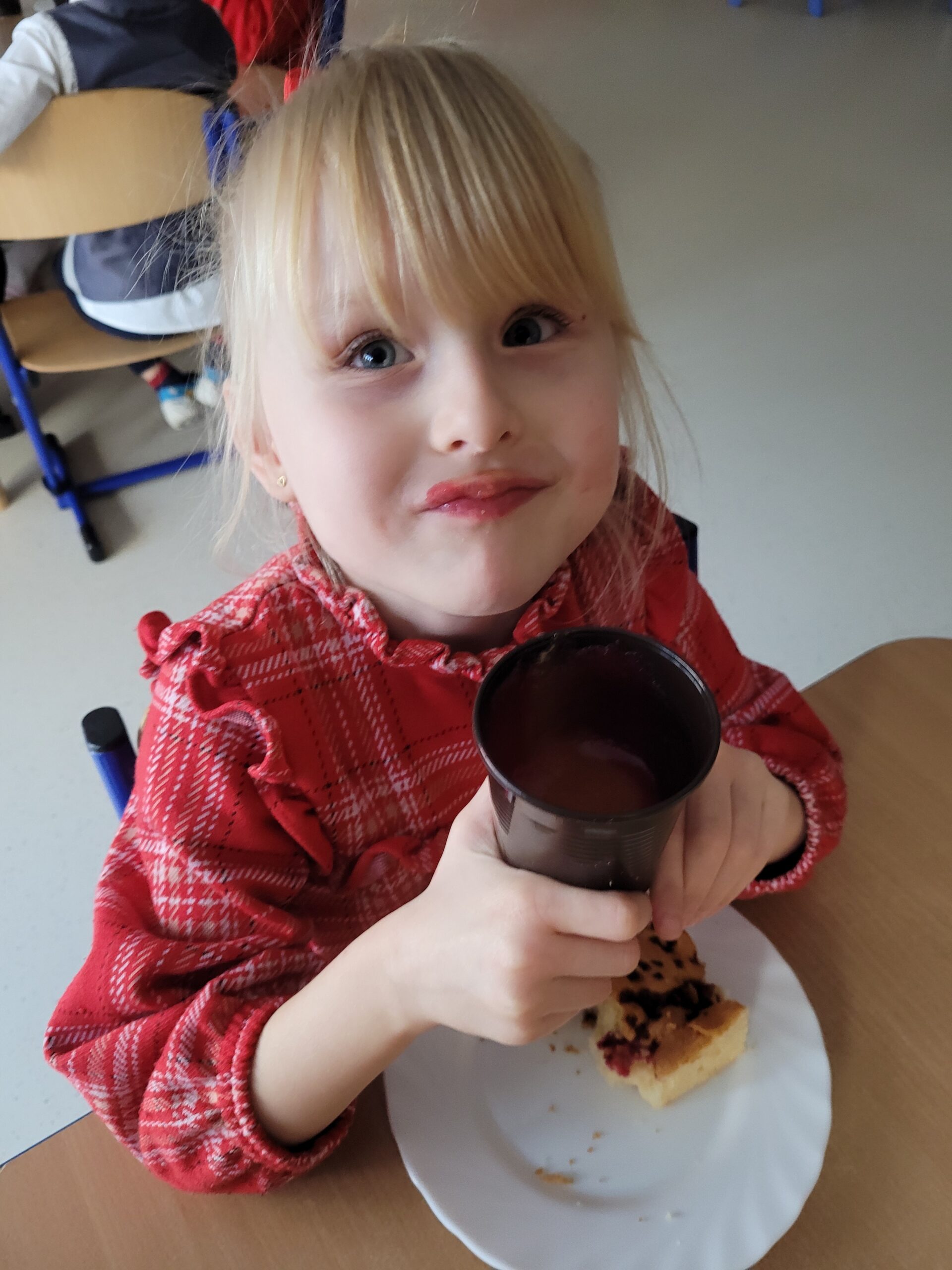 Kropki podczas warsztatów kulinarnych własnoręcznie przygotowały sok z buraków, kiwi, marchewki oraz z jabłek. Dzieci ze smakiem wypiły wcześniej przygotowany sok podczas wspólnego podwieczorku.
