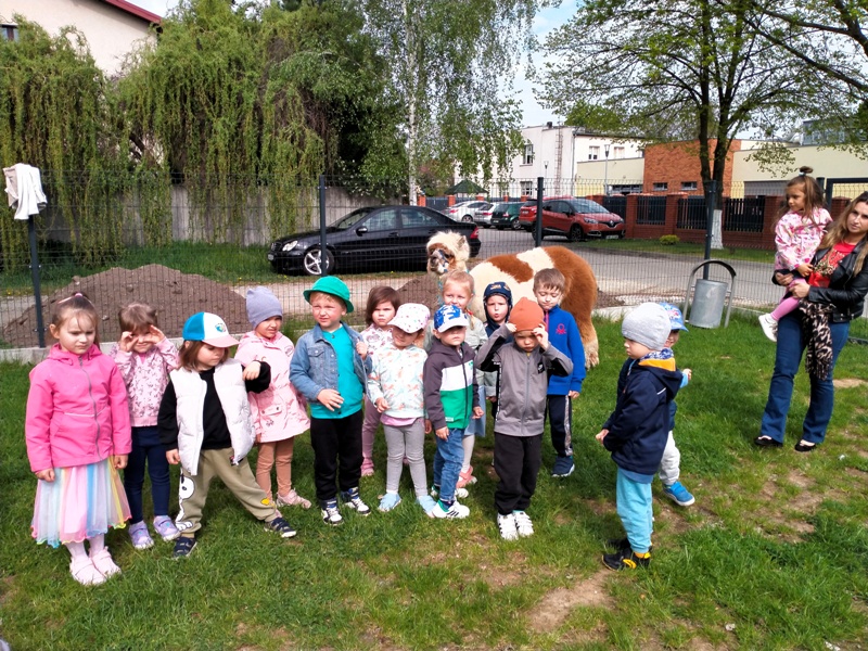 23 kwietnia w naszej grupie na terenie ogrodu przedszkolnego odbyło się wyjątkowe wydarzenie- wizyta alpak.