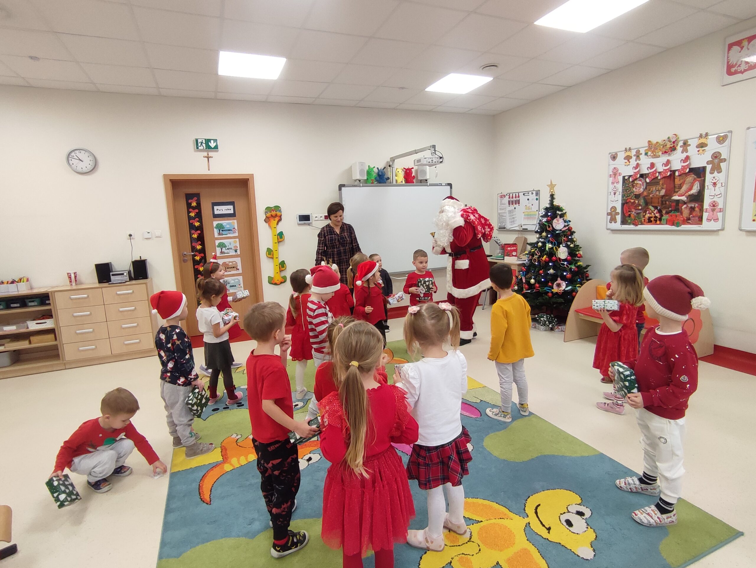 Dzieci z grupy Biedronek jak co roku 6 grudnia oczekiwały na Św. Mikołaja. Wyglądały i nasłuchiwały dzwonków. Mikołaj odwiedził dzieci przynosząc ze sobą wielki worek prezentów. Dzieci w podziękowaniu zatańczyły i zaśpiewały mu jego ulubiona piosenkę. Na zakończenie zostało zrobione wspólne pamiątkowe zdjęcie.