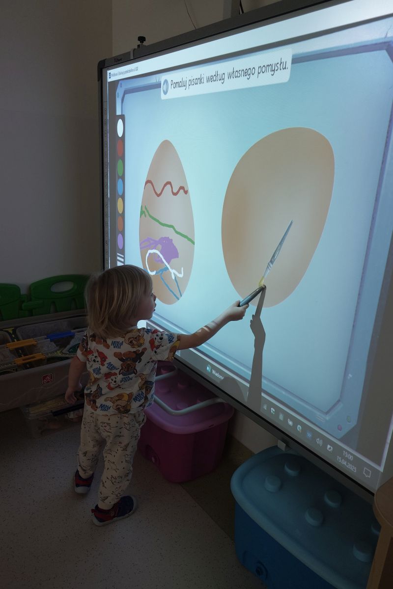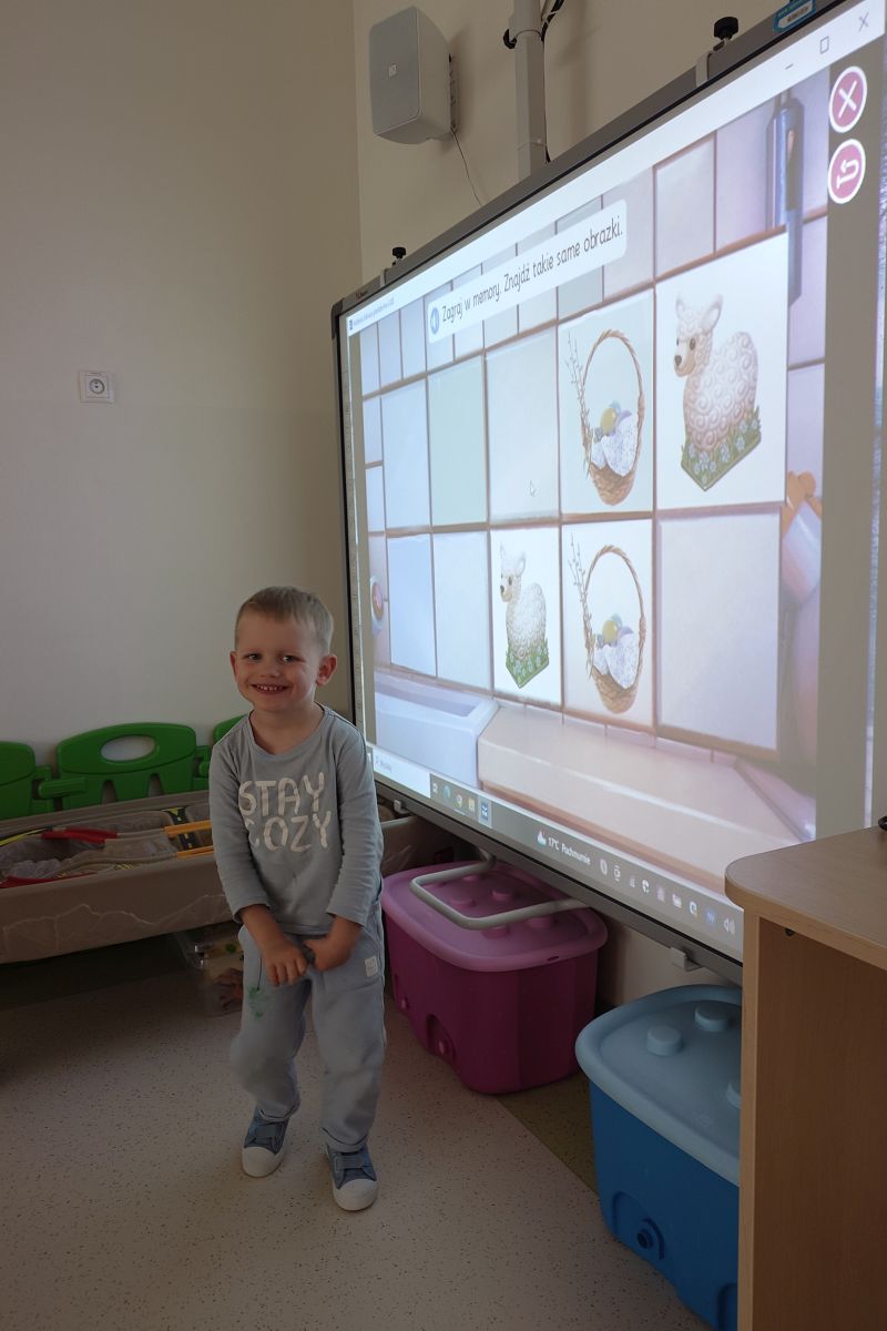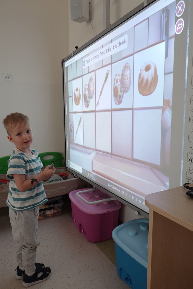 – zabawy z tablicą interaktywną – memory Wielkanocne, malujemy pisankę, poznanie zwyczajów Wielkanocnych,