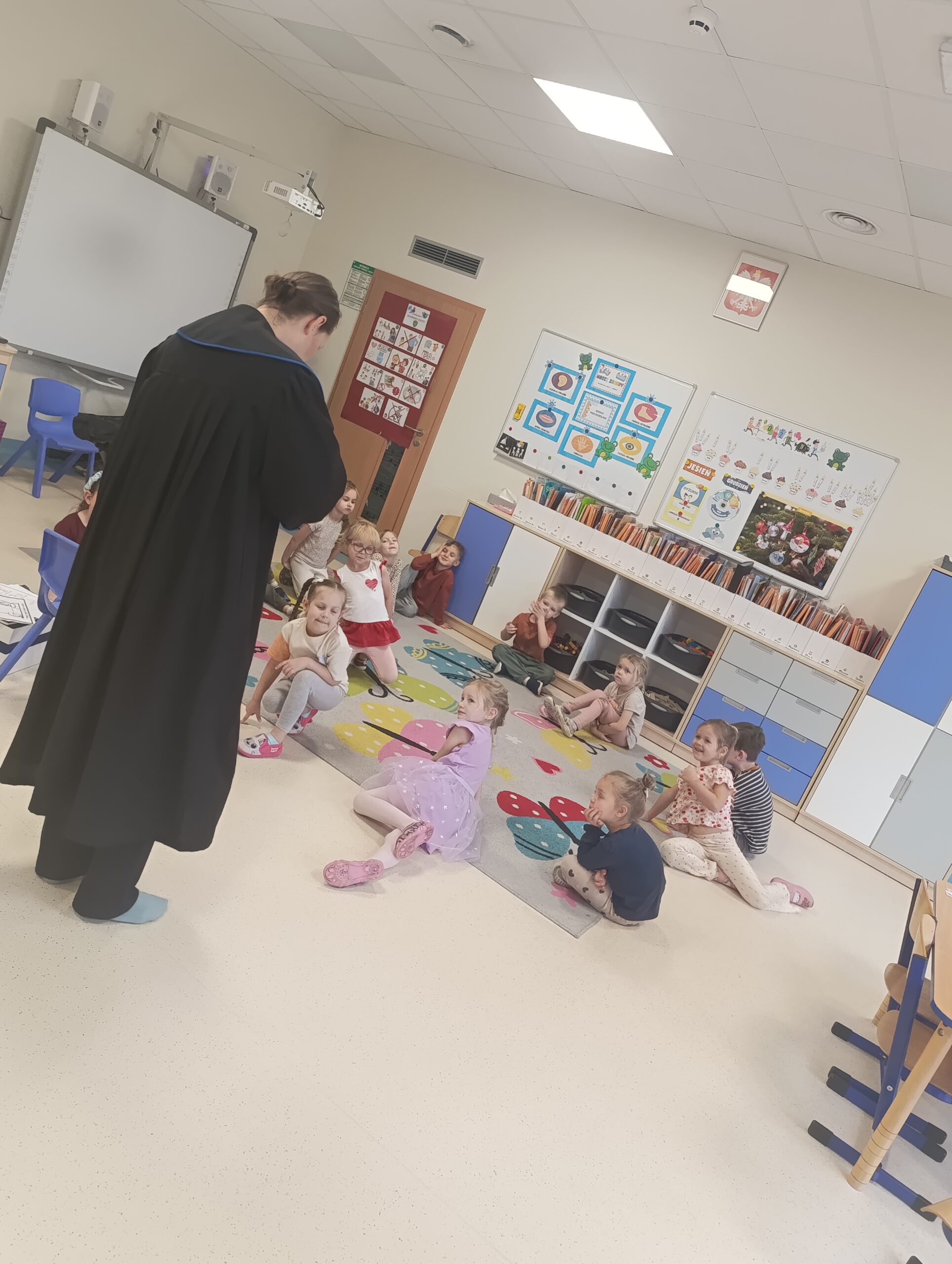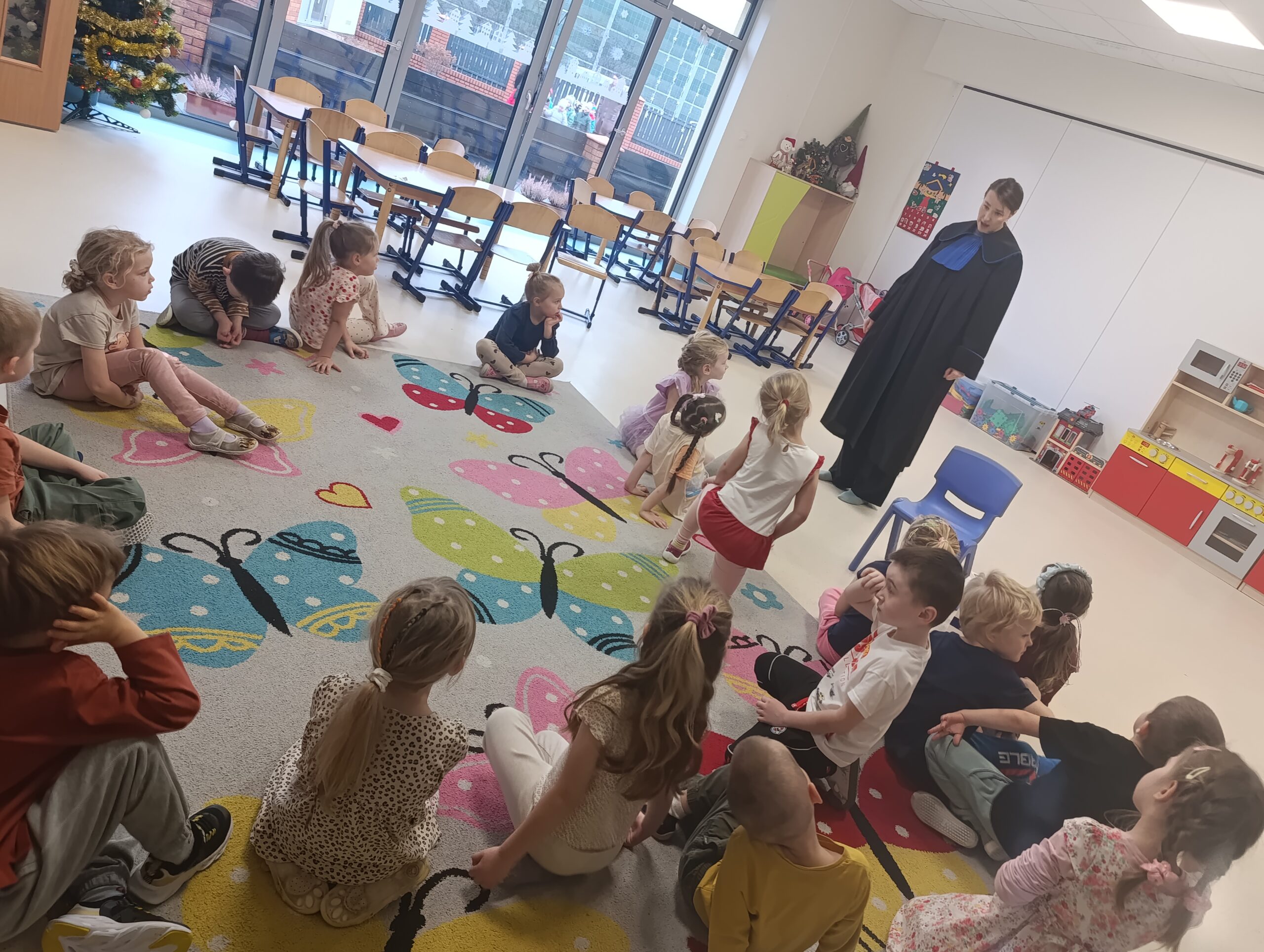 11 grudnia Żabki odwiedziła mama Mai, aby przybliżyć dzieciom zawód Radcy Prawnego. Pani Kasia przeprowadziła warsztaty z mediacji, dzieci uczyły się rozwiązywać kłótnie, dowiedziały się czym zajmuje sie radca prawny. Poznały, a nawet przymierzyły strój radcy prawnego, togę.