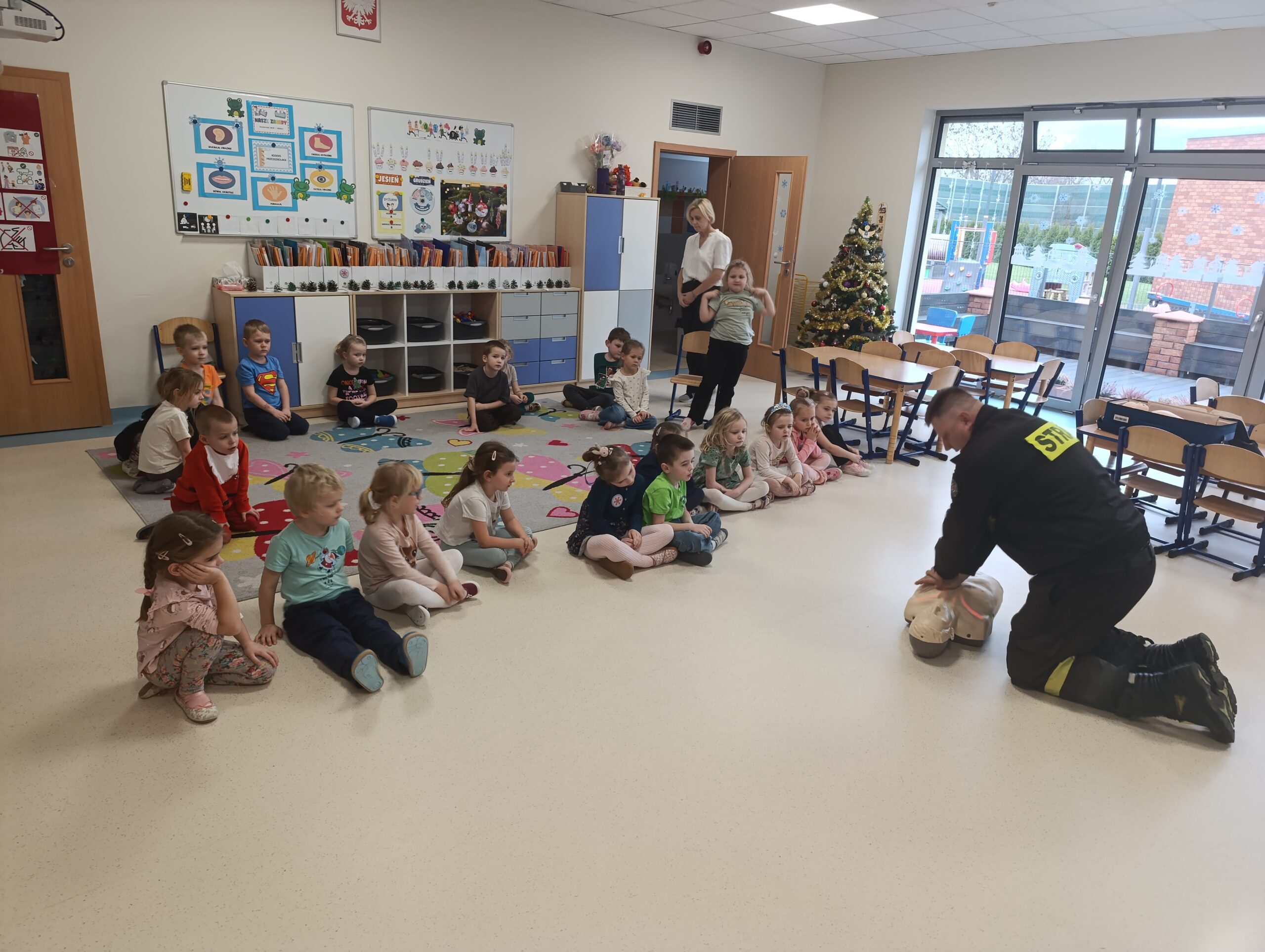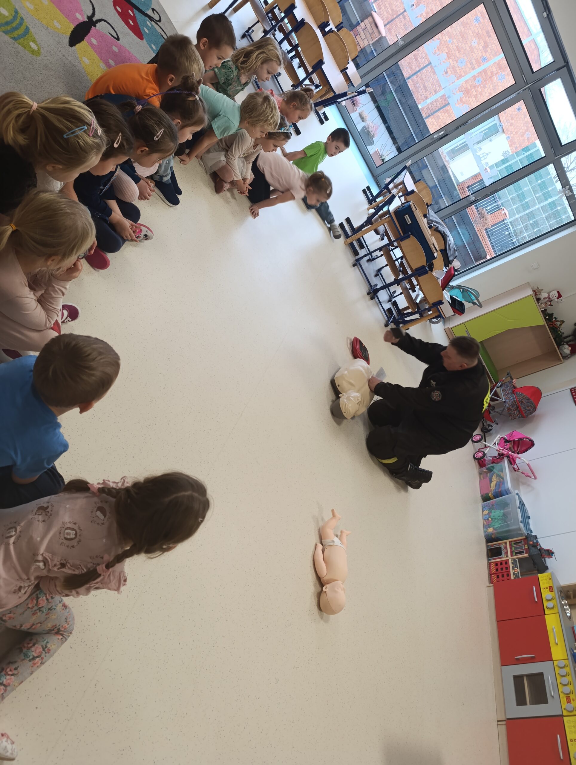 W przedszkolu dzieci uczestniczyły w zajęciach edukacyjnych z zakresu udzielania pierwszej pomocy przedmedycznej, które miały na celu kształtowanie pozytywnych i bezpiecznych postaw oraz zapoznanie najmłodszych z podstawowymi czynnościami ratowniczymi w wypadku nieobecności osób dorosłych. Zajęcia miały charakter praktyczny, kazda Żabka miała możliwość przećwiczenia resuscytacji na fantomach.