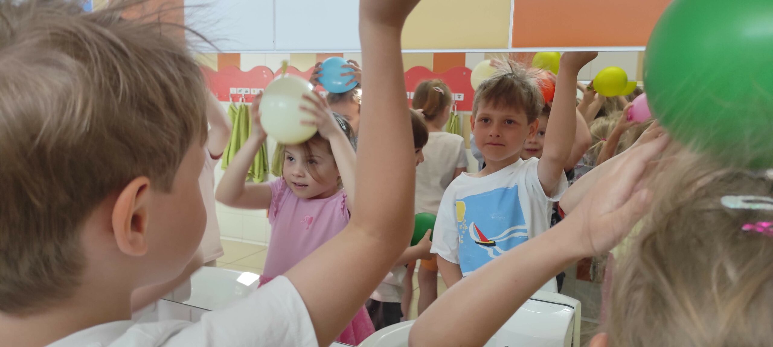 15.maja Kotki wzięły udział w zajęciach doświadczalnych z zakresu elektrostatyki. Wykorzystaliśmy do tego zwykłe balony. Podczas wprowadzających zabaw dzieci zauważyły, że balony potarte o ubranie lub włosy zaczynają dziwnie się zachowywać. Pojawiły się pytania: