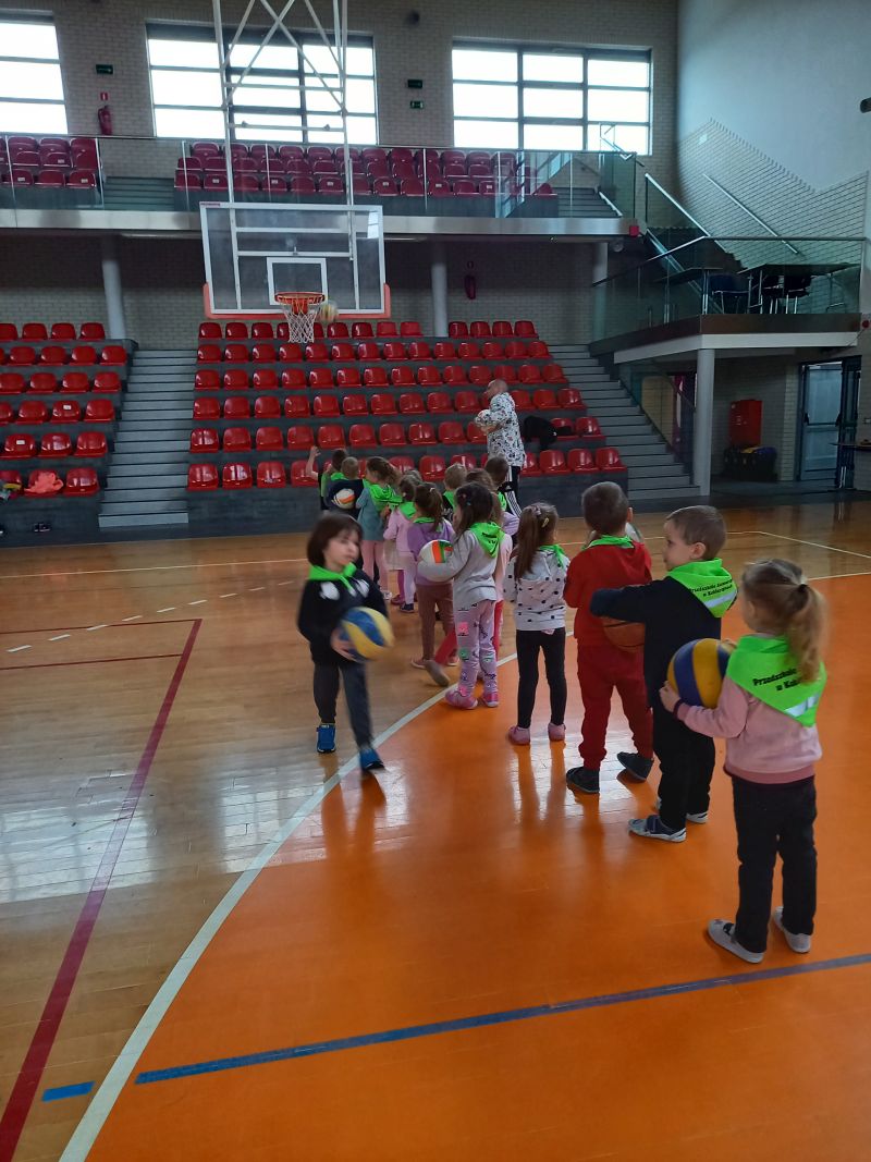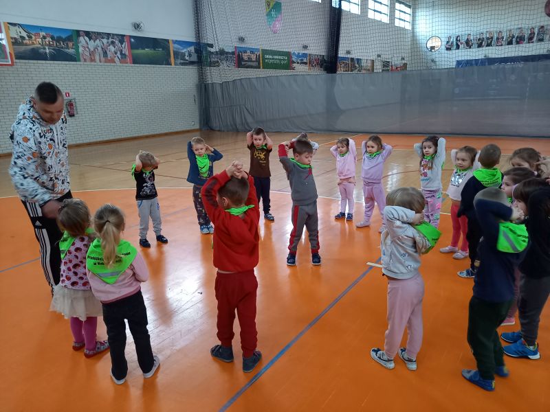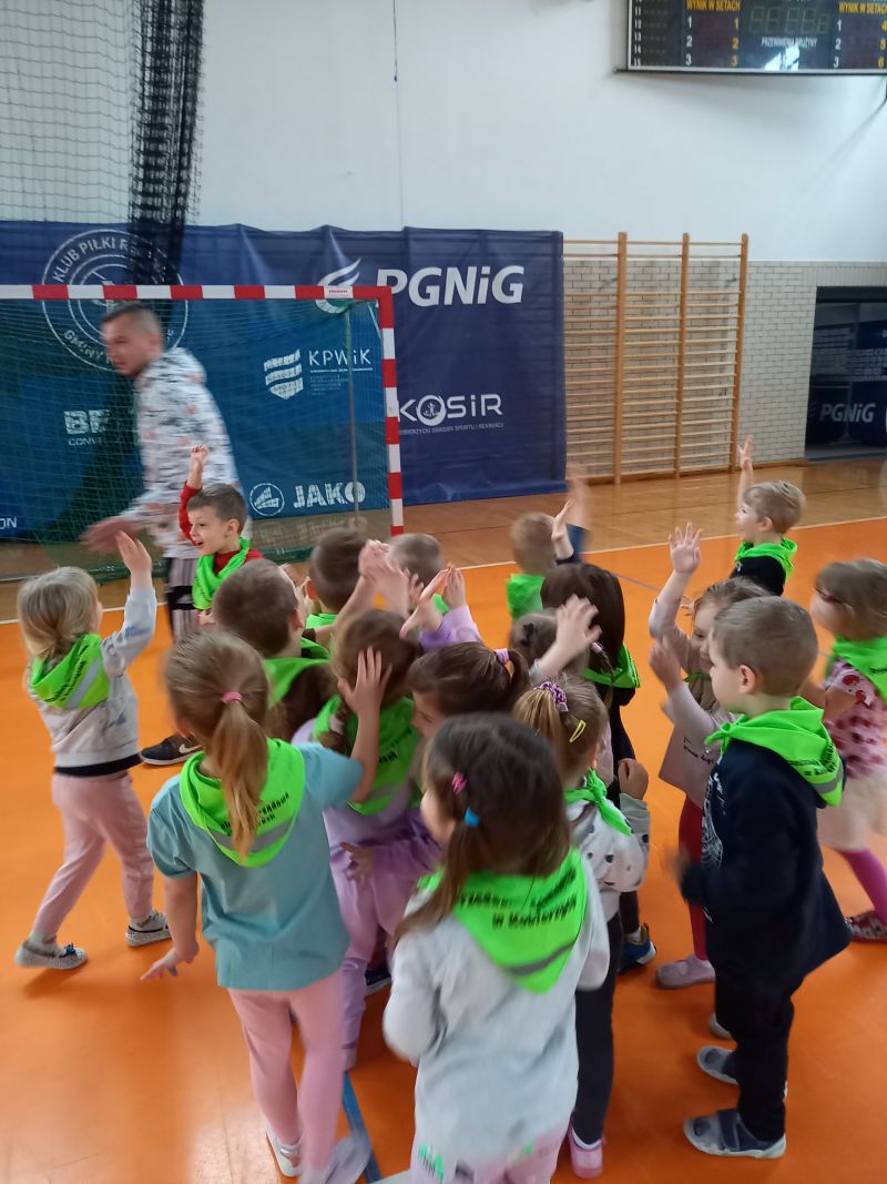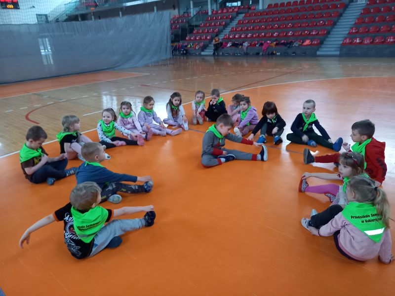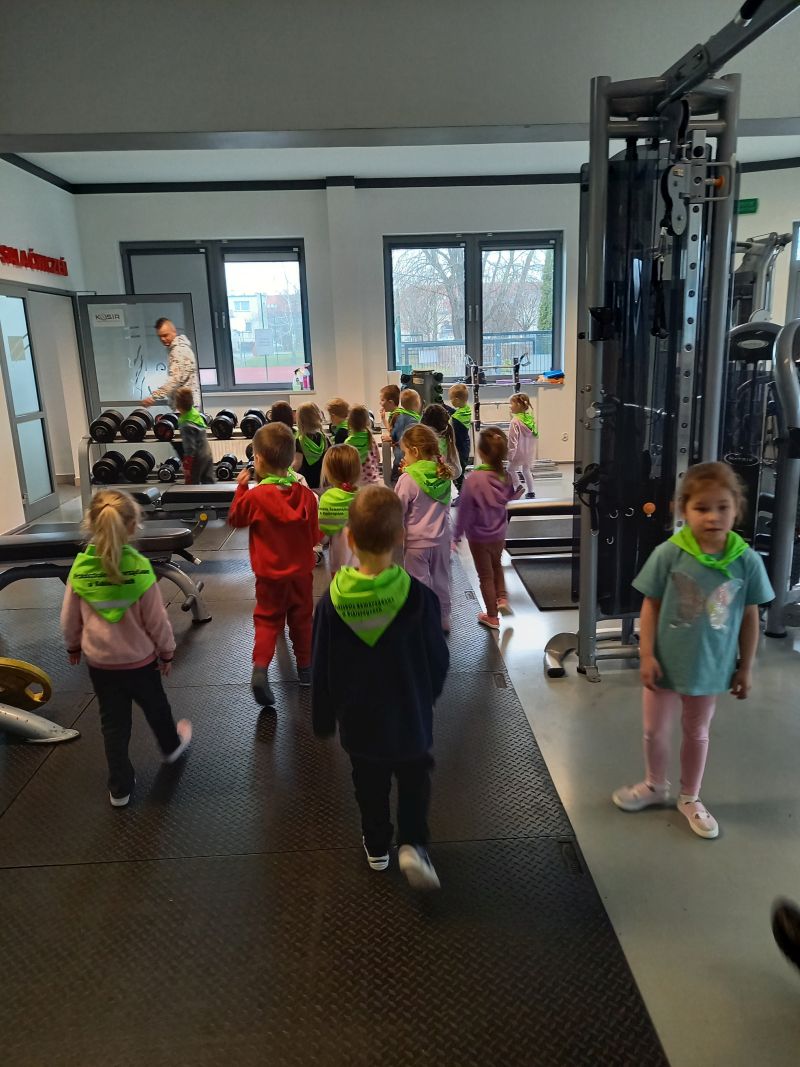 Zajęcia z trenerem koszykówkiPoniedziałek 20.03 był dla gr IV bardzo aktywnym dniem . A to za sprawą zorganizowanych przez trenera koszykówki Pana Karola Jaśko zajęć dla „Kotków” . Dzieci uczestniczyły w wielu zabawach z piłką koszykową. W ramach odpoczynku zwiedzaliśmy cały obiekt hali, zaglądaliśmy do szatni oraz na siłownię. Wszystkie dzieci były bardzo zaangażowane , co niezmiernie ucieszyło Pana trenera. Na zakończenie grupa otrzymała prezent w formie piłki koszykowej do zabaw w przedszkolu. Dzieci zmęczone , ale bardzo zadowolone wróciły do przedszkola .