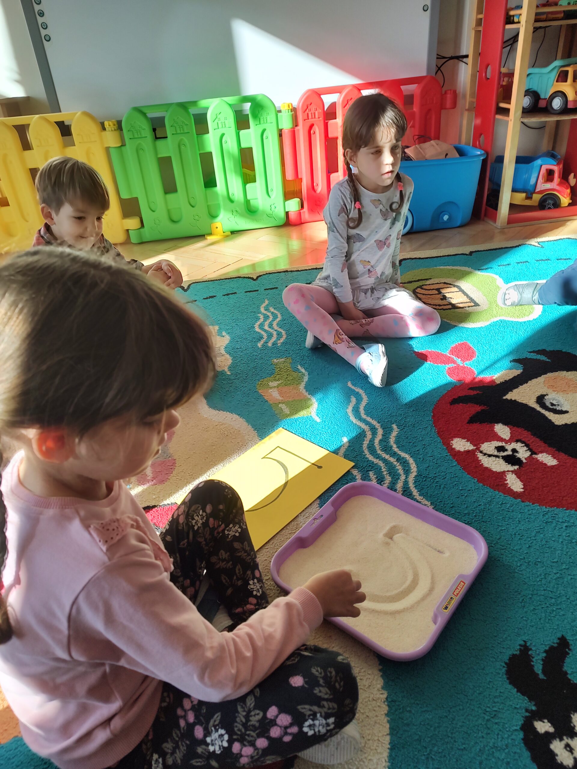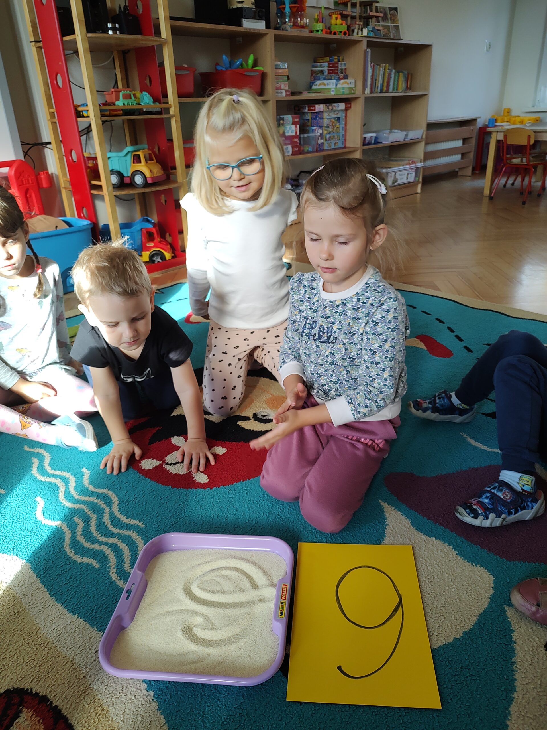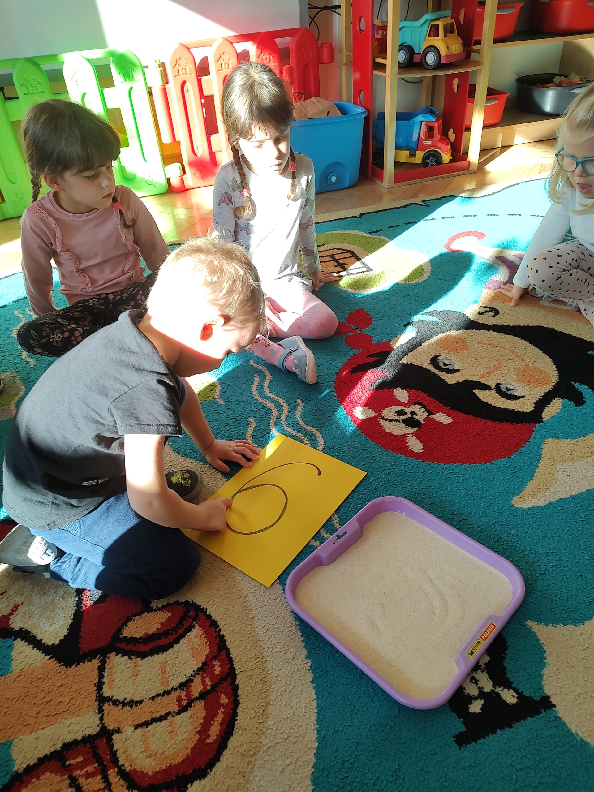 W grupie Jagódek odbyły się zajęcia które miały na celu doskonalenie liczenia,zapisu i nazywania liczb w zakresie od 1 do 6 . Stworzyliśmy karty pracy, które służyły dzieciom przez cały tydzień. Dzieci pisały liczby po śladzie na przygotowanych kartach , nazywały liczbę , z drugiej strony karty znajdowała się karta kontrolna z odpowiednią liczbą kropek . Następnie dzieci kreśliły liczby w pojemniku z kaszą manną co uatrakcyjniło zadanie. Wszystkie dzieci były bardzo zainteresowane wykonaniem zadania, a starsze pomagały młodszym ucząc się w ten sposób współpracy w grupie.