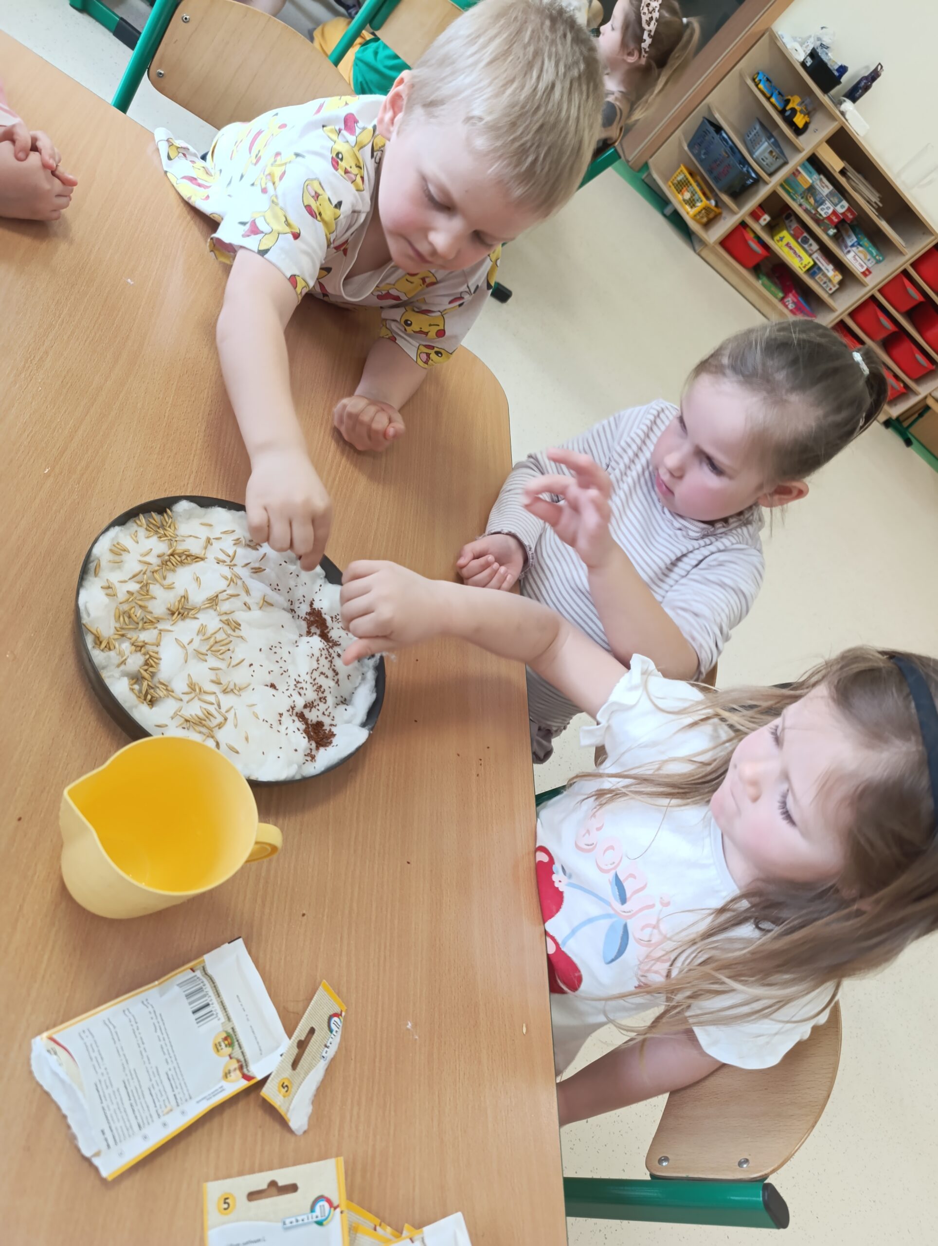 Zasiały Żabki owies… Post published:8 kwietnia, 2025 Post category:Wydarzenia Grupa V - Żabki Zasiały Żabki owies… U Żabek przygotowania do Świąt Wielkanocnych sie rozpoczęły. Dzieci wysiały owies i rzeżuchę, ucząc się cierpliwości i dbania o roślinki. W trakcie zajęć było dużo zabawy i troszkę bałaganu…Efekty niebawem!