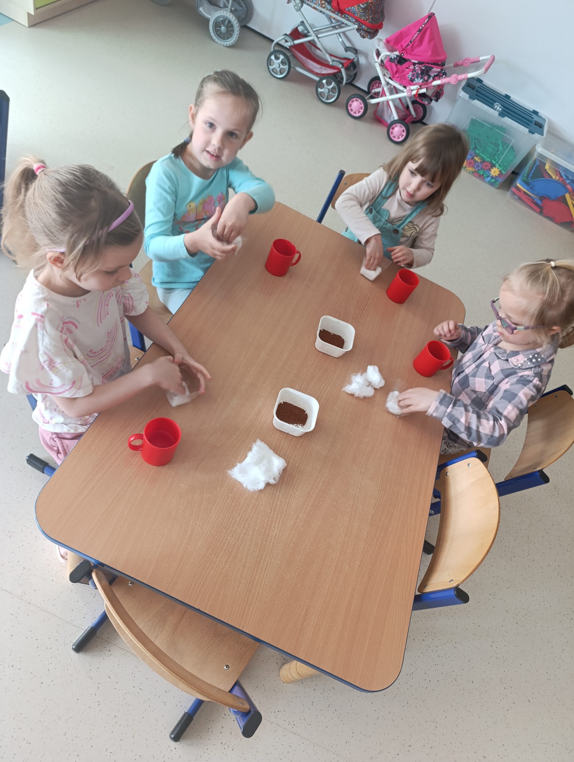 Sianie rzeżuchy w przedszkolu to doskonała, prosta aktywność wiosenna. Dzieci układają watę lub ręcznik papierowy w pojemniku, zwilżają ją wodą, gęsto rozsypują nasiona i dbają o ich codzienne podlewanie, ucząc się tradycji.